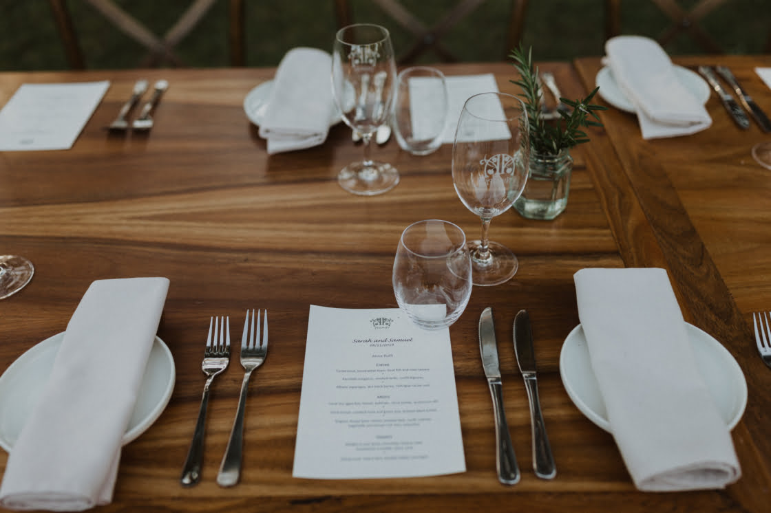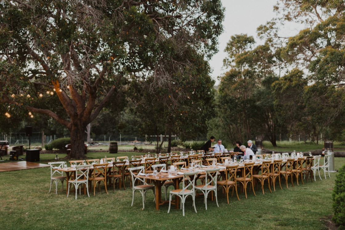 THE VENUE “Since we had family and friends visiting from NZ, UK and Ireland, we wanted to show off the South West of WA. Margaret River seemed like an obvious choice, so we took a weekend down there to look at a few options. Arimia is a small, family-owned winery that has a sustainable approach to food. The majority of their veggies are grown on-site, the fish are line caught in the river on the property and everything else is sourced locally.”