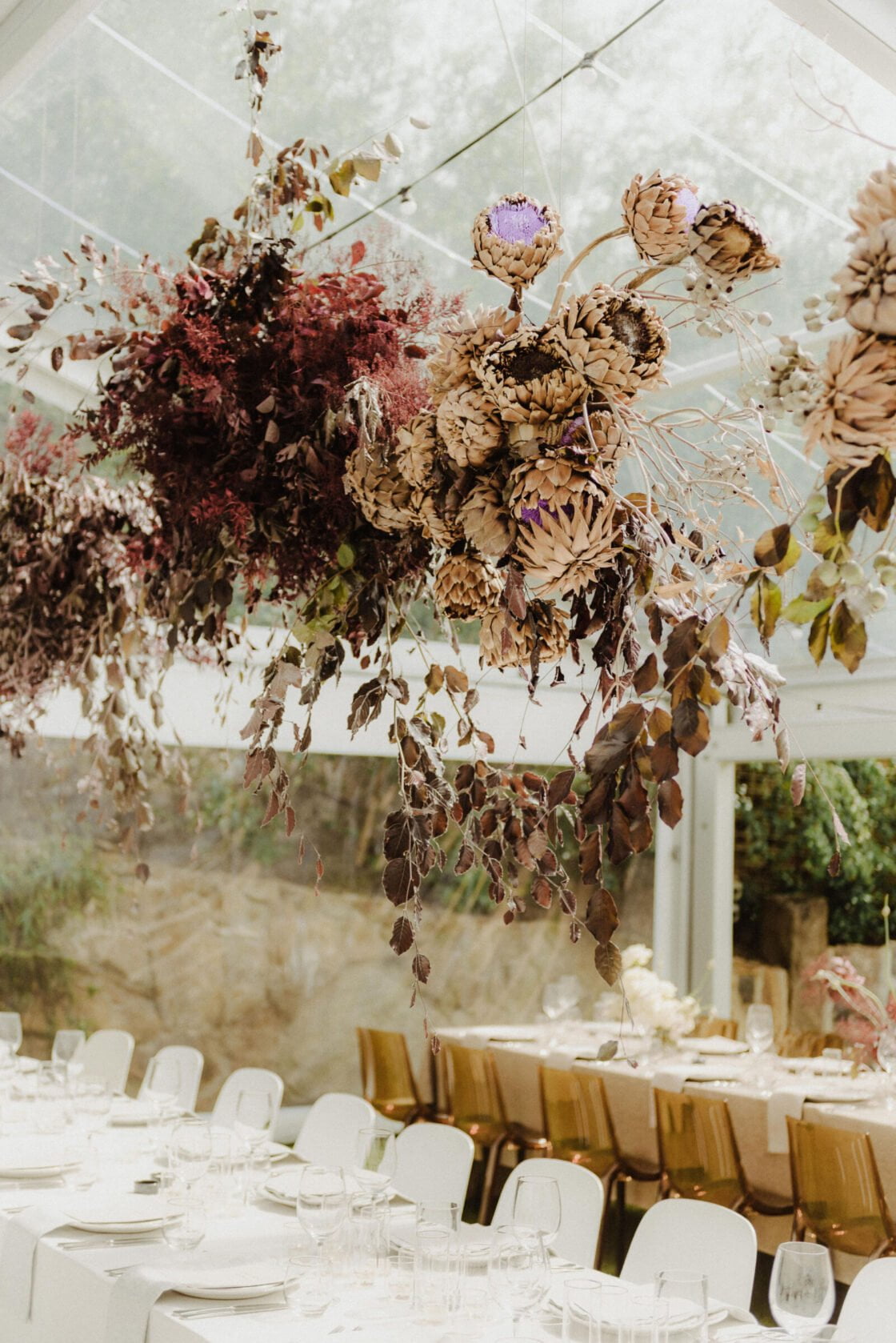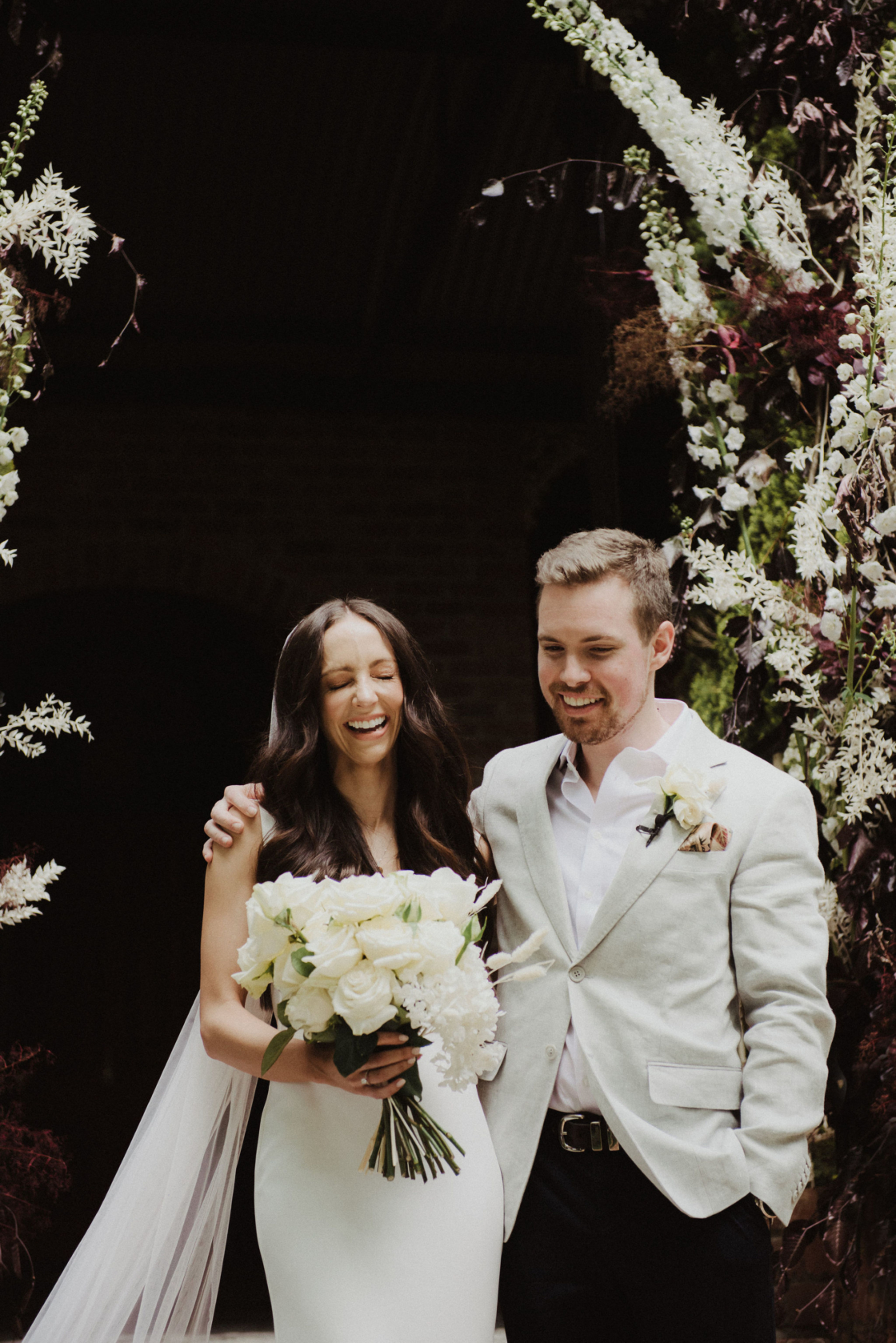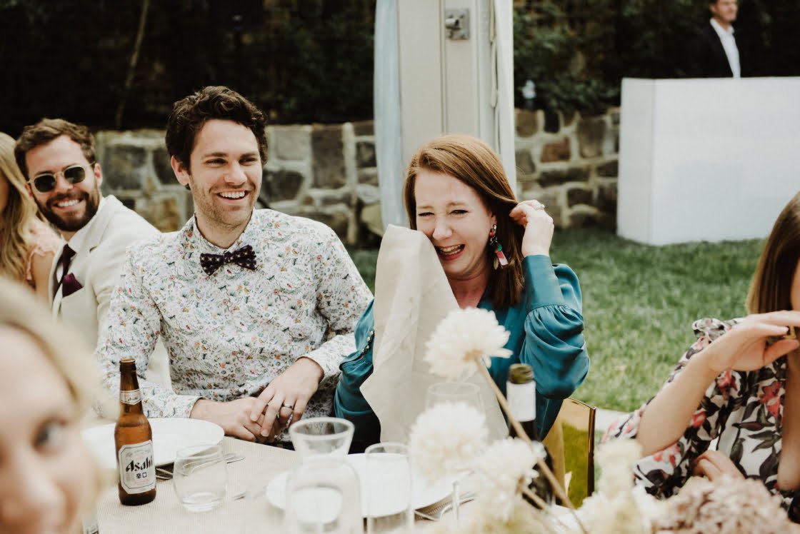 This fun-loving duo got engaged at the top of a mountain, got drunk at a bar, had a nap and then went out for a 13-course meal with wine pairing. At one point, “Scott took a hold of my ring to admire it, accidently pulled it off my finger with such force that it went flying across the restaurant floor and landed under someone else’s table.” So you can already tell this wedding was going to be a good time. Add a few of our fave vendors – She Takes Pictures He Makes Films (on photography and videography), Georgie Boy (on florals) and Dann Event Hire (on well, hire items) – and it’s a recipe for fun with a capital F. So scroll down for all the good stuff…