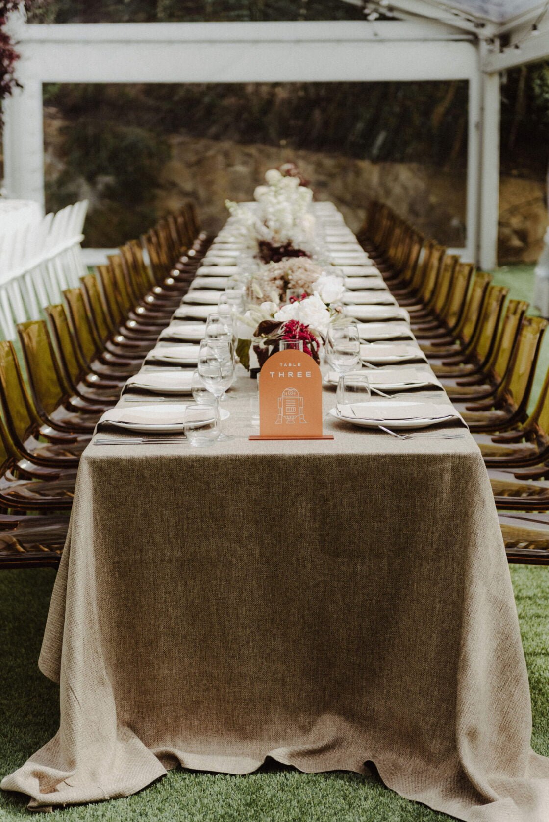 FAVE DETAILS “Our band were incredible, they just reacted to what the crowd was vibing, and the DJ/band was the perfect combination. It was never discussed, but they somehow worked out Sarah and all her UK mates loved Garage, so they were dropping so many UK Garage tunes, that kept the dance floor full the entire night. Scott loved the quirky Star Wars details and references that Shonel from Nomad was able to weave into the styling, whilst keeping it elegant and tasteful.”