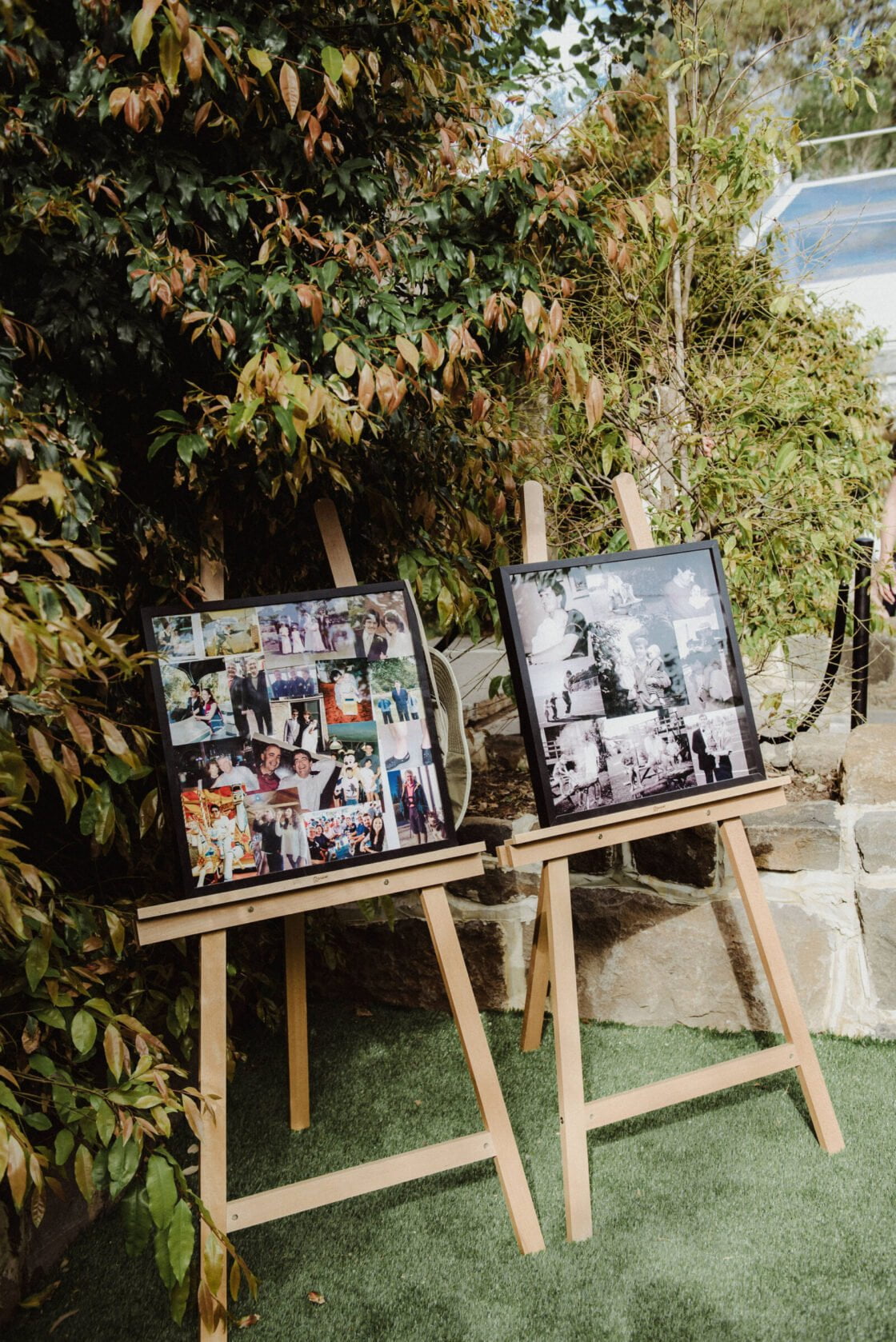CUTE CUSTOM “Both of our fathers have passed away, so we had picture frames on easels with a collage of each of them. Sarah’s brothers took the role of father of the bride, and during their speech they gifted me a flat cap which is symbolic of Yorkshire, Sarah’s home county in England. We also had white roses dotted throughout the styling – the heraldic symbol of Yorkshire, in ode to Sarah’s Dad and her heritage. And then foil wrapped chocolate ‘guinea’s’ from the famous Betty’s Tea House in Harrogate where Sarah’s family lives.”