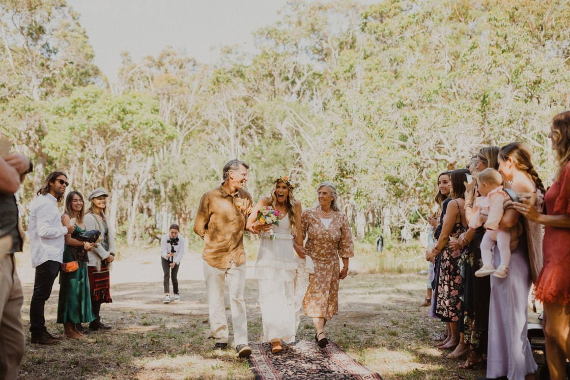 In love for a little over six years, this couple describe their day as “a little festival of love,” and we couldn’t agree more. But let’s back up a little to the proposal. “We were getting ready to go for a surf together when Kimbo suggested we brush our teeth by the little creek on our property. We wandered down the creek and as I had finished brushing he was down on one knee. Instead of asking ‘will you marry me?’ he was so nervous that he jammed the ring on my finger and said ‘sweet it fits’.” Want to know more? Of course you do! One of our fave photographers, Paris Hawken Photography, was there to capture it all on camera and you can find pics as well as more from the happy bride and groom below…