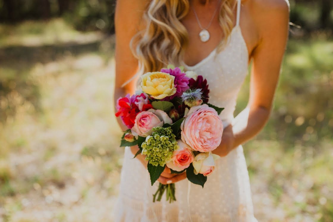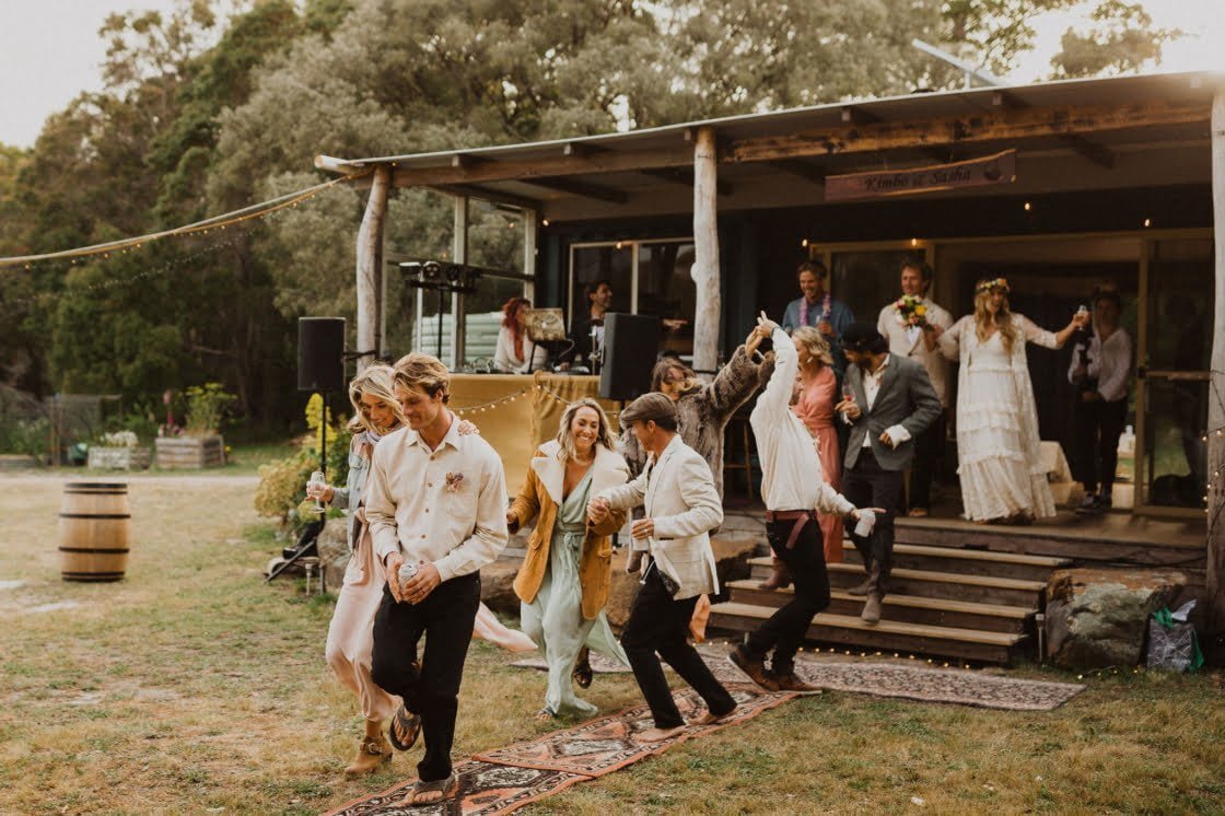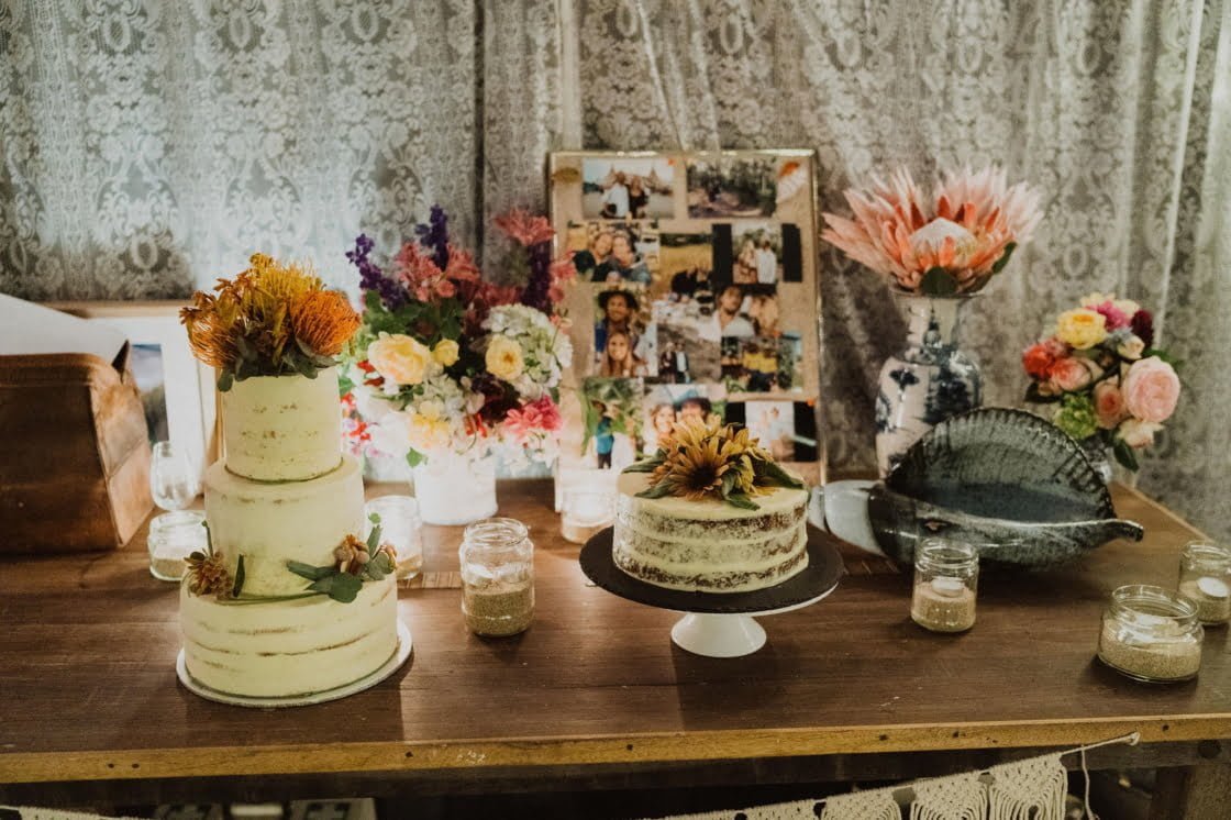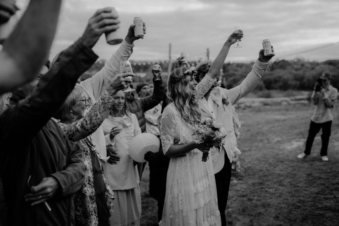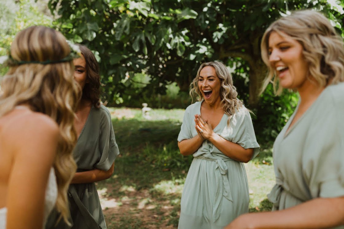 FAVE DETAILS “The whole day was amazing. Our bridal party organised super fun Hens and Bucks days (surf comps/ horse riding/ games etc) which made us both feel so loved up and excited about the wedding day. Kimbo’s sister and mum whipped up amazing handmade wedding invites. We found the flowers and desserts from wandering around the local Farmers Markets. Kirk’s Kitchen made his famous fish tacos and even spoiled some of the kids and my aunty to hot chips which wasn’t even on the menu, what a champ! The wedding cake was heaven, La Dolce Vita Catering went to school with Kimbo and her grazing table and GF cakes were just so delicious! Music and Videographers, the celebrant… A real standout for me was that it was a real honour going into my mum’s beautiful garden with a pair of secateurs and being told we could pick whatever we liked for my bouquet and flower crown. Mum worked hard in the garden and it paid off, it was just a delight hanging out in it in the morning of the wedding.”
