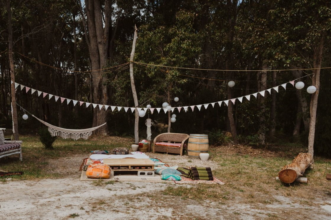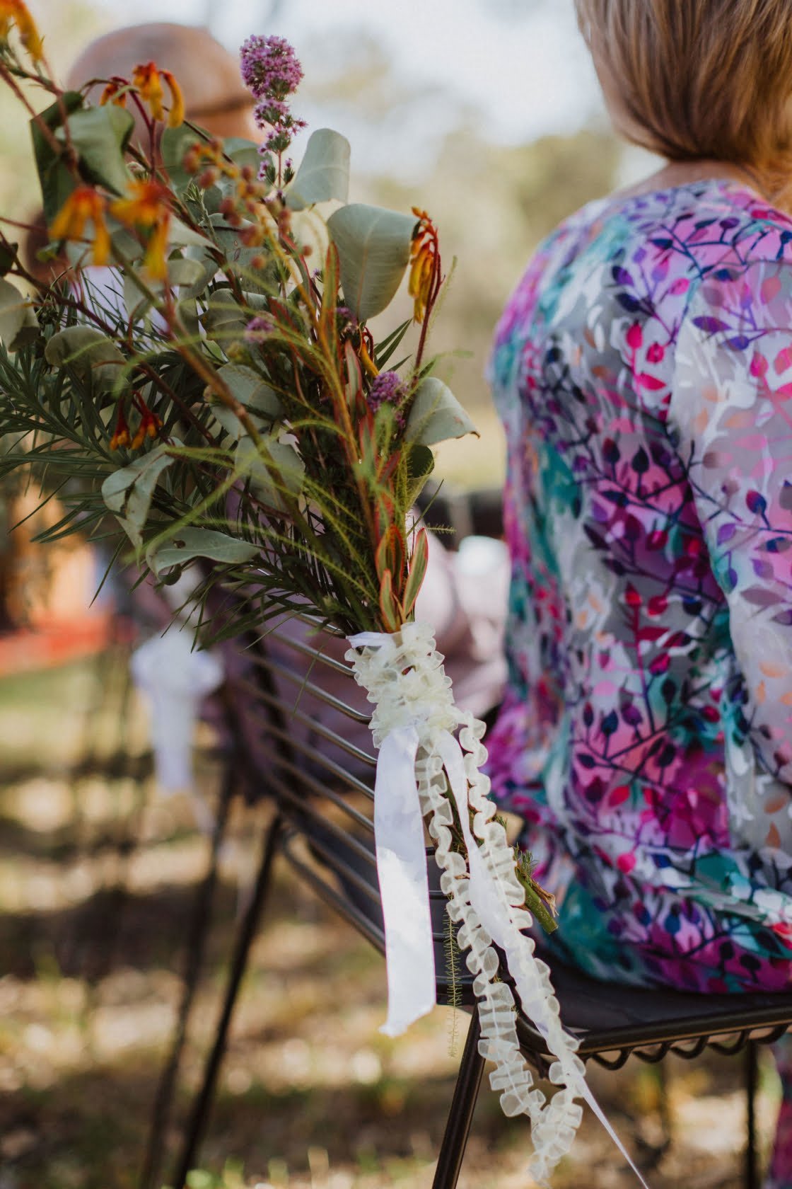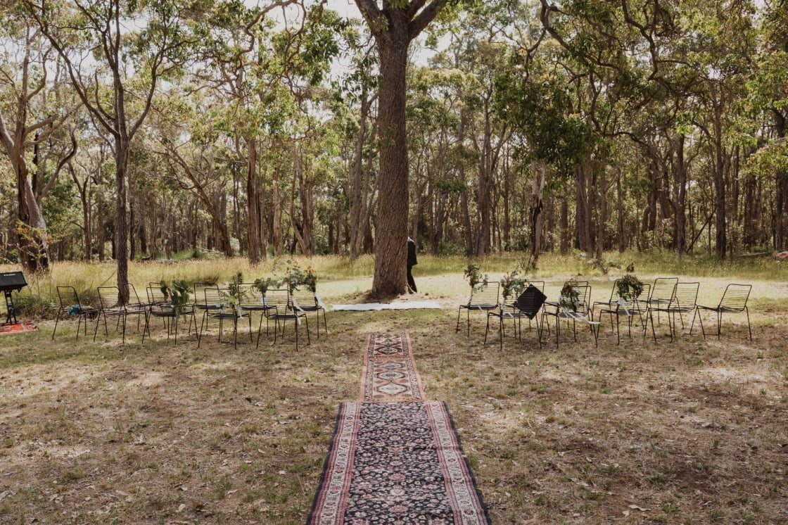 THE VIBE “We didn’t really have a theme, it was more what we could source from op shops, Gumtree, and our wonderful friends and family. We both just wanted to get married in the bush with our favourite people.”