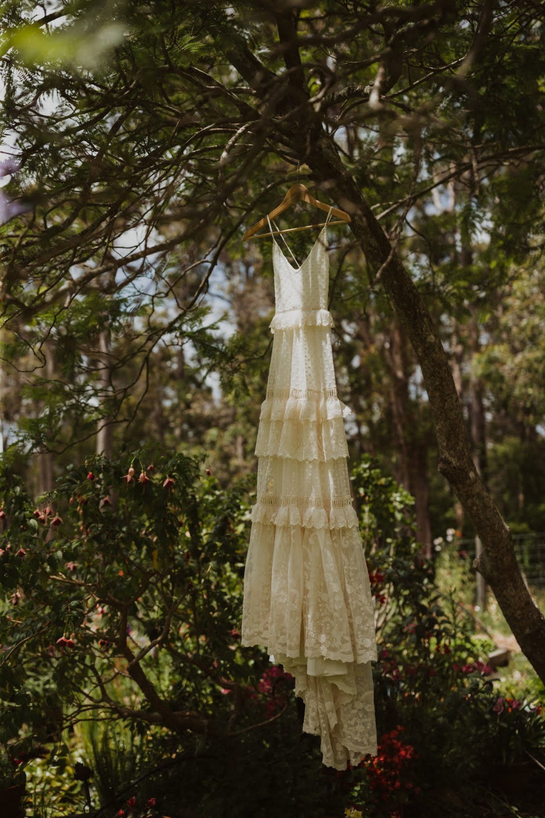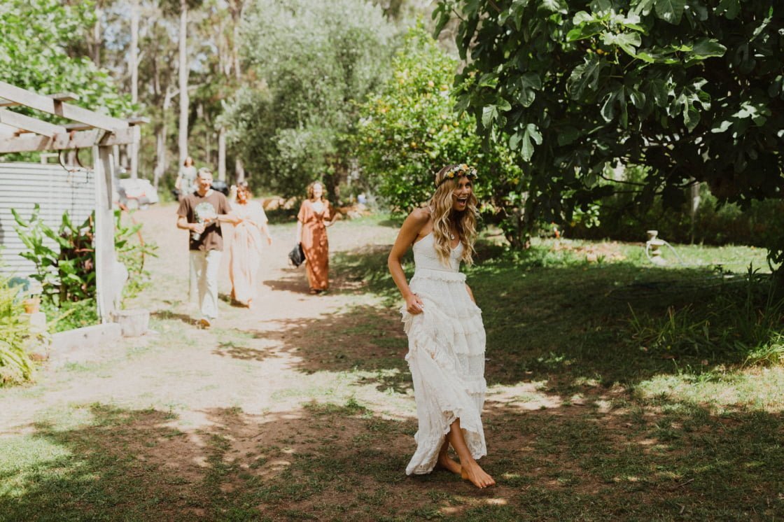In love for a little over six years, this couple describe their day as “a little festival of love,” and we couldn’t agree more. But let’s back up a little to the proposal. “We were getting ready to go for a surf together when Kimbo suggested we brush our teeth by the little creek on our property. We wandered down the creek and as I had finished brushing he was down on one knee. Instead of asking ‘will you marry me?’ he was so nervous that he jammed the ring on my finger and said ‘sweet it fits’.” Want to know more? Of course you do! One of our fave photographers, Paris Hawken Photography, was there to capture it all on camera and you can find pics as well as more from the happy bride and groom below…
