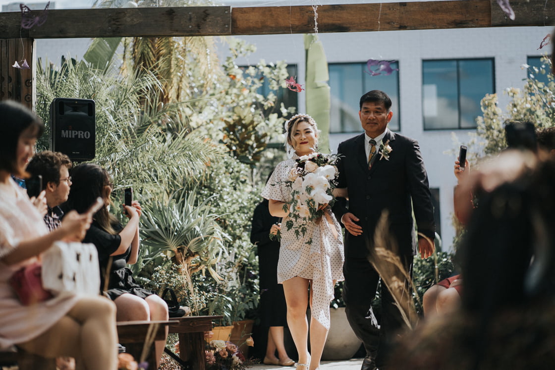 CONTRIBUTING VENDORS Photographer & Cinematographer Bello Weddings Event Planner, Stylist & Florist S.Wedding & Floral Ceremony Glasshaus Inside Reception Golden Lily (Family Only) Entertainment The White Tree Celebrant Ivy Fung Rings Purple May Jewellery THE BRIDE Bridal Gown Acler via The Iconic Veil & Hair Piece Taobao Shoes Miu Miu Accessories Fiorina Hair Forever Length Hair Salon Makeup Jenifer In Makeup THE GROOM Suit, Shirt & Bow Tie Zenetti via Ferrari Formalwear Shoes Aquila