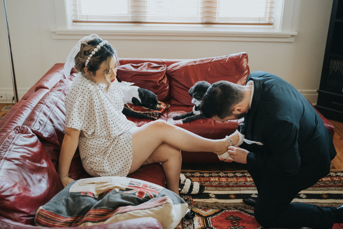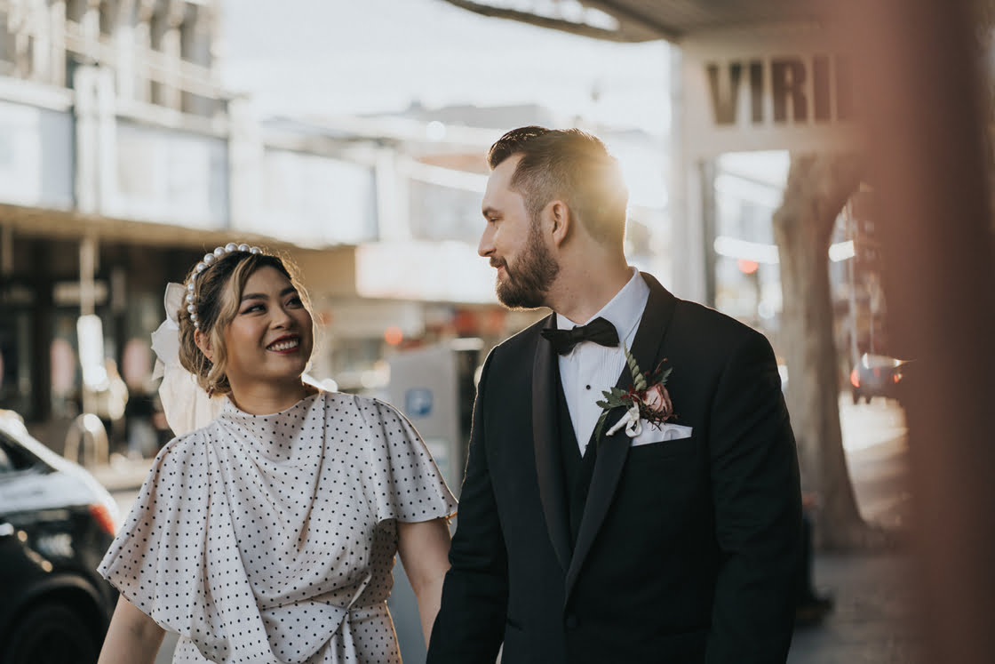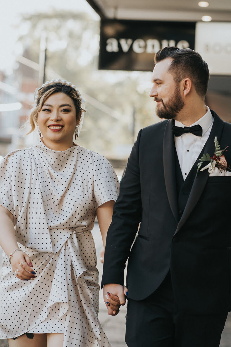 Meet Serena and Matt. They are cool, cute and a little quirky, listing the pigeon pooping on the groom during photos and their dog’s asthma attack as a few fave mems from their day of days. But all lols aside, they had one heck of a day (made even more fun by one of our fave entertainment outfits, The White Tree) and Bello Weddings was there to get the goods on camera. So scroll down for all…