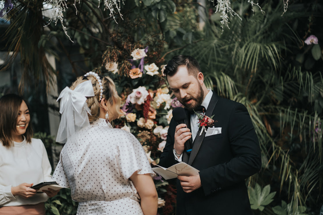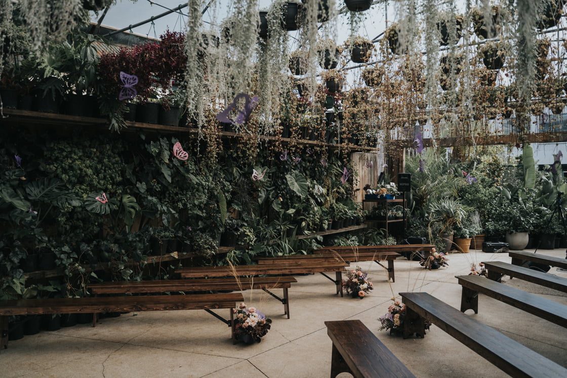 THE VENUE “I like Glasshaus Inside because it’s urban and also very lush and green. It’s like an emerald gem inside of the city. The venue was originally a nursery for plants, and the owners allowed us to use these plants to decorate the surroundings. This allowed us to create a wonderful feeling of being in nature. The selection and positioning of these plants were fantastic and I felt like a lot of thought went into the orientation of everything.”