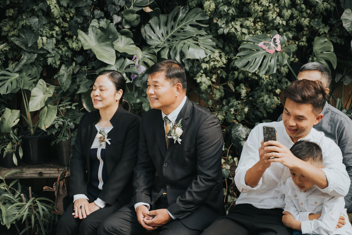 CONTRIBUTING VENDORS Photographer & Cinematographer Bello Weddings Event Planner, Stylist & Florist S.Wedding & Floral Ceremony Glasshaus Inside Reception Golden Lily (Family Only) Entertainment The White Tree Celebrant Ivy Fung Rings Purple May Jewellery THE BRIDE Bridal Gown Acler via The Iconic Veil & Hair Piece Taobao Shoes Miu Miu Accessories Fiorina Hair Forever Length Hair Salon Makeup Jenifer In Makeup THE GROOM Suit, Shirt & Bow Tie Zenetti via Ferrari Formalwear Shoes Aquila