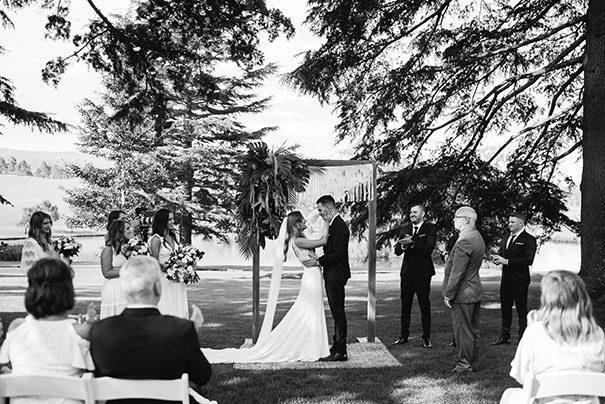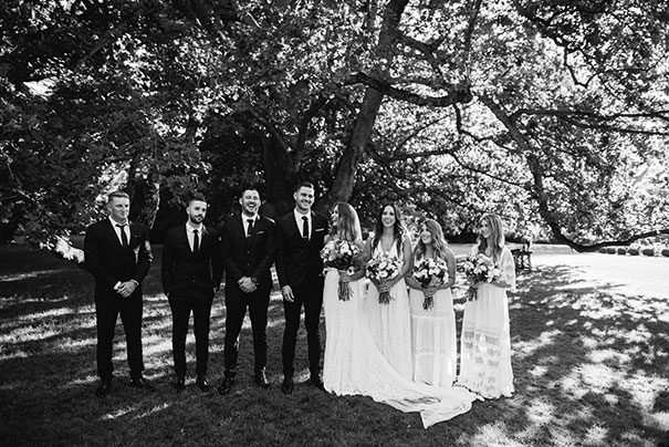 CREDITS Photographer Scott Surplice // Cinematographer Way Up High Films // Florist Jasmine Haines (Groom’s sister) // Stationery La Pomme Et La Pipe via Etsy // Ceremony and Reception Venue / Catering Bendooley Estate, Berrima NSW // Cake A.T Cake Co // Decorative elements Urban Outfitters // Signage The Sundae Creative via Etsy // Celebrant Michael Bourke // Rings Gregory Jewellers // Musician Tom Carty // Bridal Gown and Veil Designer Made With Love // Bridal Boutique Savvy Brides // Hair piece Betts // Robes / getting ready tees Cotton On Body // Shoes Sheriton Shoes // Makeup Nicole Mammone // Bridesmaid Dresses Princess Polly, Petal and Pup, and Runway Scout // Bridesmaid Shoes Billini // Groom and Groomsmen Suits Roger David.