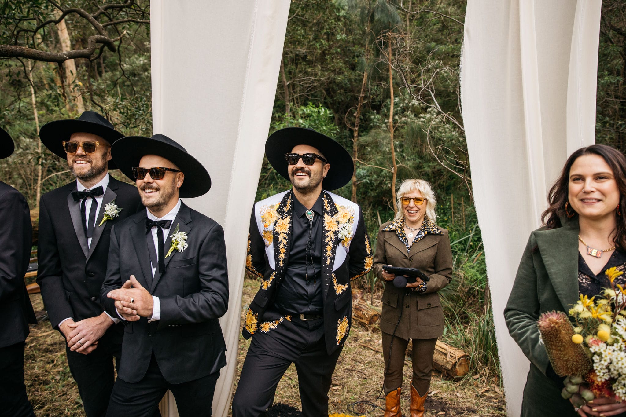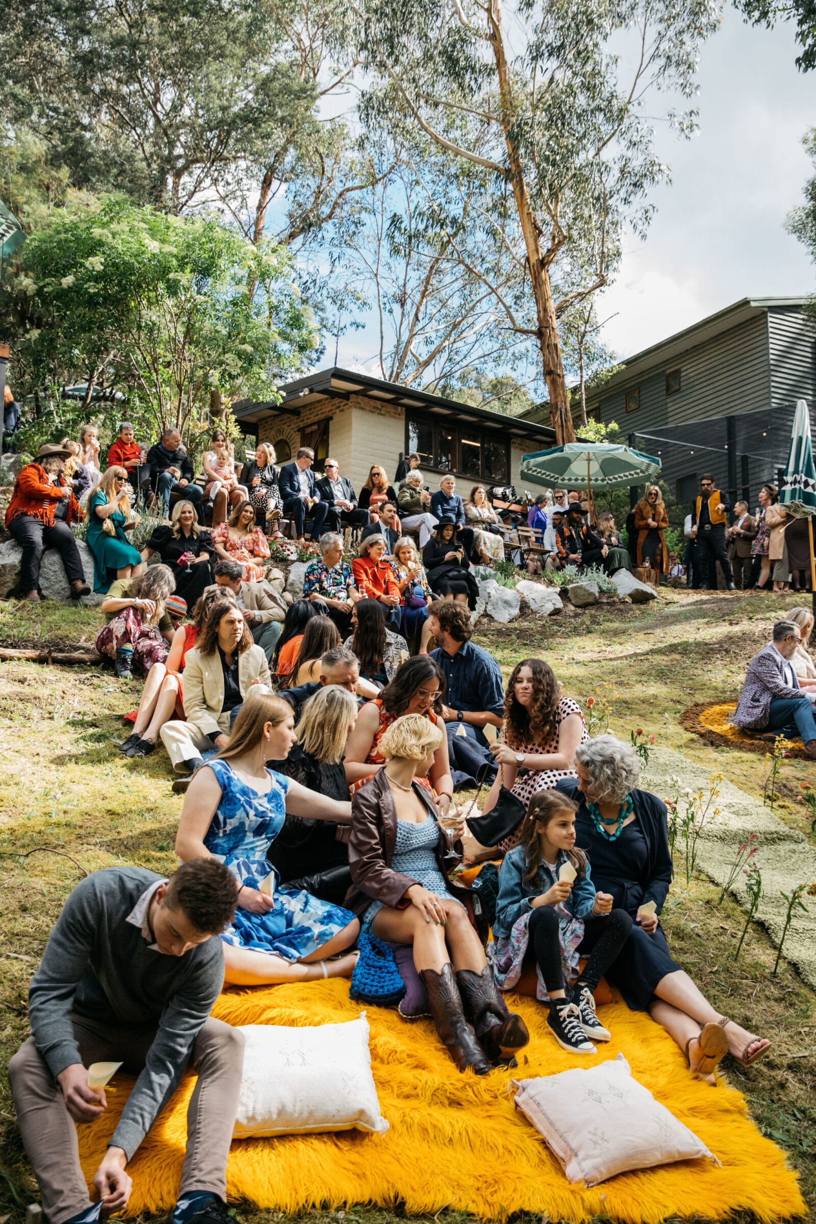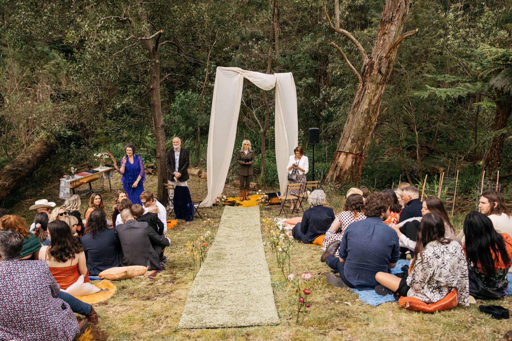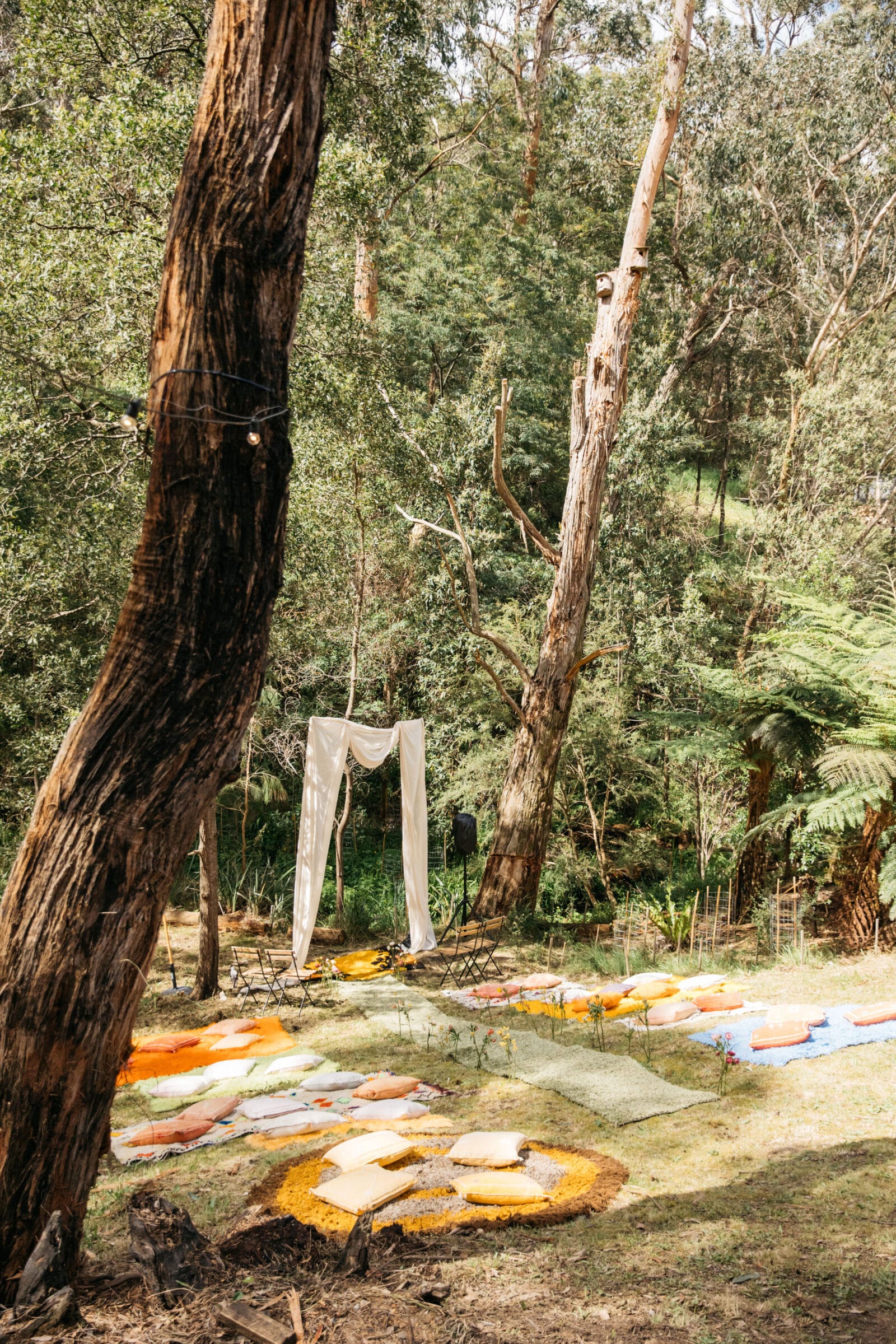 “Our backyard leading down to the creek made a natural amphitheatre, which became our aisle and arbour. Looking back up at everyone’s faces was a really special moment. Amazingly, no one fell over down the aisle; it was a lot steeper than it looked. Tom danced down it because he forgot how to walk normally under that much pressure.  The conga line and multiple dance-offs must get a special mention.”