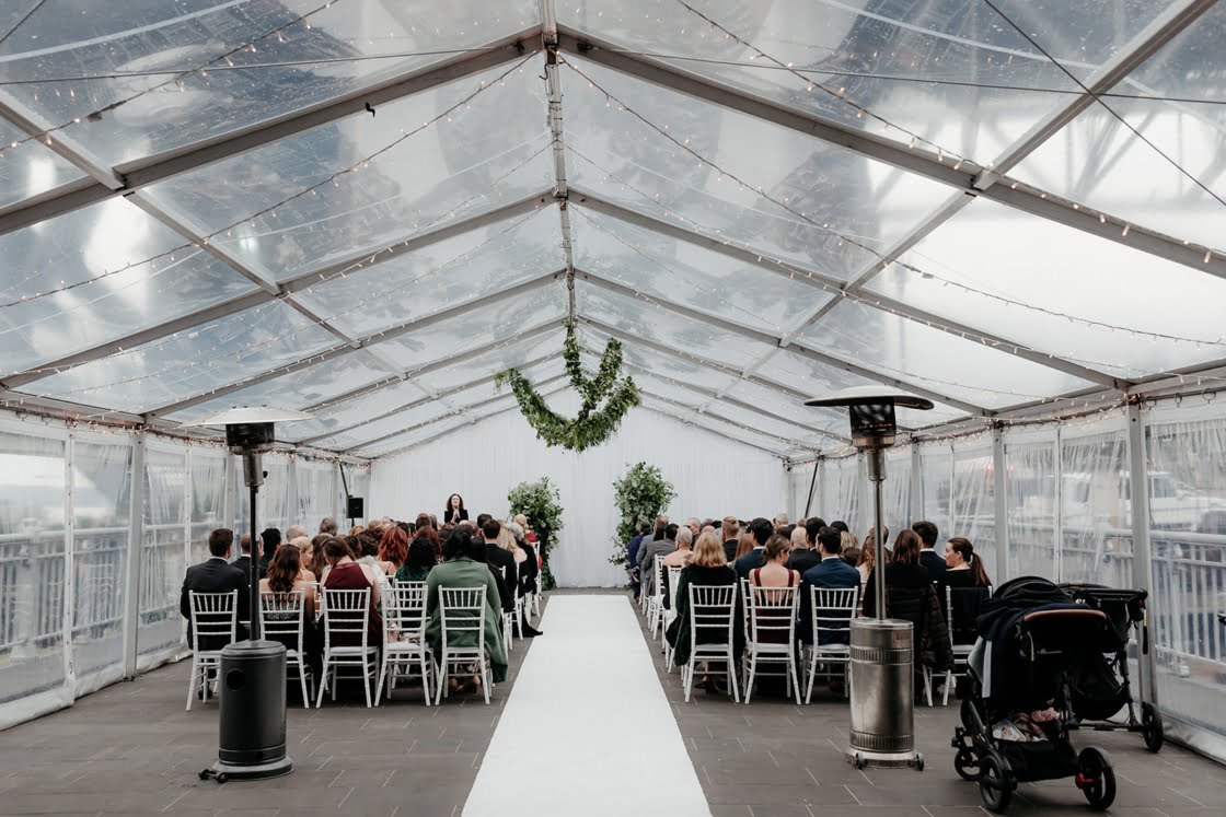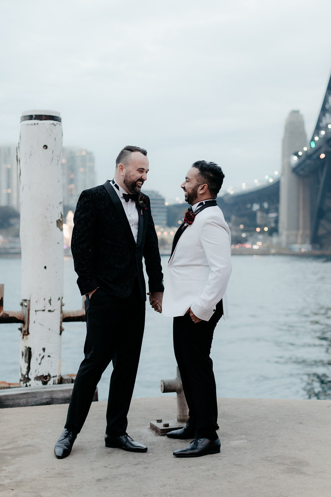 THE VENUE “We chose Pier One Sydney Harbour as it offered spectacular views of the harbour and many iconic sights which were perfect for the many family and friends that came to Sydney for the wedding. The wedding fell on the June long weekend during Vivid and meant that the harbour and vicinity were lit up in a way that is rarely seen. We also liked Pier One Sydney Harbour as we could have the ceremony in the Bridge Marquee and the reception in the Water Room, reducing the travel for attendees.”