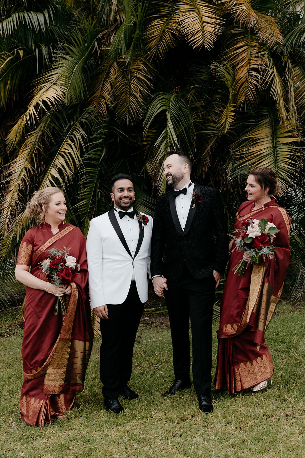 Say hi to Shohan and Stephen, guys. They are loved-up and looking sharp and here are some stats… They had been an item for seven-and-a-half years before getting married, engaged for 14 months (after three proposal attempts, no less!) and describe marriage as “The ability to find love and appreciation in each other’s actions and little quirks.” Cute, huh? A few of our fave vendors brought their good vibes and skillsets to the day, Baker Boys Band and Zoe Morley, and for everything and everyone else, you can scroll down…