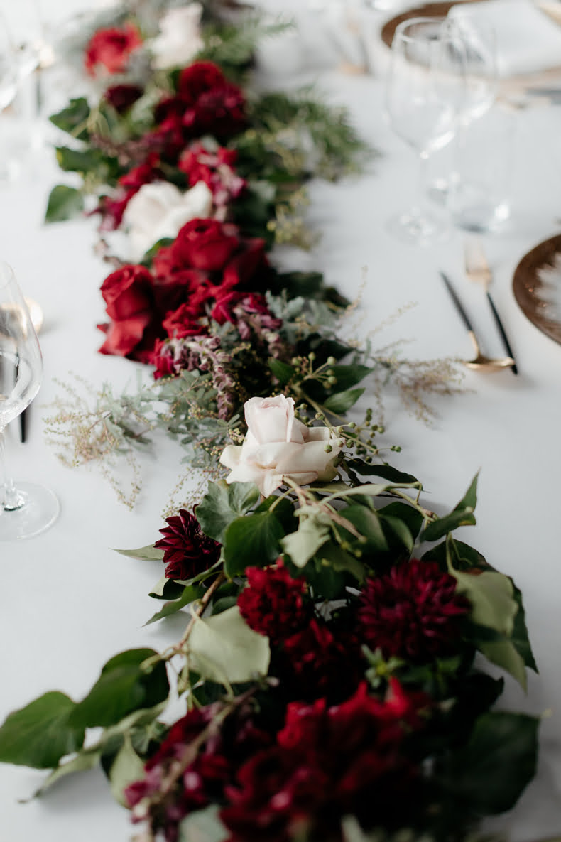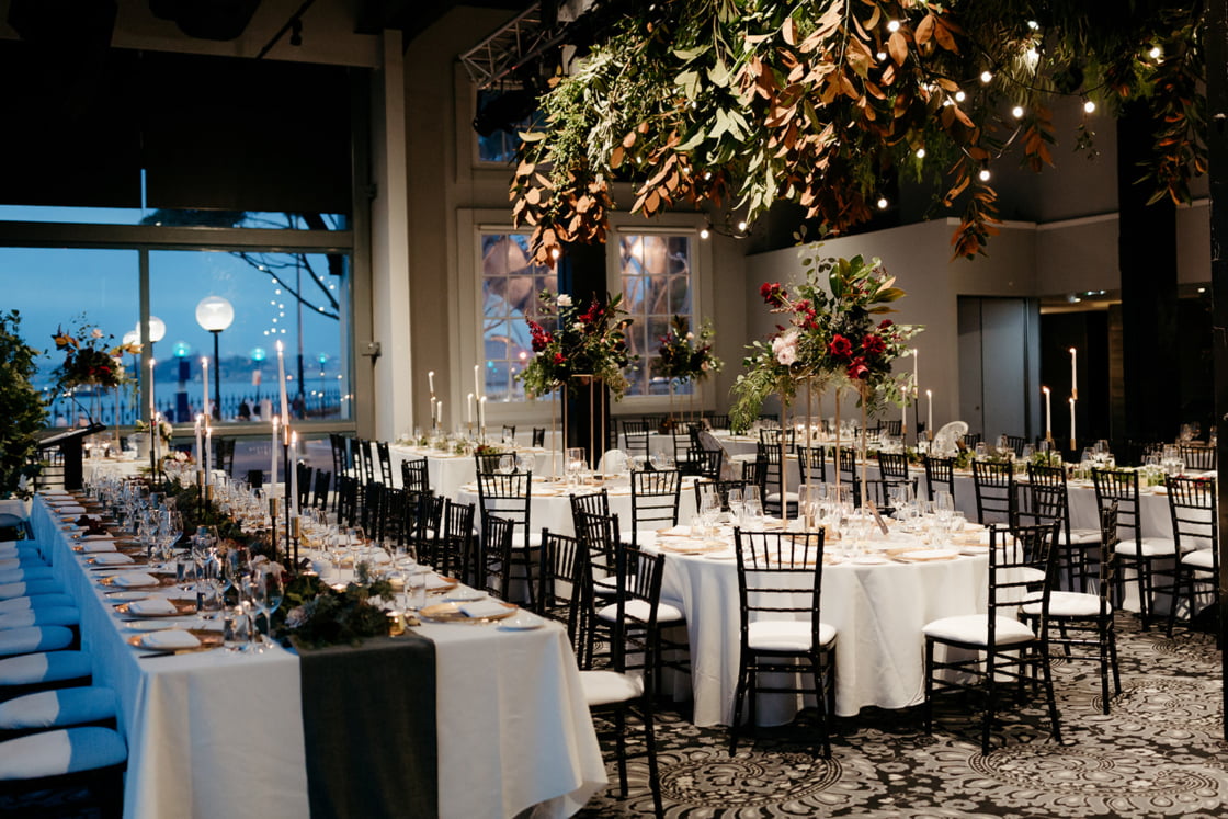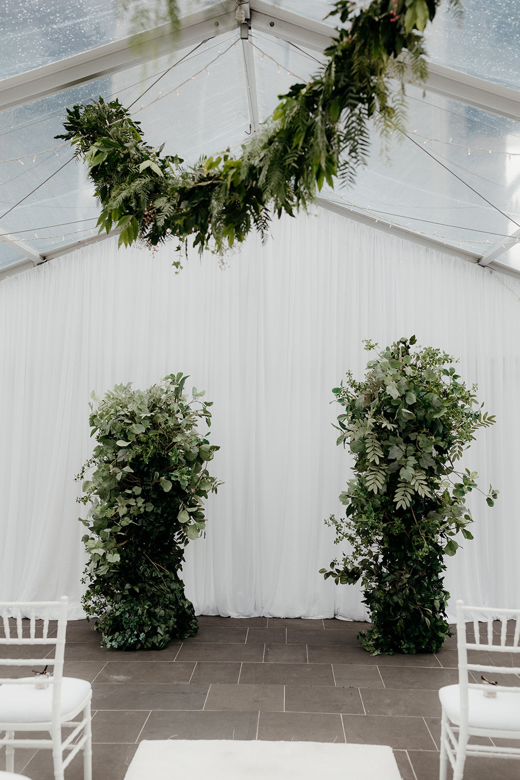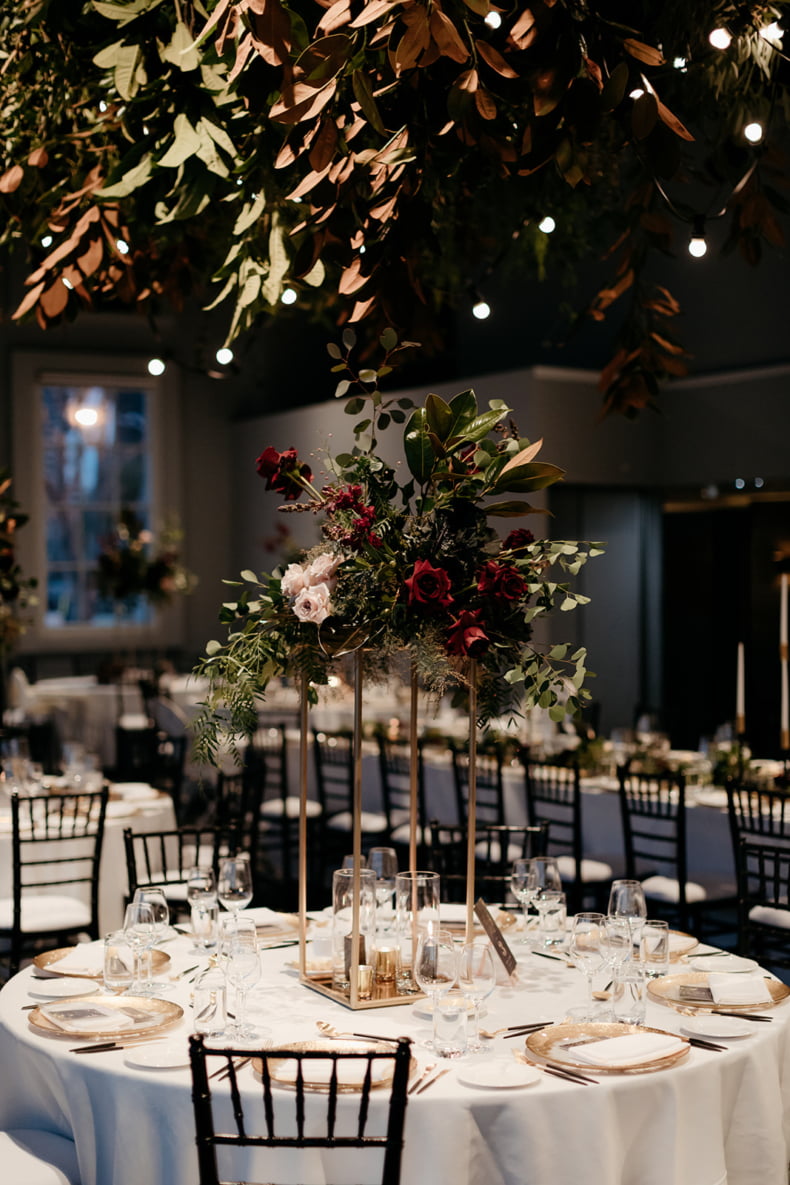 THE INSPO “We wanted an elegant but not over the top feel. We chose native plants to adorn tables and to be hung from the ceiling at the reception, as well as form the arch in the ceremony. Given the time of year, our choice to have Black Tie suited guests that were prepared for the colder weather, but complemented our choice to wear jackets throughout.”