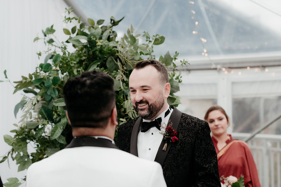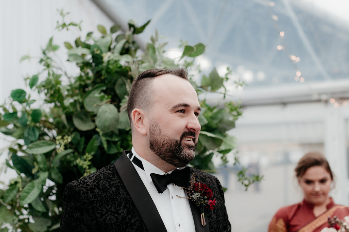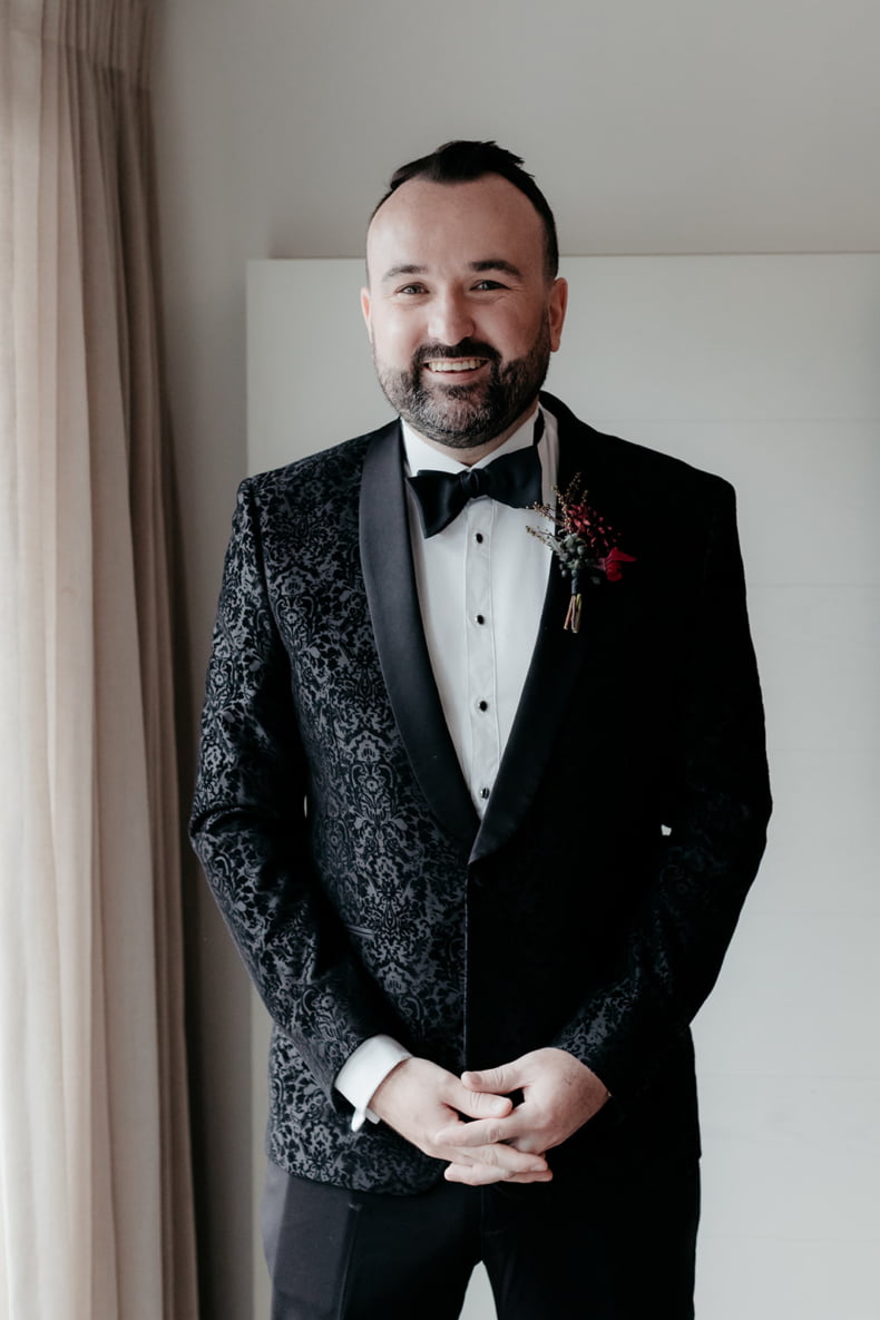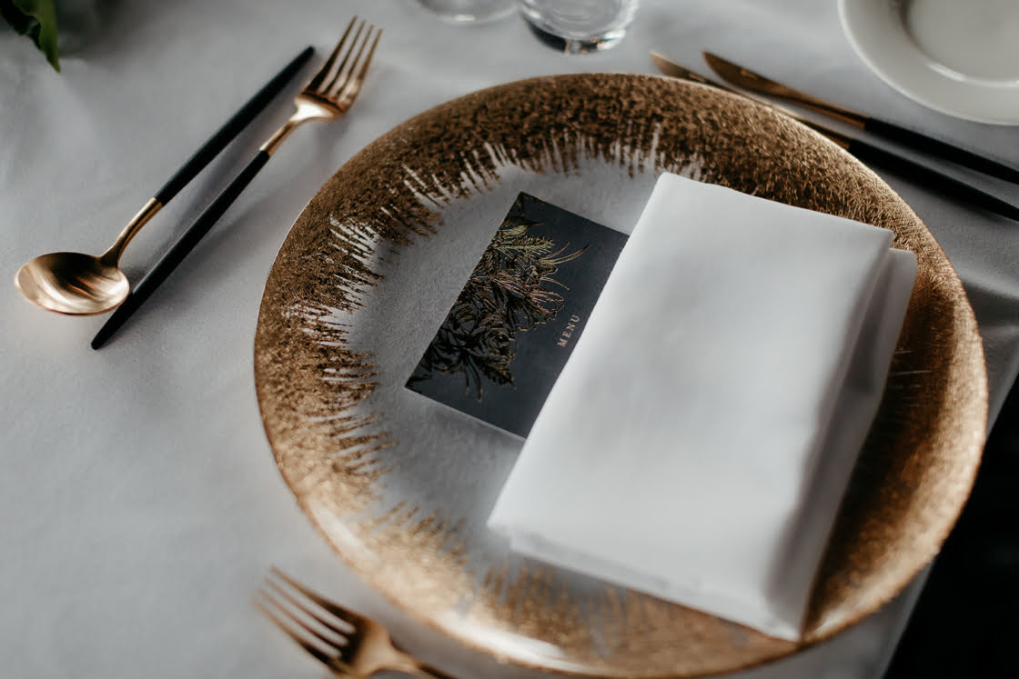 THE INSPO “We wanted an elegant but not over the top feel. We chose native plants to adorn tables and to be hung from the ceiling at the reception, as well as form the arch in the ceremony. Given the time of year, our choice to have Black Tie suited guests that were prepared for the colder weather, but complemented our choice to wear jackets throughout.”