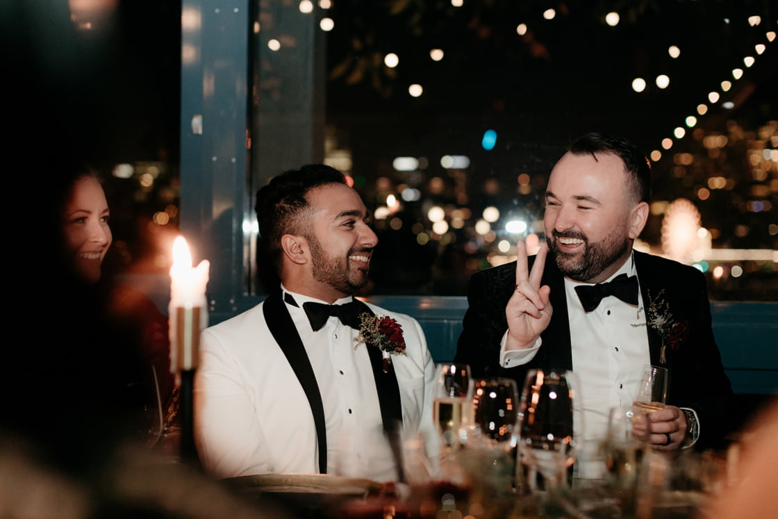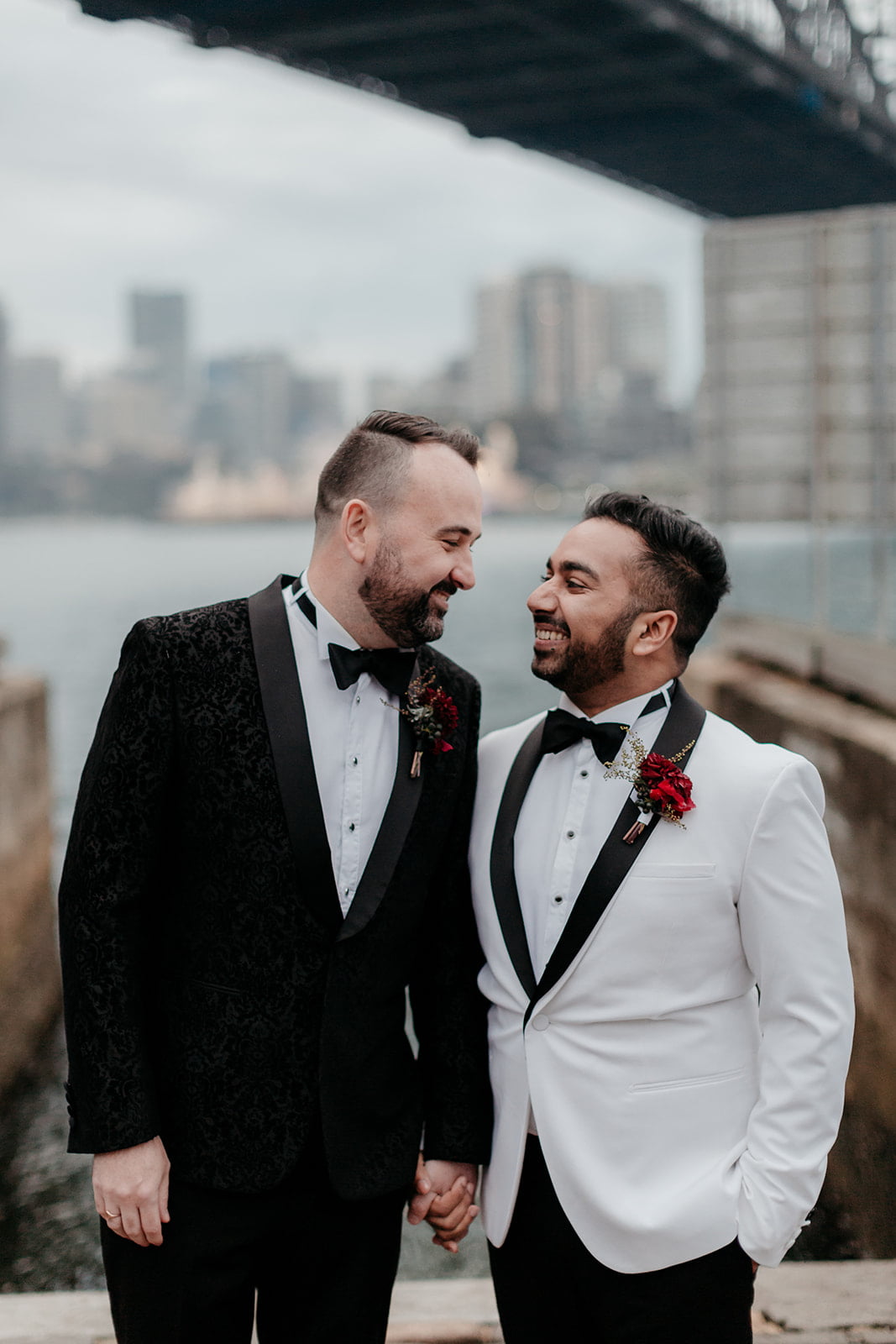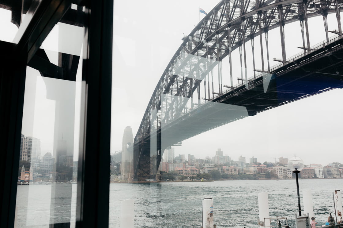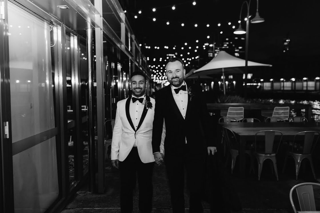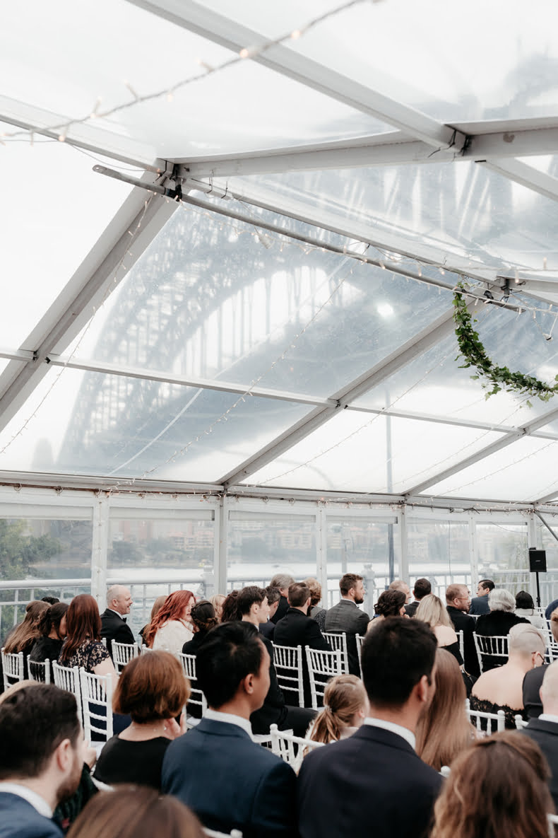 THE VENUE “We chose Pier One Sydney Harbour as it offered spectacular views of the harbour and many iconic sights which were perfect for the many family and friends that came to Sydney for the wedding. The wedding fell on the June long weekend during Vivid and meant that the harbour and vicinity were lit up in a way that is rarely seen. We also liked Pier One Sydney Harbour as we could have the ceremony in the Bridge Marquee and the reception in the Water Room, reducing the travel for attendees.”