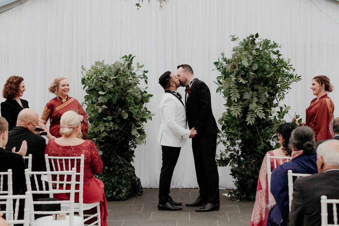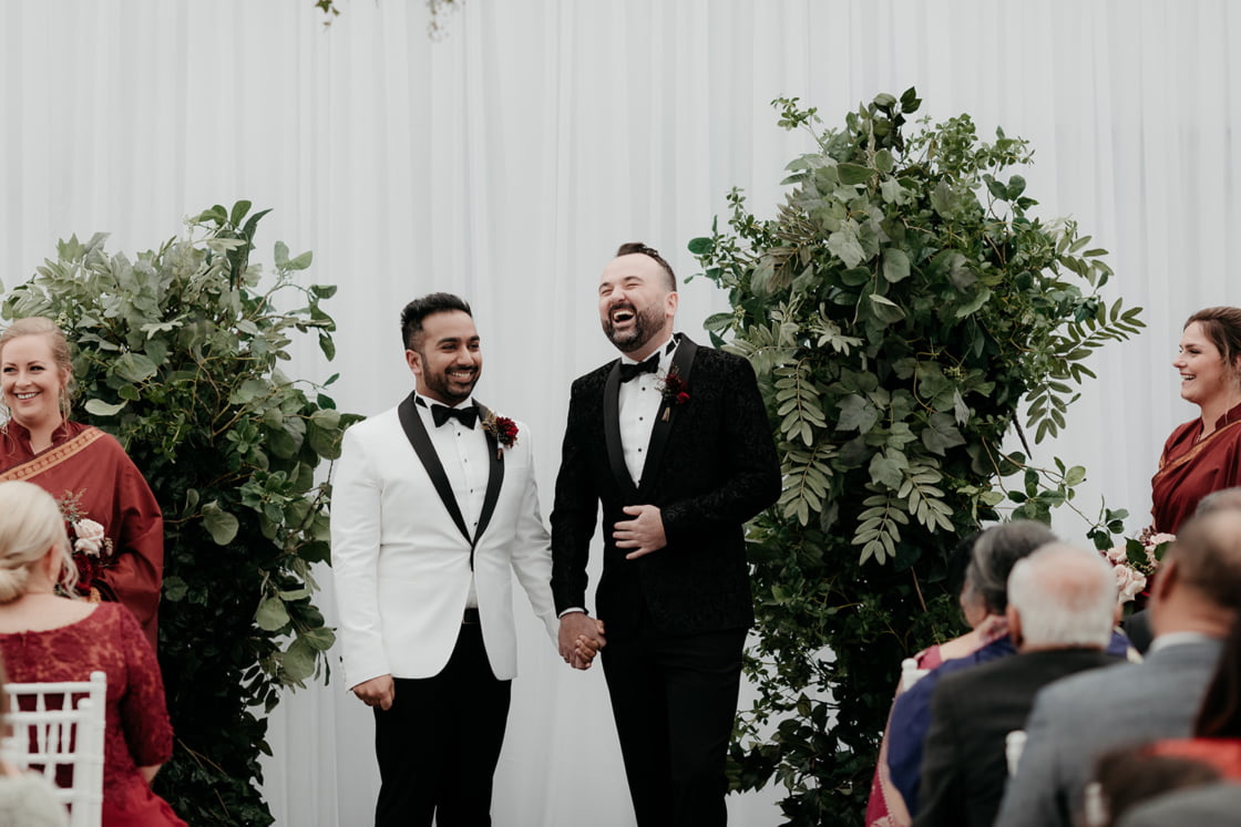 Say hi to Shohan and Stephen, guys. They are loved-up and looking sharp and here are some stats… They had been an item for seven-and-a-half years before getting married, engaged for 14 months (after three proposal attempts, no less!) and describe marriage as “The ability to find love and appreciation in each other’s actions and little quirks.” Cute, huh? A few of our fave vendors brought their good vibes and skillsets to the day, Baker Boys Band and Zoe Morley, and for everything and everyone else, you can scroll down…