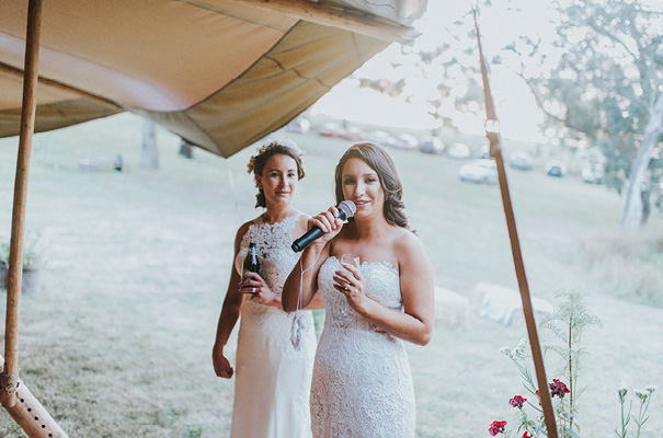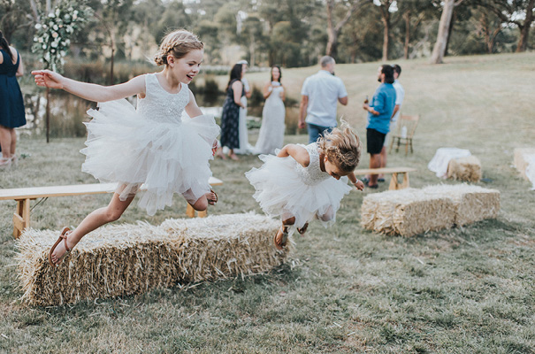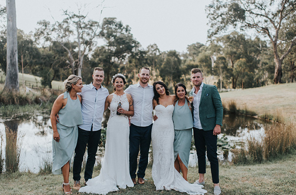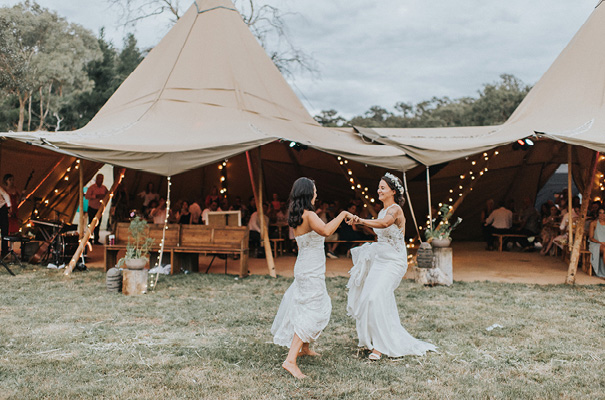 VENDOR CREDITS Photographer Sigrid Petersen Cinematographer Nathan Kaso Florist Posies and Twine Croydon Ceremony & Reception Private Property Catering Essential Caterers Bayswater Wedding favours Sow ’n Sow seeds Teepee Tipi Kata Entertainment Matt Black Entertainment Celebrant: Lisa Hunt-Wotton THE BRIDE (BEC) Bridal gown Jessica Couture Bridal Boutique Fairy Tale Bridal Boutique Hair Magical Makeovers Makeup Katie Winkler Bridesmaid dresses Atmos + Here THE BRIDE (SIMONE) Bridal gown Essence of Australia Bridal Boutique Fairy Tale Bridal Boutique Flower girl outfit Arabella And Rose.