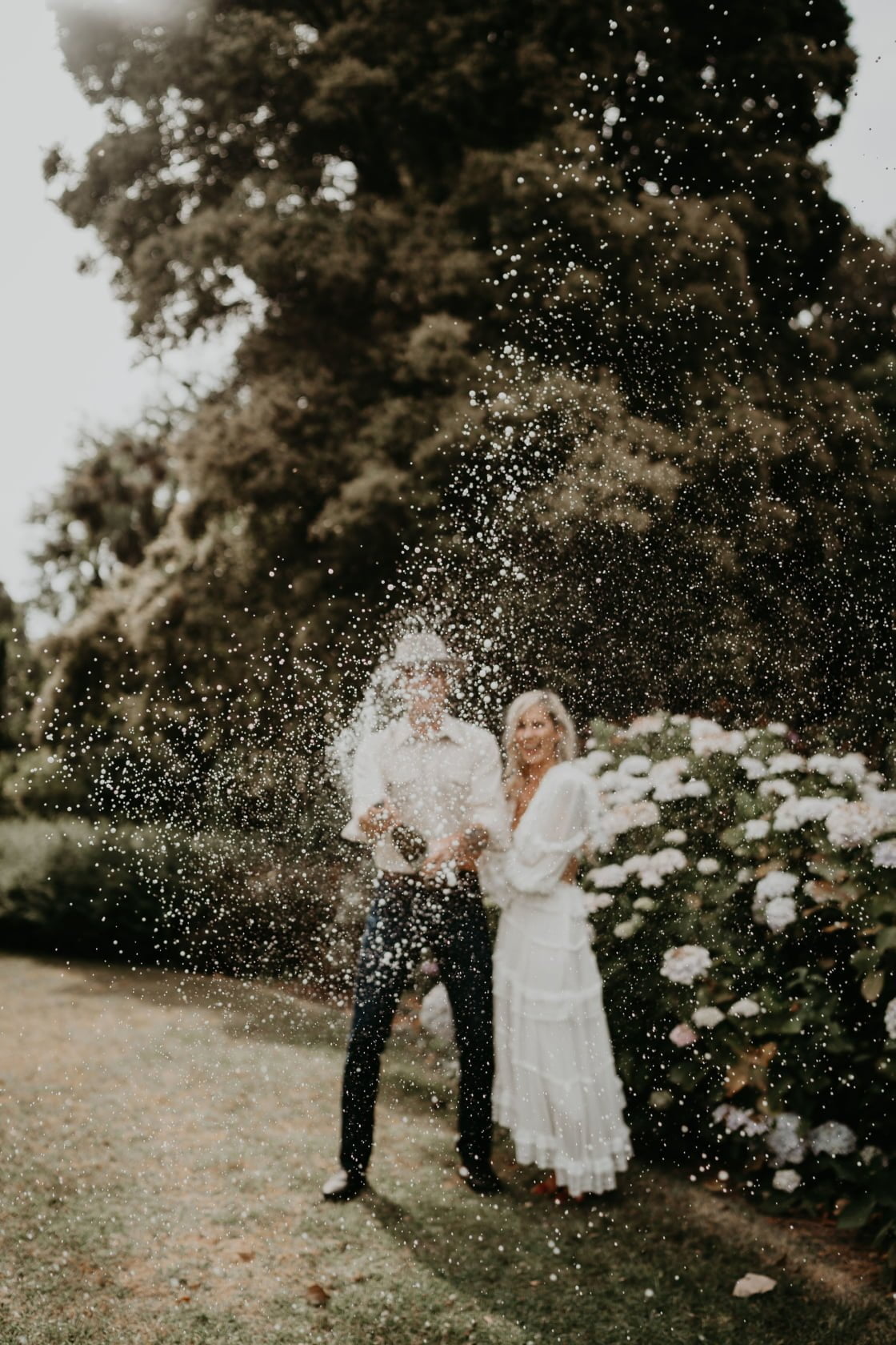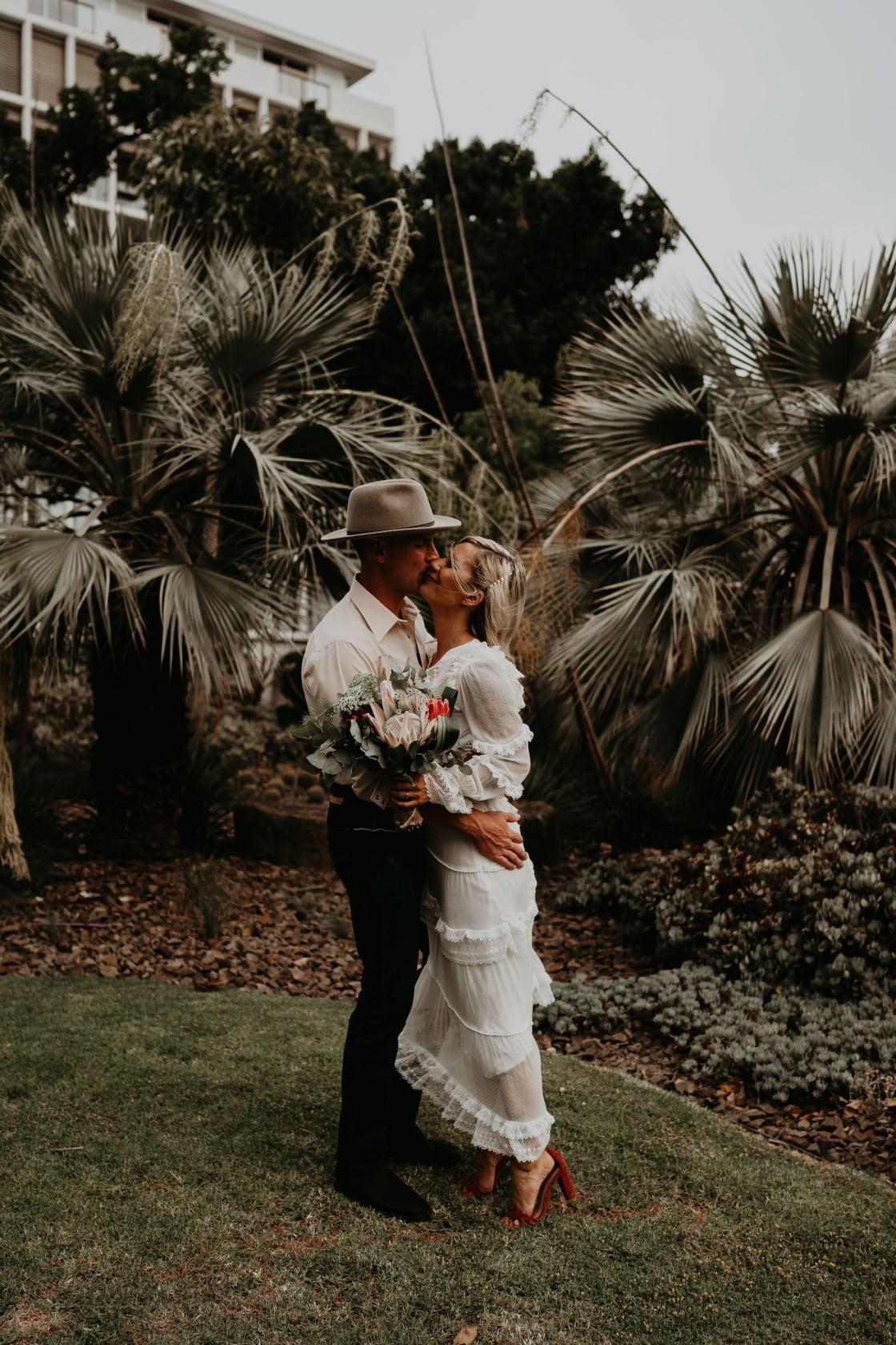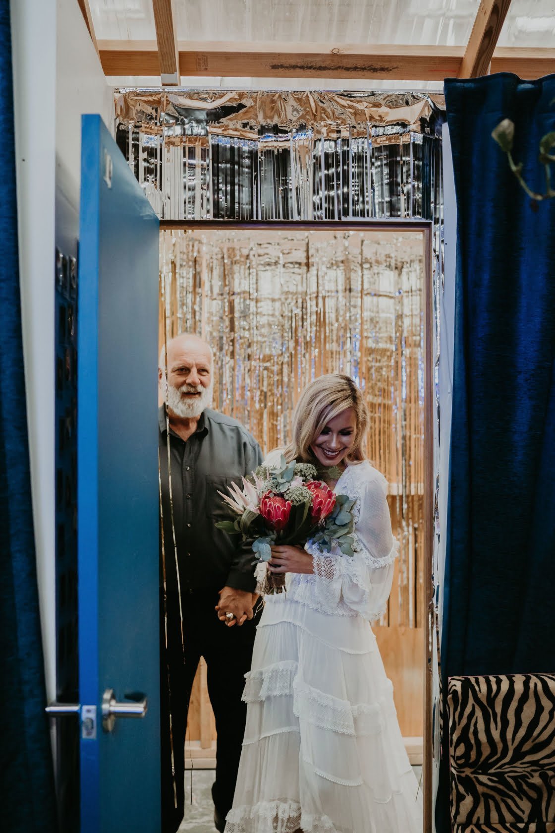 We don’t think we have ever come across a more relaxed bride and groom. Simone & Josh organised their wedding in just 4 weeks, shopping for their outfits (get a load of the groom’s Blundstones!) together just a week before. For their easy-going affair, the duo opted for a Vegas-style ceremony followed by a backyard house party, walking back down the aisle to Abba’s ‘I Do, I Do, I Do, I Do’. Kitschy, chilled and packed full of groovy ideas, this might just be one of our fave weddings of 2020. The wonderful Hailey of One Spoon Two Spoon was there to capture it all. Scroll down for the goods…