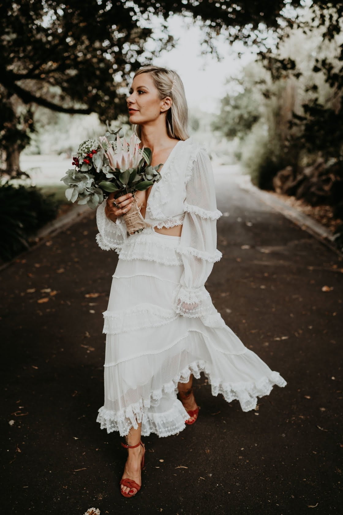 CONTRIBUTING VENDORS Photographer One Spoon Two Spoon Florist Nature’s Beauty Florist Stationery Bride Ceremony Venue The Altar Electric Reception Venue Private Property Cake & Desserts Family Celebrant Marry Me Dee Rings Rutherford Jewellery BRIDE Dress Zimmermann Shoes Witchery Makeup Mecca GROOM Shirt American Rag Pants Levi’s Hat Akubra via Smart Alec Hatters Shoes Blundstone