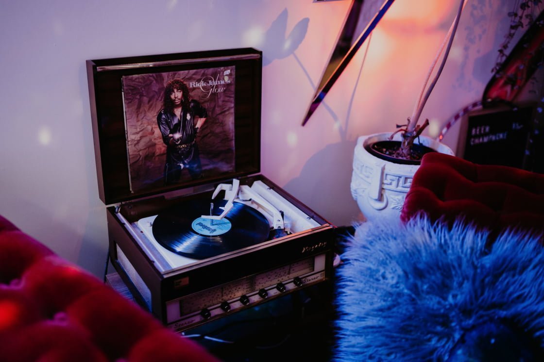 FAVOURITE DETAILS “All of the cakes and food was made by family. We had decided to have a good old house party for our ceremony. We strung lights all over our backyard, borrowed vintage outdoor furniture from our neighbour, moved our record player and 70s couches outside and created a plant party oasis in our backyard. My best friend Lisa created a menu of cocktails, sourced 60s cocktail glasses, decorations and equipment and was the self-designated cocktail maker on the night.”
