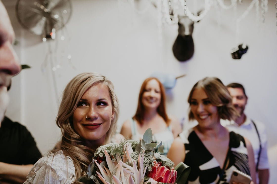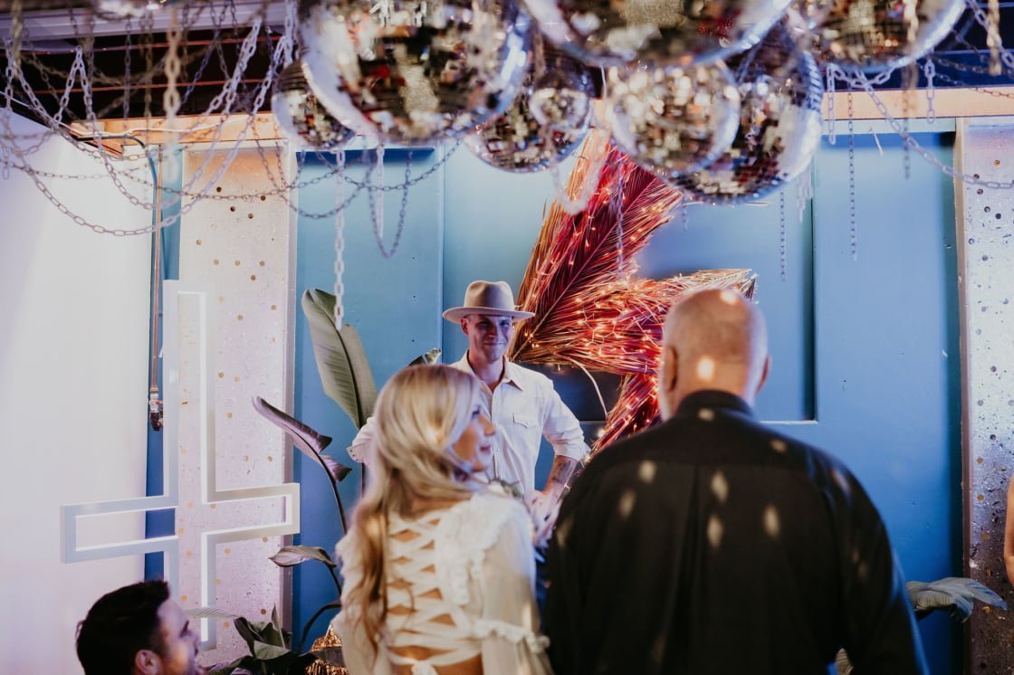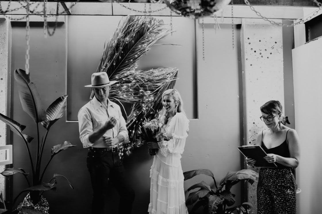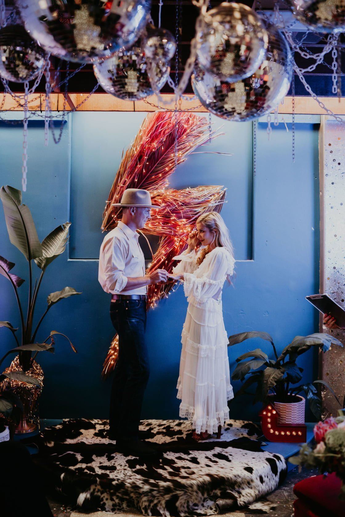 THE VENUE “We initially met Dee Brinsmead, The Altar Electric crew and Hailey Birch of One Spoon Two Spoon when we were the ‘models’ in a photoshoot for them for Broadsheet Melbourne in 2017. We had a great time with them and loved the premise of the Vegas-style quickie wedding in Melbourne. We knew if we were to be married in Melbourne we’d contact The Altar Electric and One Spoon Two Spoon because they were so much fun and aesthetically right down our alley.”