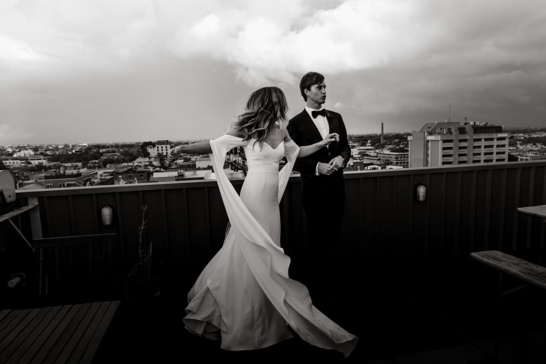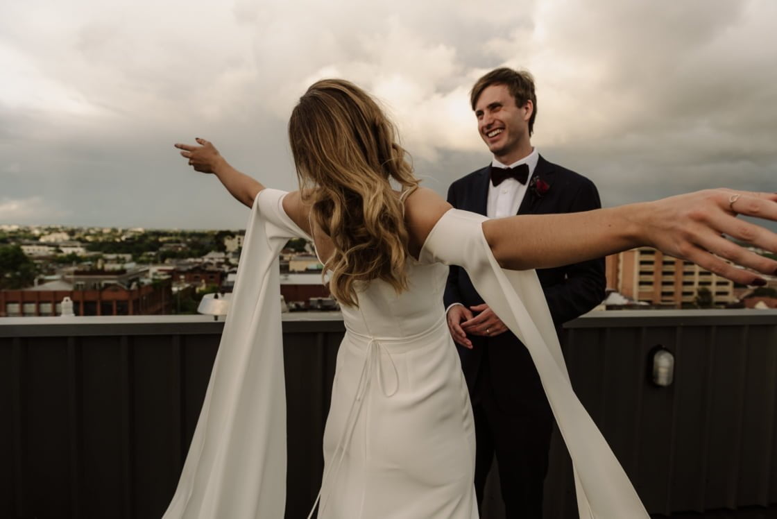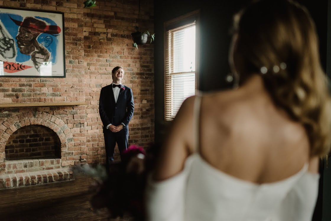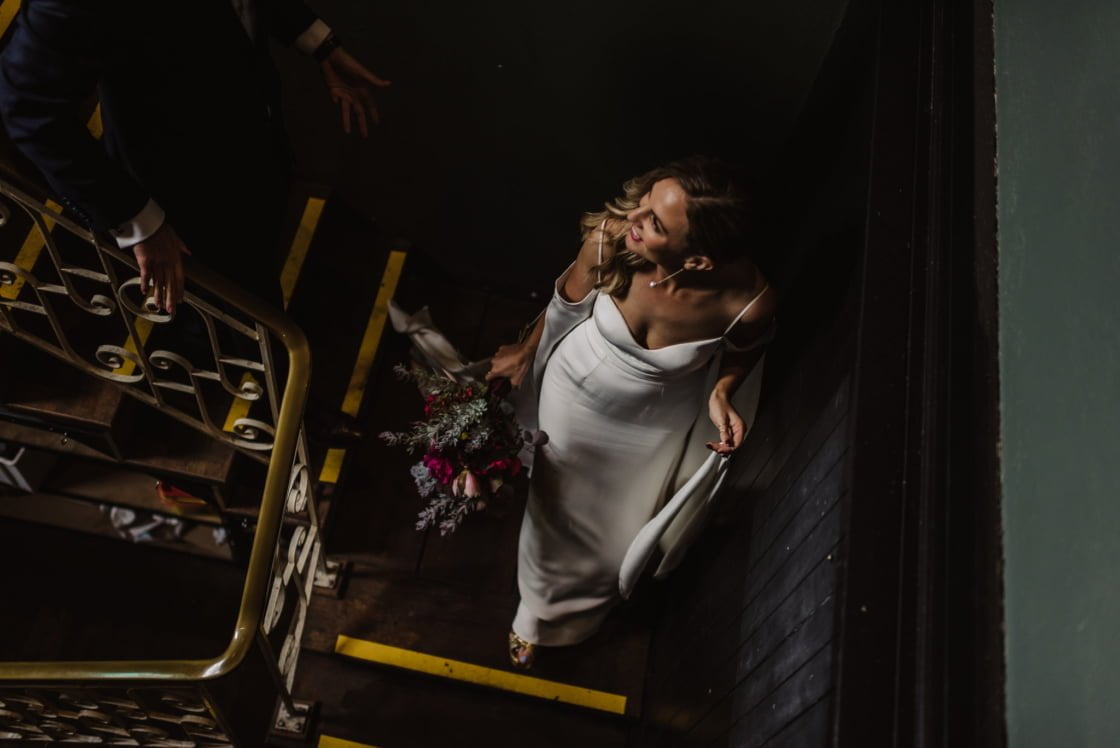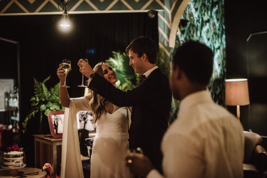 MEMORABLE MOMENT “It rained all morning, so at lunchtime, we moved the ceremony to the same venue as our reception- Panama Dining Room and Bar (we were so relieved we had a backup plan) and we decided at the last minute to meet up before the ceremony and take some photos. Our photographer made some calls and luckily the Rochester Hotel said we could take some photos in their upstairs space. Also, I’ll never forget the atmosphere at Panama at the start of the ceremony. It was pouring with rain outside, everyone was buzzing and the energy was electric.”