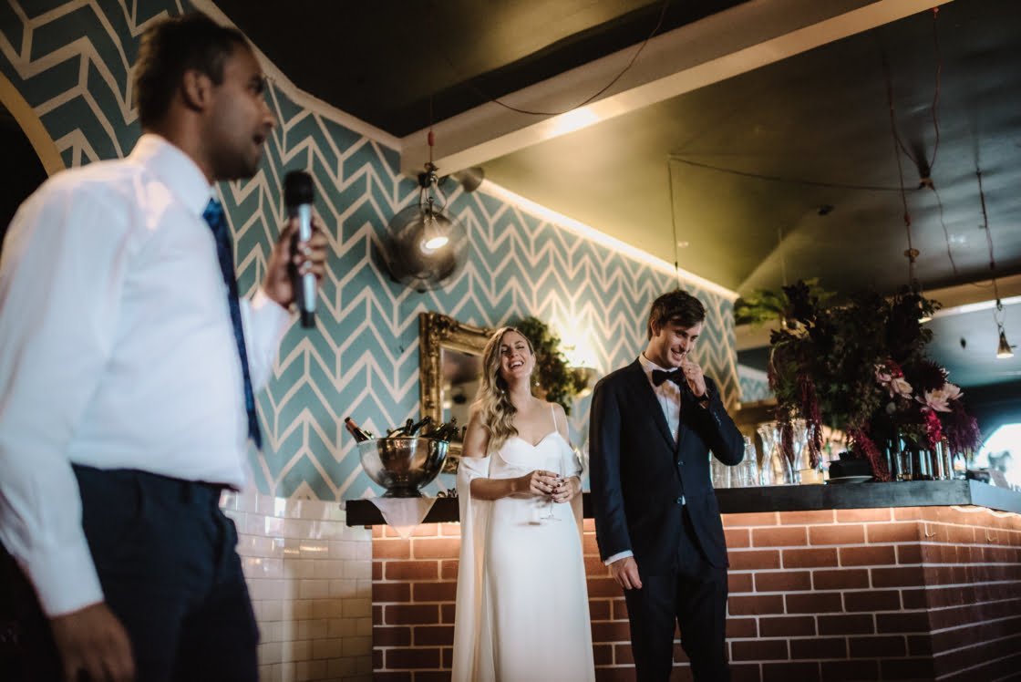 STANDOUT VENDORSOur celebrant, Damon Hughes, is also our good friend. Damon is an incredible storyteller. The room was filled with laughter, joy and sometimes tears. We had so many people tell us afterwards that they loved the tone and energy of the ceremony and some said it had even made them rethink their ideas about marriage. I had a blast working with Emily from North St Botanical– she is so lovely and I was blown away by her work. Our photographer Lucy of She Takes Pictures He Makes Films is an absolute legend. Lucy is so observant and unobtrusive; it felt like she was part of the family the moment she arrived! She is so talented and her photos really capture what the day felt like- filled with happiness and joy.”