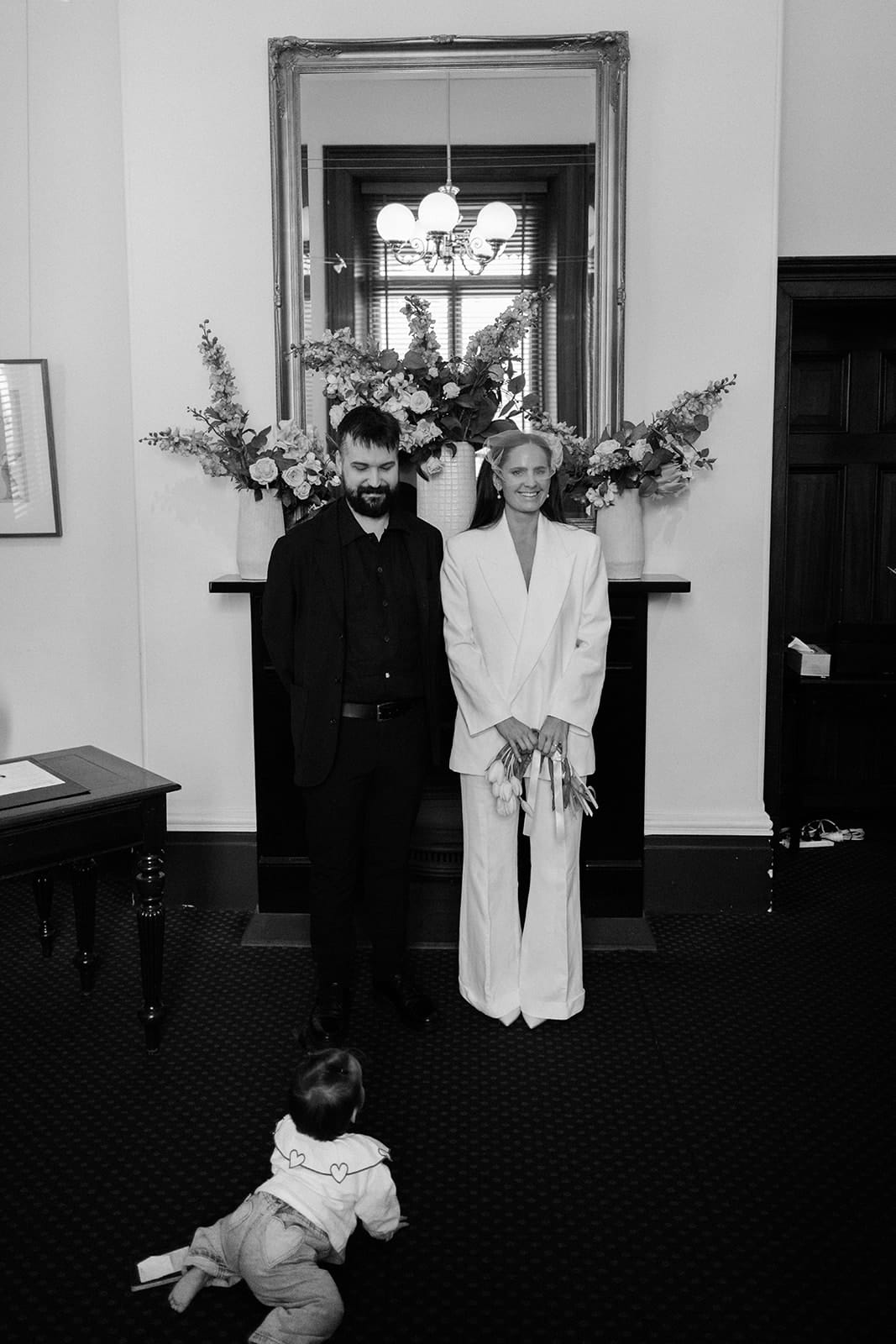 LITTLE LOL “Cal pretty much forgot to ask his best mate, Lachie, to be his witness and, in typical male fashion, left it to the very last minute! I also think it’s kind of funny to just go get married casually during your baby’s awake window on a Wednesday afternoon!”