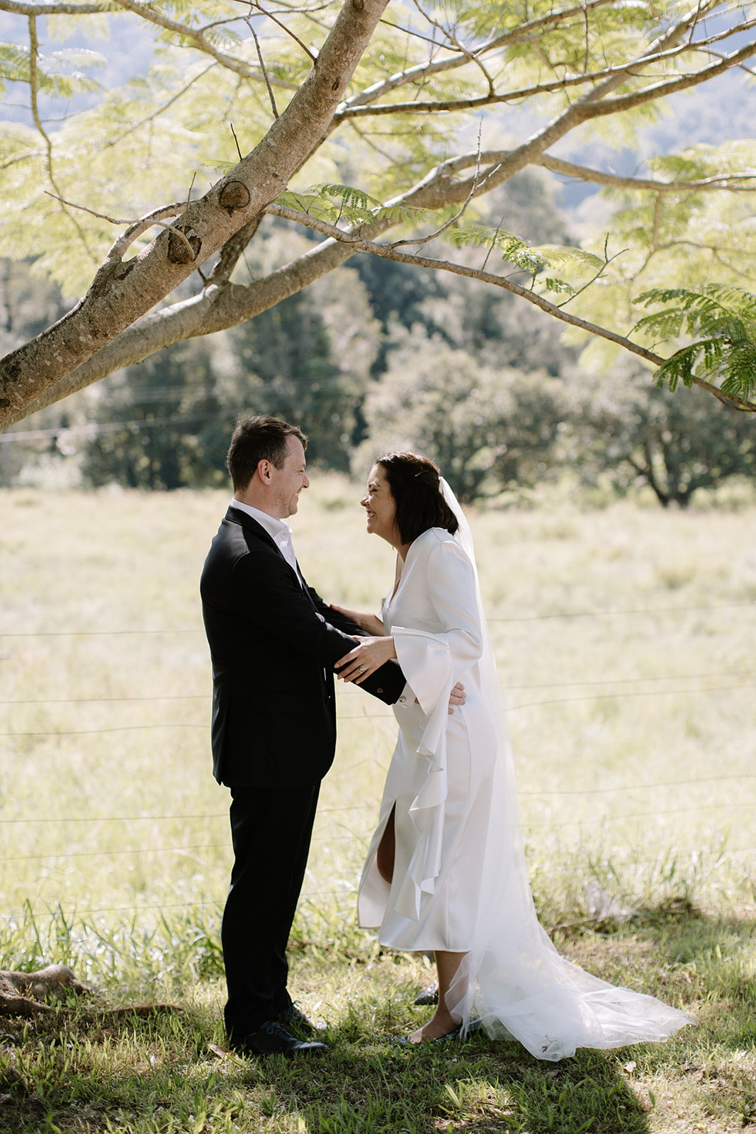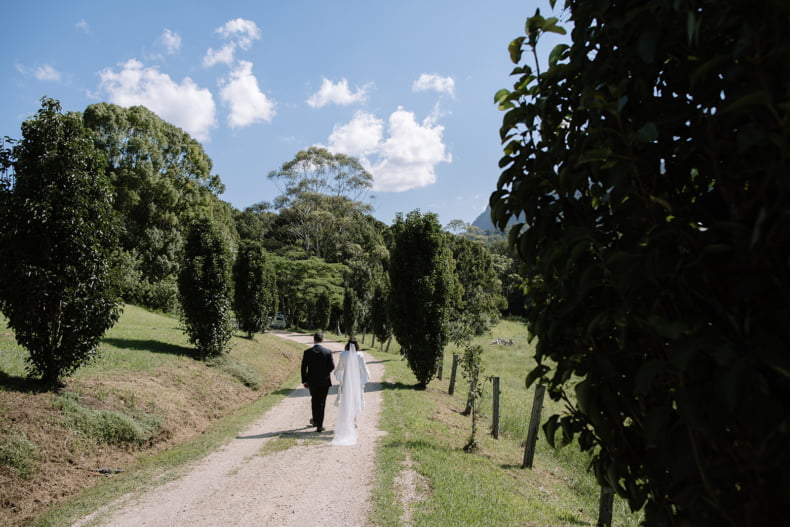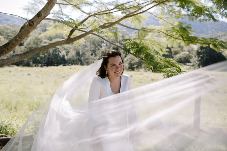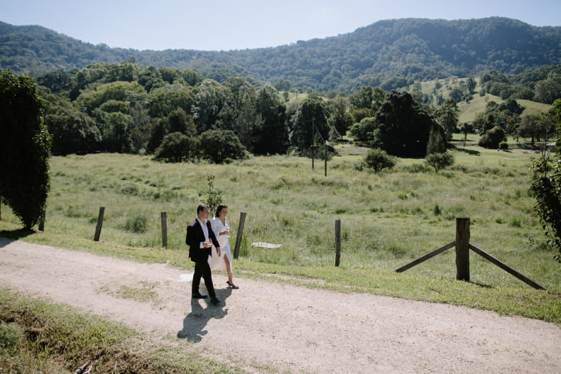 CONTRIBUTING VENDORS Photographer Matt Godkin Photography Event Planner The Events Lounge Florist Bramblehaus Venue Hillview Homestead via Luxico Catering 100 Mile Table Hire Items Hampton Event Hire, Innovative Hiring Queensland, Tow and Line Entertainment Jordan Holden Rings Bliss Lau BRIDE Dress Ellery Veil Dove Grey via Anti Bride Hairpiece Lady Jayne Shoes Ganni Accessories Brock Bangles, Holly Ryan Jewellery Hair The Front Yard Makeup Samantha D via The Right Fit GROOM Suit P Johnson Shoes Maison Kitsune Watch IWC