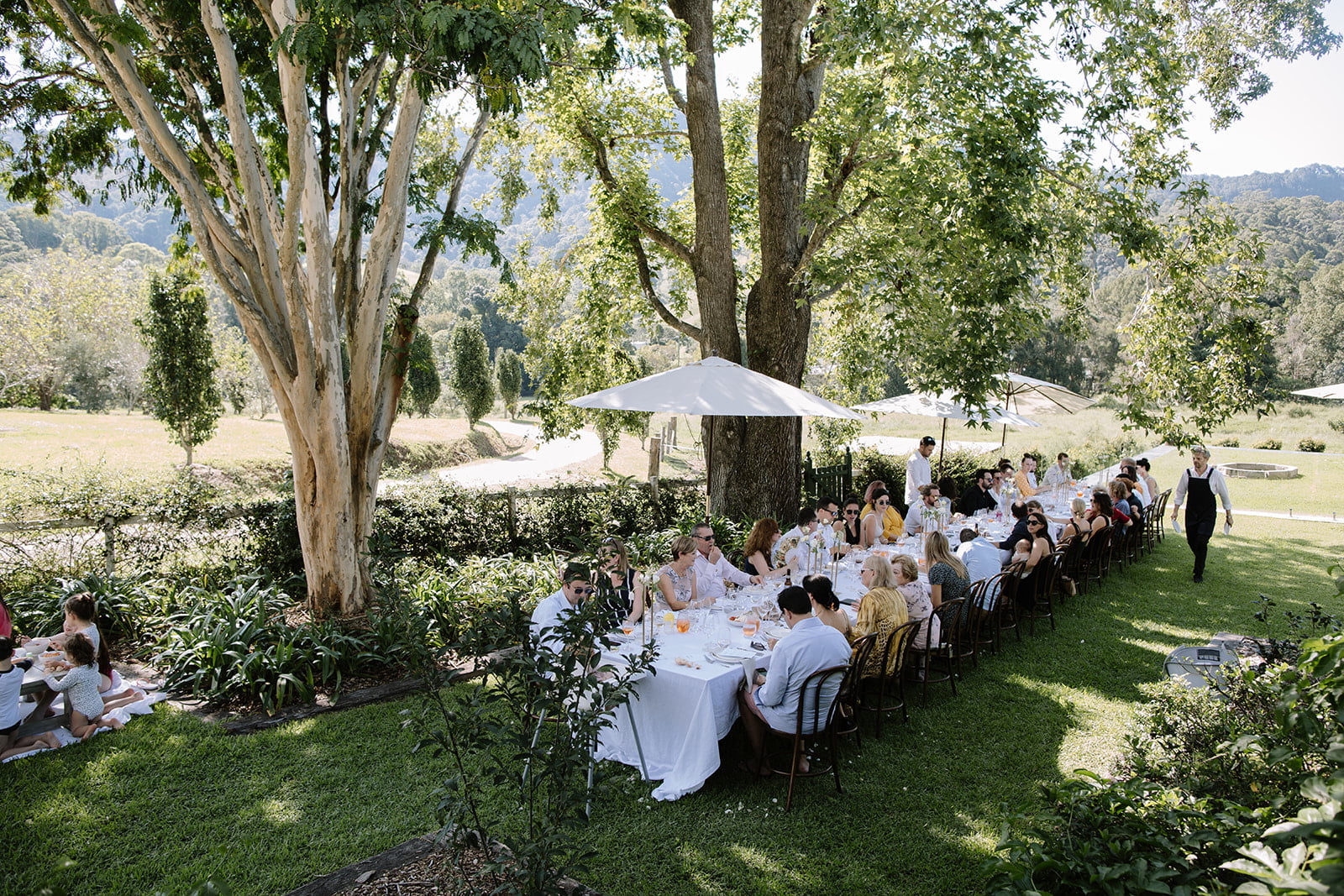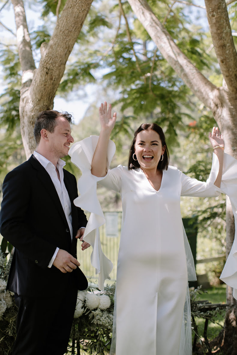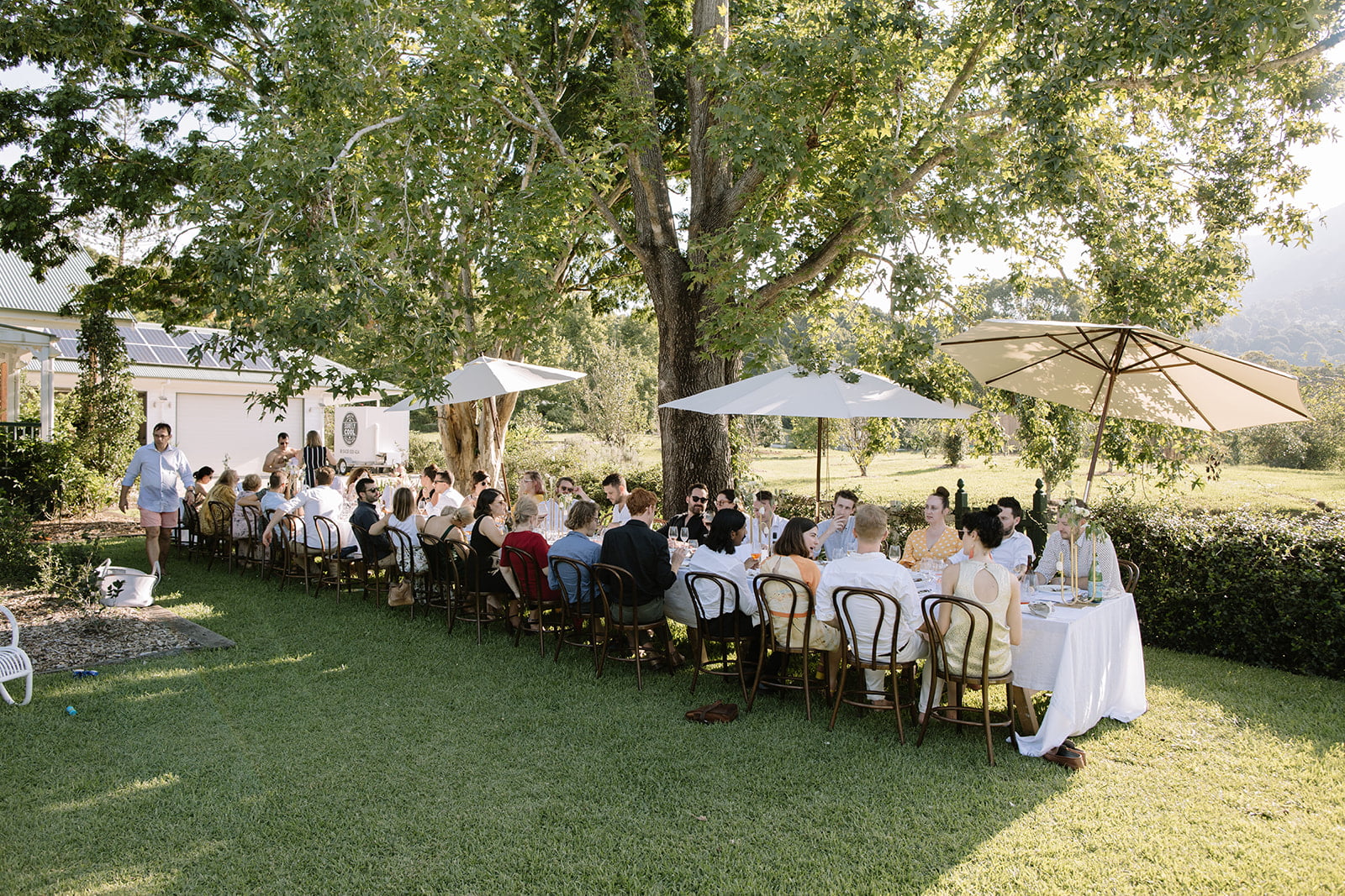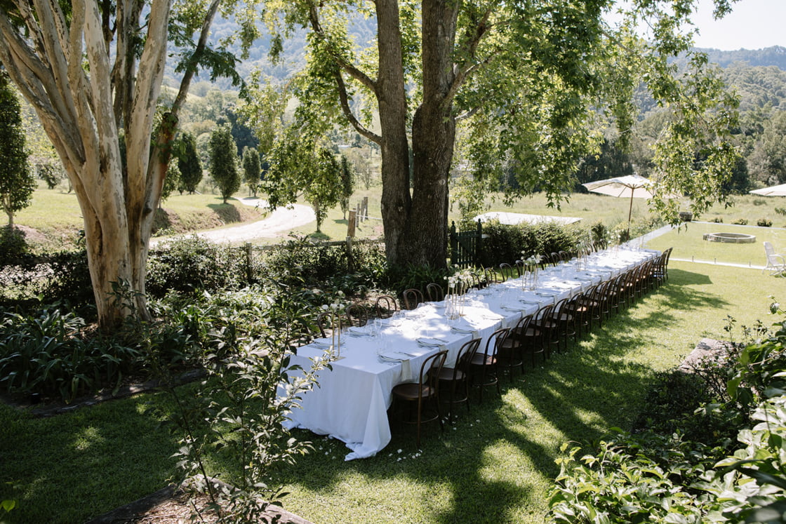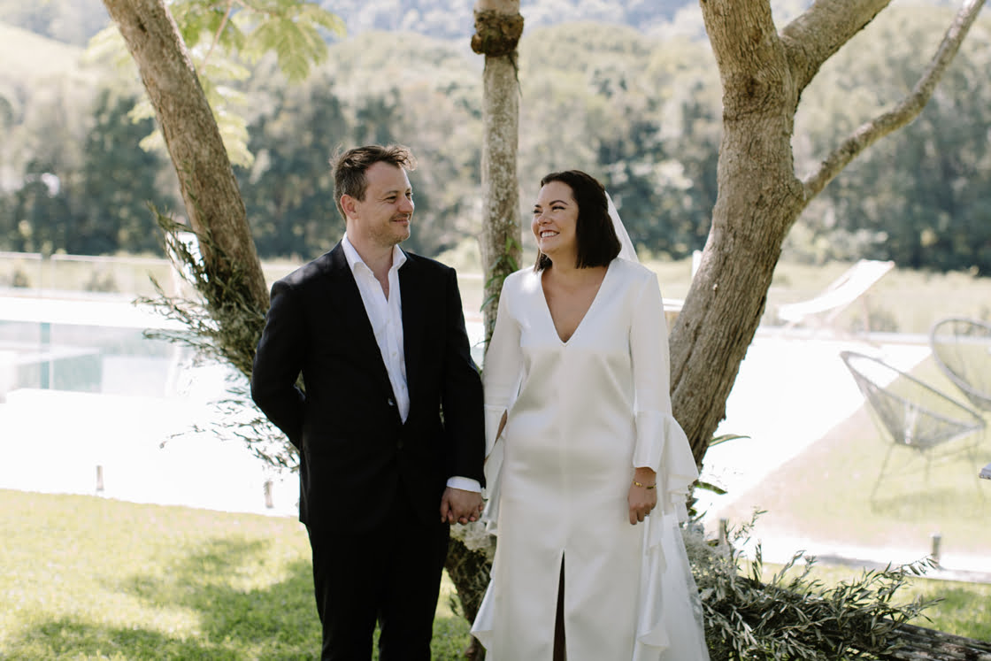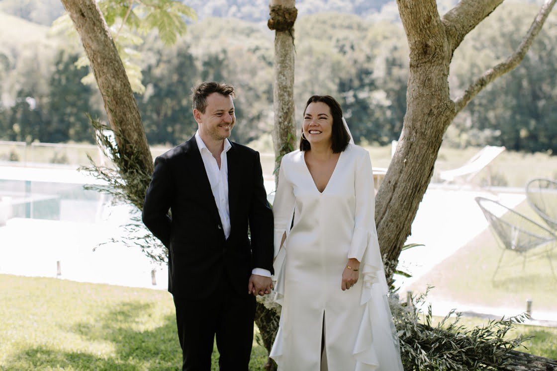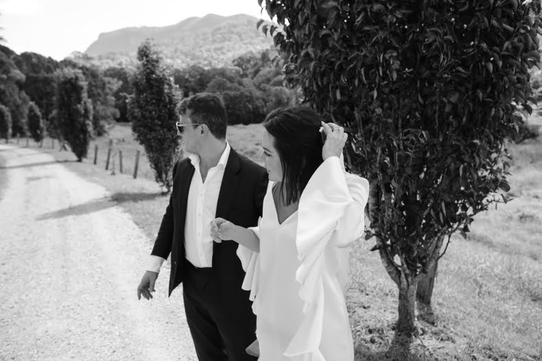 CONTRIBUTING VENDORS Photographer Matt Godkin Photography Event Planner The Events Lounge Florist Bramblehaus Venue Hillview Homestead via Luxico Catering 100 Mile Table Hire Items Hampton Event Hire, Innovative Hiring Queensland, Tow and Line Entertainment Jordan Holden Rings Bliss Lau BRIDE Dress Ellery Veil Dove Grey via Anti Bride Hairpiece Lady Jayne Shoes Ganni Accessories Brock Bangles, Holly Ryan Jewellery Hair The Front Yard Makeup Samantha D via The Right Fit GROOM Suit P Johnson Shoes Maison Kitsune Watch IWC
