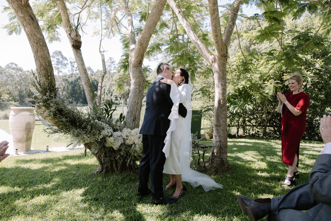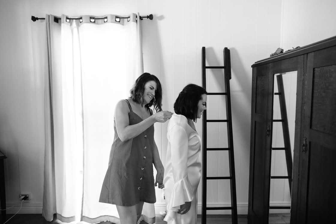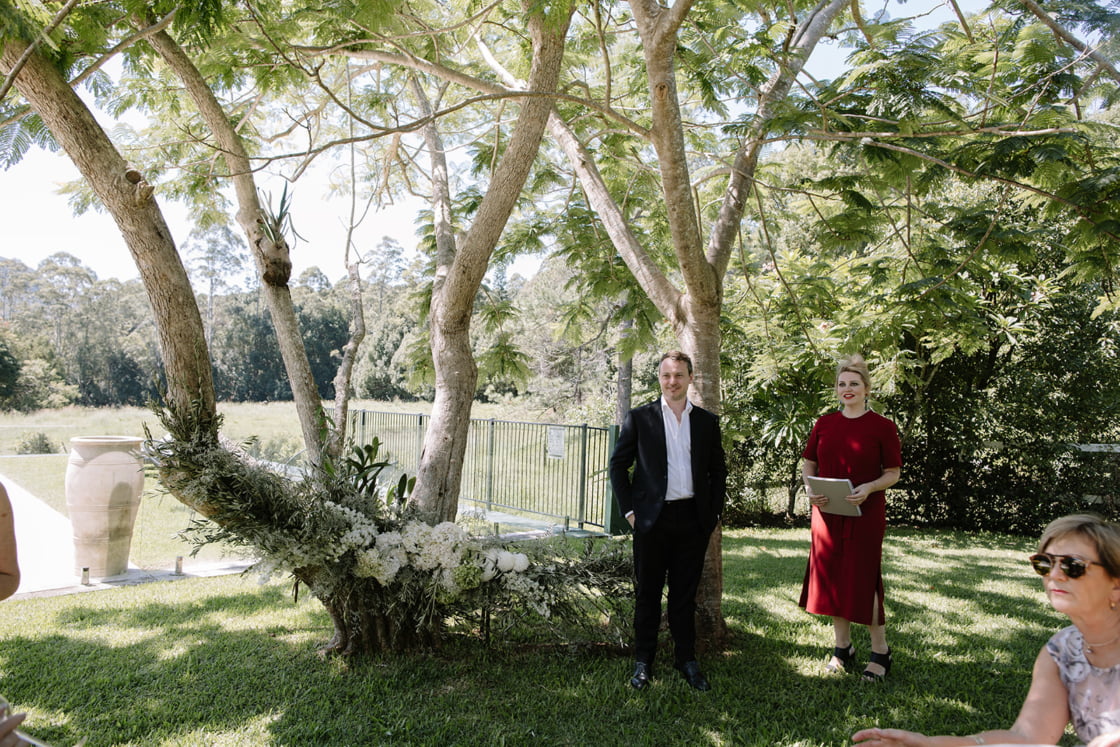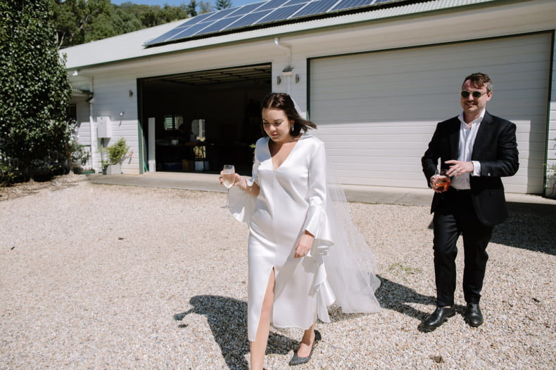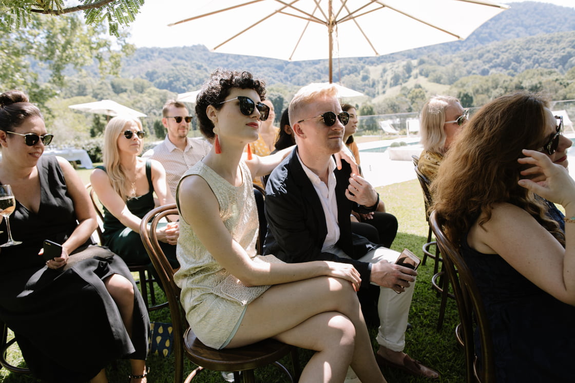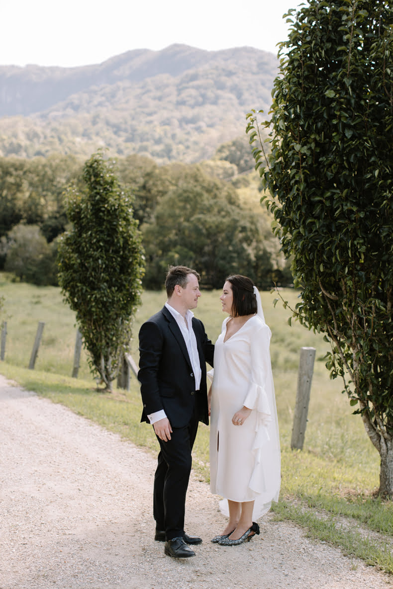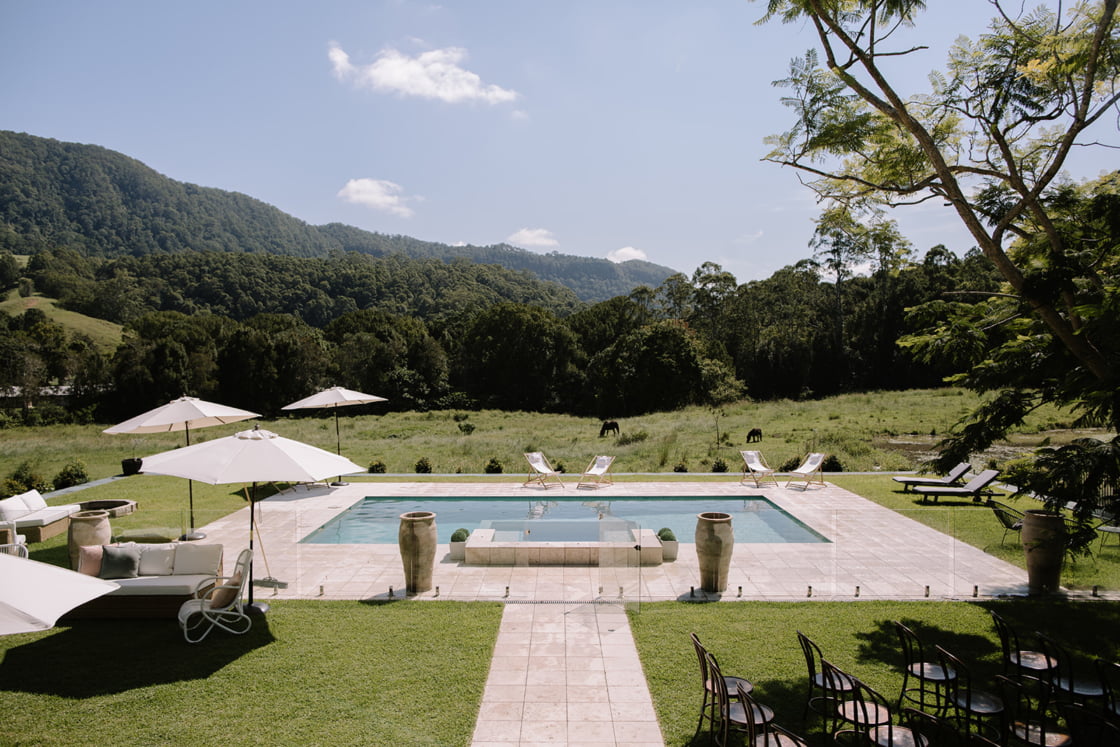 CONTRIBUTING VENDORS Photographer Matt Godkin Photography Event Planner The Events Lounge Florist Bramblehaus Venue Hillview Homestead via Luxico Catering 100 Mile Table Hire Items Hampton Event Hire, Innovative Hiring Queensland, Tow and Line Entertainment Jordan Holden Rings Bliss Lau BRIDE Dress Ellery Veil Dove Grey via Anti Bride Hairpiece Lady Jayne Shoes Ganni Accessories Brock Bangles, Holly Ryan Jewellery Hair The Front Yard Makeup Samantha D via The Right Fit GROOM Suit P Johnson Shoes Maison Kitsune Watch IWC