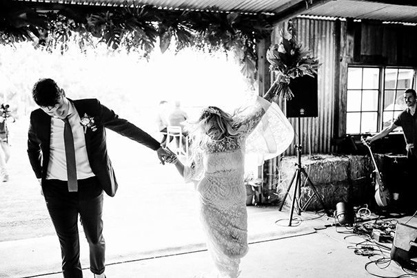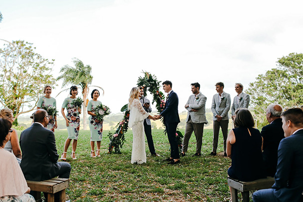 CREDITS Photos Lara Hotz // Cinematographer Humdrum Films // Event planner / Stylist Peachey Pie // Event coordinators Byron Bay Weddings // Florist Poppy + Fern // Stationery Set Square // Menus and signage In-grained // Place cards Letters by Belle // Printer Trenear Printing // Ceremony and reception Graciosa, NSW // Catering Fig Tree // Cake Byron Bay Cacao // Cake topper Melabowed via Etsy // Decorative elements Ocean Petals & Balloons // Wedding favours Set Square // Prop / furniture hire Lovestruck and The Wedding Shed // Photo booth The Photobooth // Lighting / sound hire Byron Audio //Signage In-grained // Entertainment The White Tree // Celebrant Ben Carlyle // Wedding bands Grew & Co // Transport Magic Bus Byron Bay // Bridal gown designer Lover the Label // Reception Dress Alice McCall // Hair piece AnnaMarguerite via Etsy // Robes / getting ready tees Le Rose // Lingerie, accessories and bridesmaids dresses and shoes Asos // Garter Vintage // Shoes Kat Maconie and Zara // Hair Phoebe Fever // Suit The Tailors Co // Tie / Bow tie OTAA // Shoes Kurt Geiger // Watch Mister Wolf // Pin Few and Far Collective // Barber / grooming Blade Barbers // Groomsmen suits The Tailors Co // Flower girl outfits Cocoblush and Saltwater Sandals.