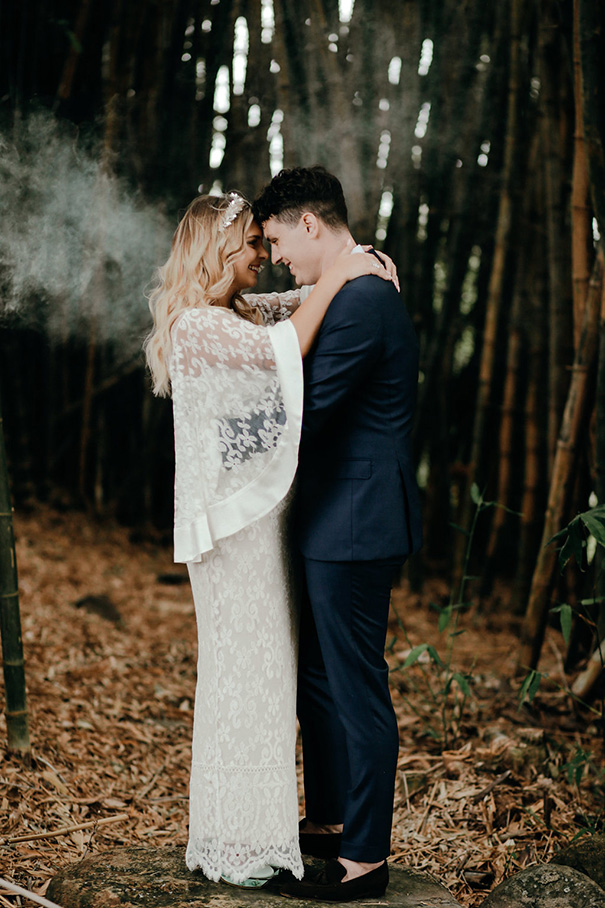 Dubbing the wedding planning process a £funny, weird ride of anxiety and excitement, the couple ended up with a laid-back day with some chic and whimsical elements at Graciosa in Byron. £We just wanted everyone to come to Byron Bay, chill out, drink, laugh and love, Stef tells us, adding that her favourite detail from the day was a no-brainer.