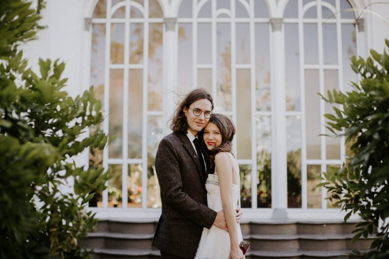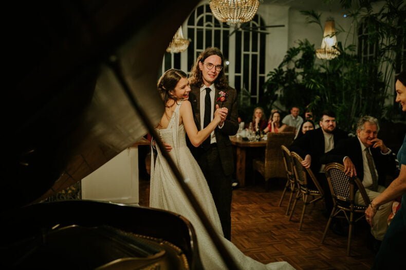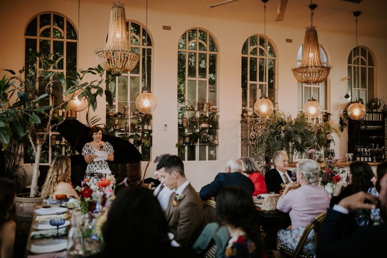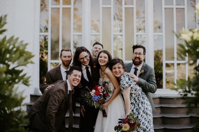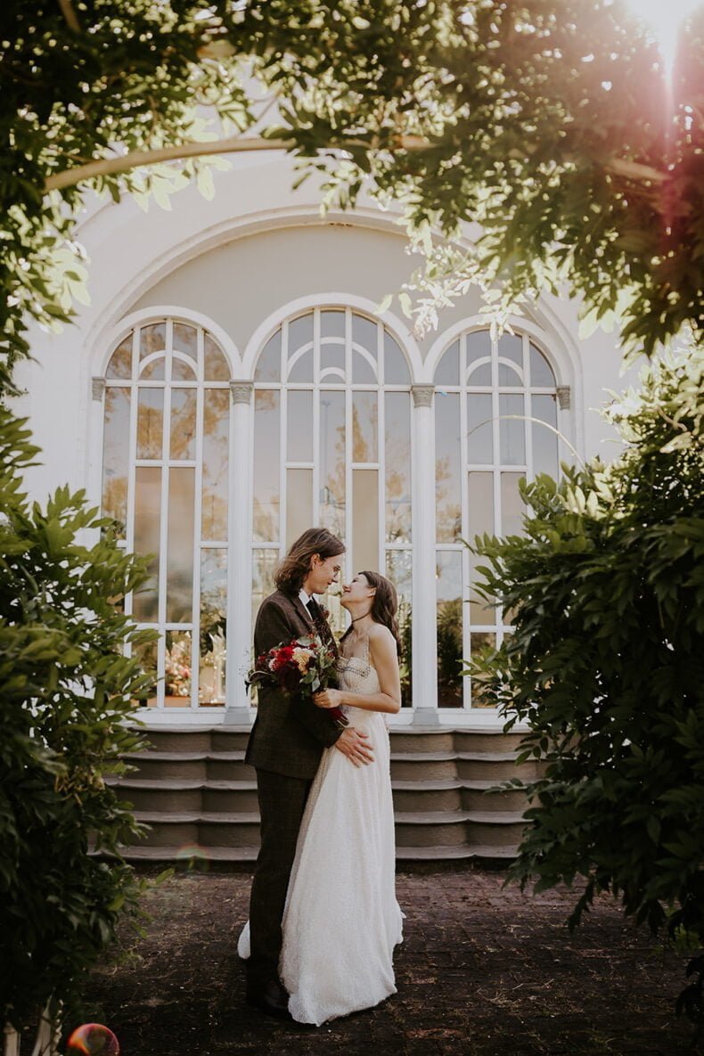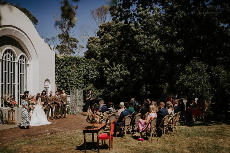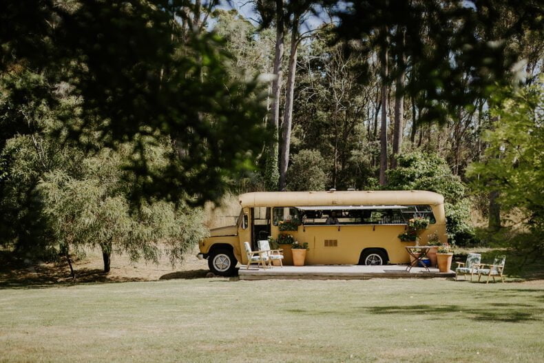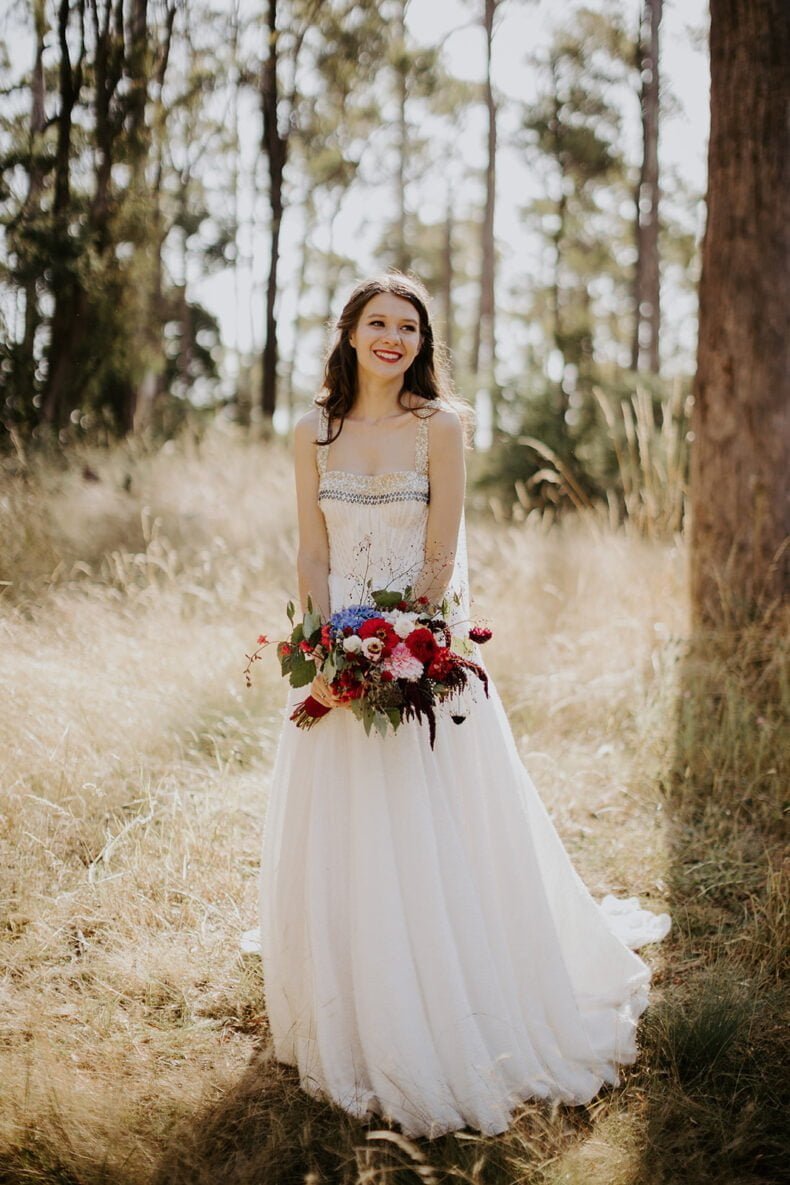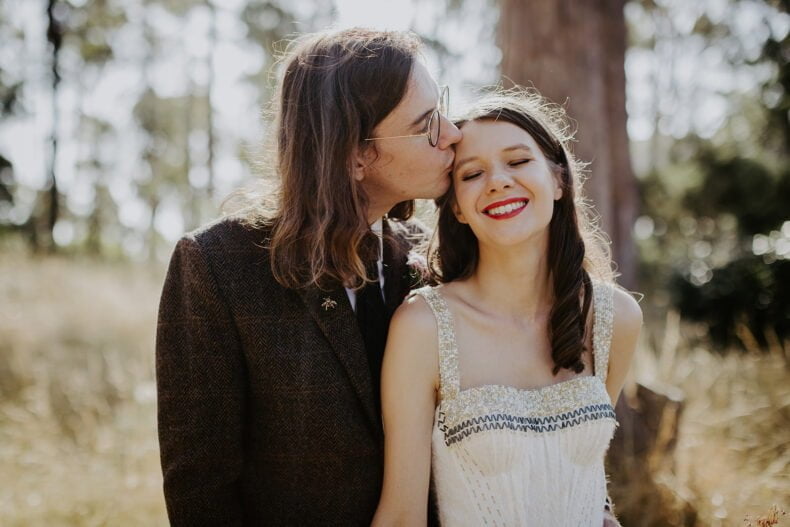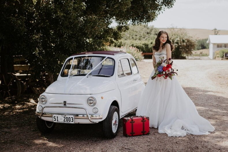 After getting engaged in the romantic Italian city of Venice, Steph and Marty set about planning their dream day while still living overseas. And despite never having seen the Food and Wine Conservatory located in the Tassie town of Sassafrass, they knew it was the one. “We actually didn’t see any venues in person,” admits Steph. “But the Conservatory was exactly what we were looking for – the plants, the arched windows, the baby grand piano.” The pair then called up some of the best in the biz to make their shindig totally epic – cue Bonnie Jenkins on photos and Forever Soles for those perfect dance-all-night-long shoes.