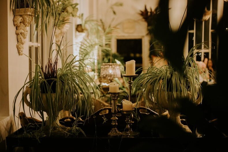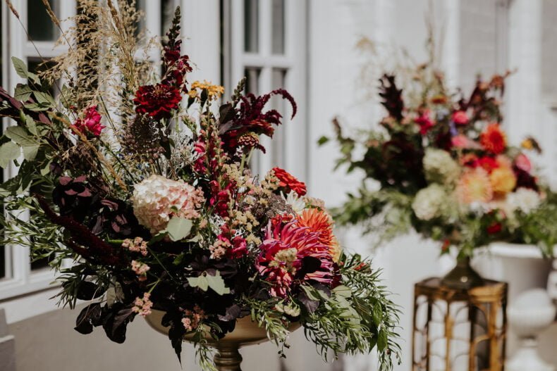 DIY “We did all of the styling ourselves so we spent months sourcing vintage vases and brassware for the table settings (and hours polishing brass!) as well as a pair of tiger cane stands for the ceremony flowers. Also, we turned the acrylic place cards into fridge magnets for our guests.”