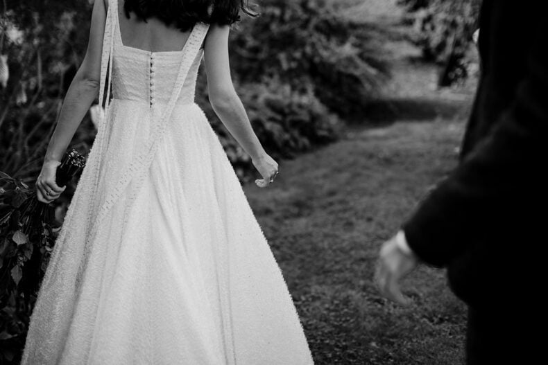 THE DRESS “I went shopping with my mum first and wasn’t feeling anything – everything felt either too simple or too detailed for me. So I went online and found the stunning Rara Avis dresses on Etsy. It was very nerve-racking ordering a dress made-to-measure online that I couldn’t return, but it was perfect – it fit like a glove and was even more beautiful in person. I loved the beading on the bodice, the ribbons at the back, and the little details of colour that you can only see up close.”