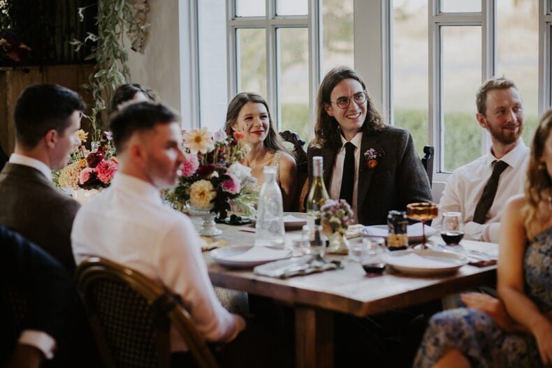 DIY “We did all of the styling ourselves so we spent months sourcing vintage vases and brassware for the table settings (and hours polishing brass!) as well as a pair of tiger cane stands for the ceremony flowers. Also, we turned the acrylic place cards into fridge magnets for our guests.”