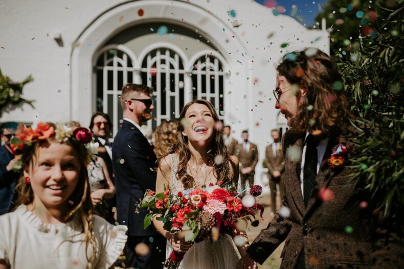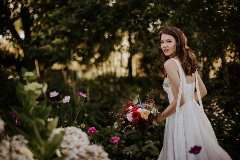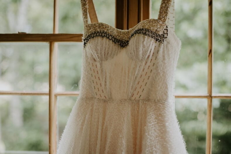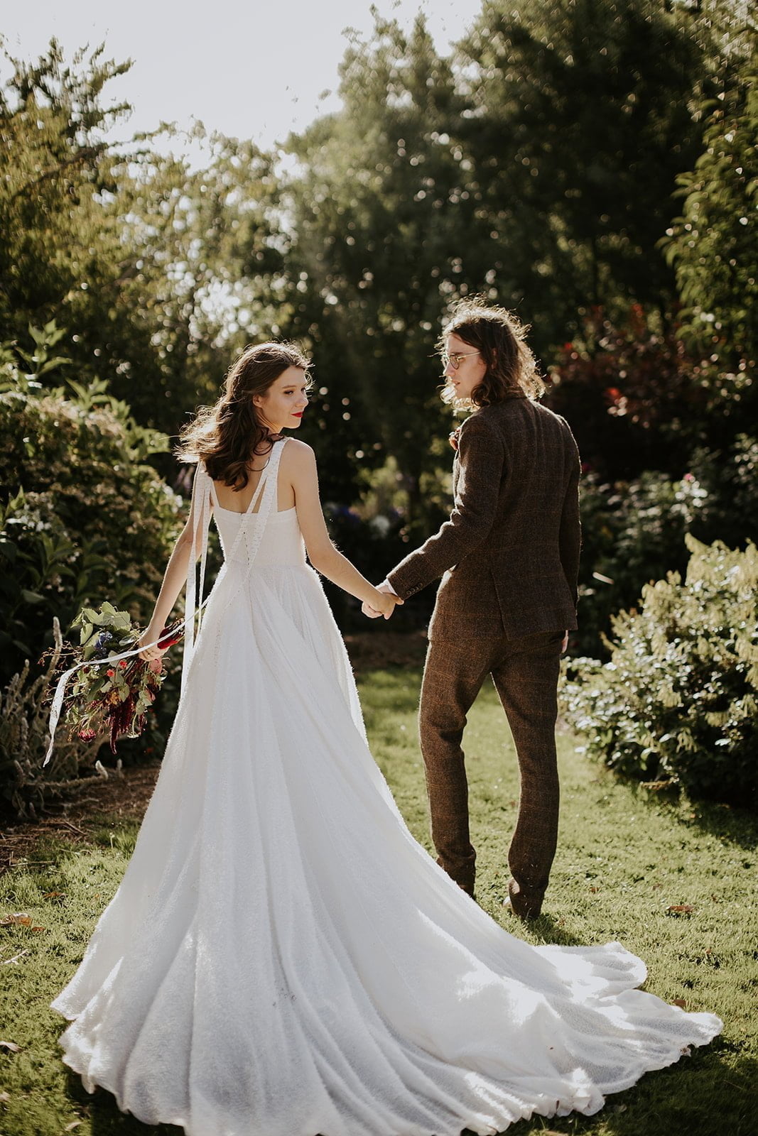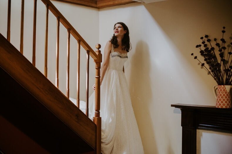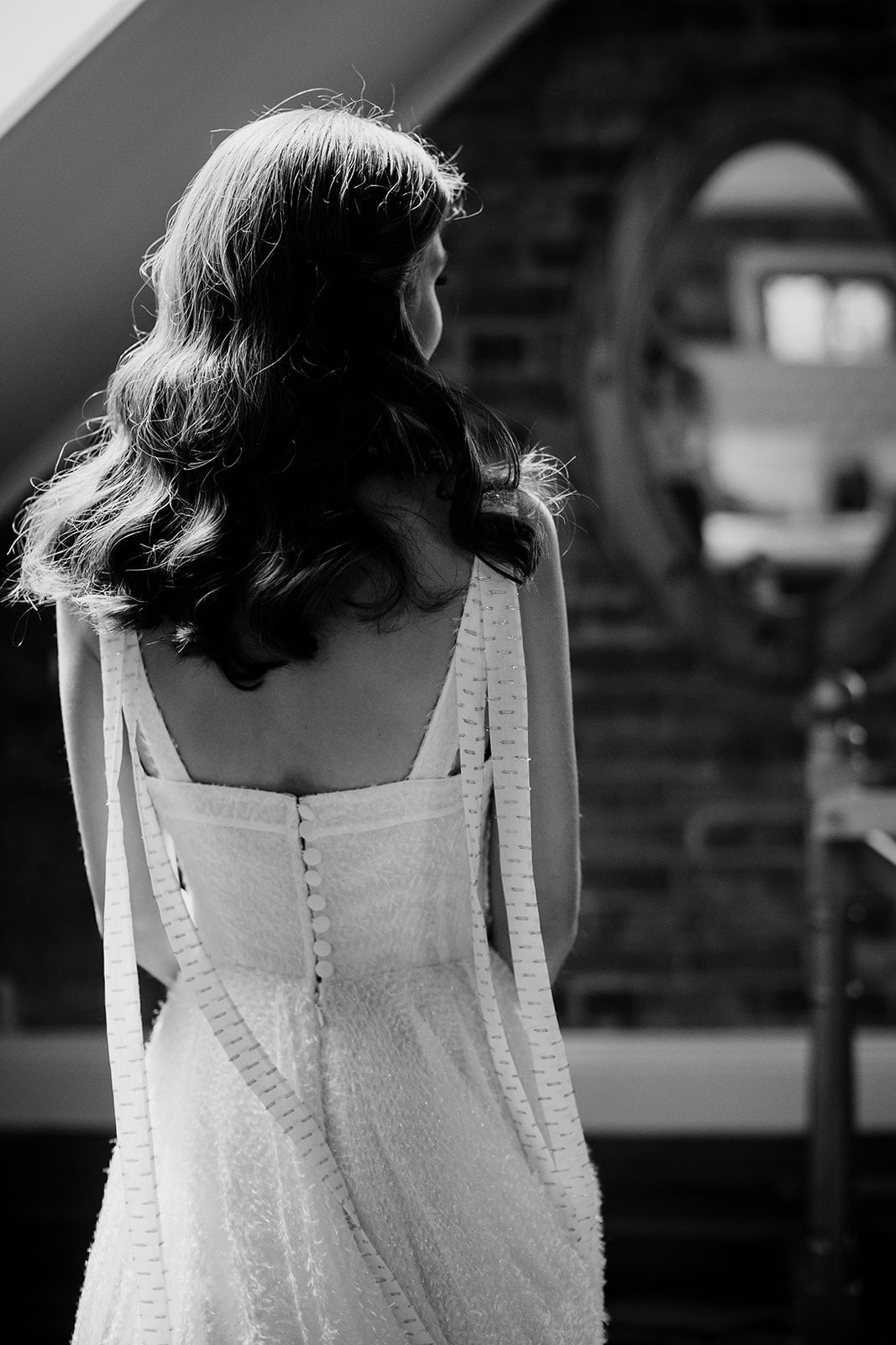THE DRESS “I went shopping with my mum first and wasn’t feeling anything – everything felt either too simple or too detailed for me. So I went online and found the stunning Rara Avis dresses on Etsy. It was very nerve-racking ordering a dress made-to-measure online that I couldn’t return, but it was perfect – it fit like a glove and was even more beautiful in person. I loved the beading on the bodice, the ribbons at the back, and the little details of colour that you can only see up close.”