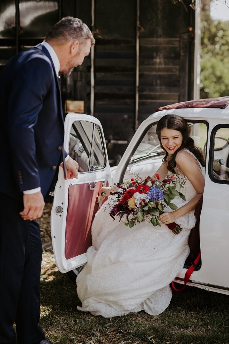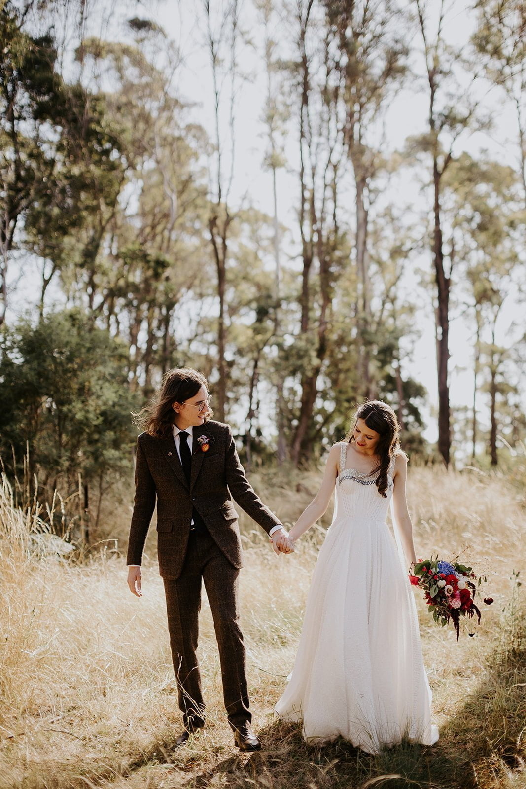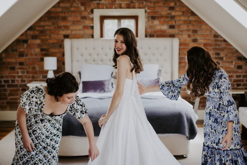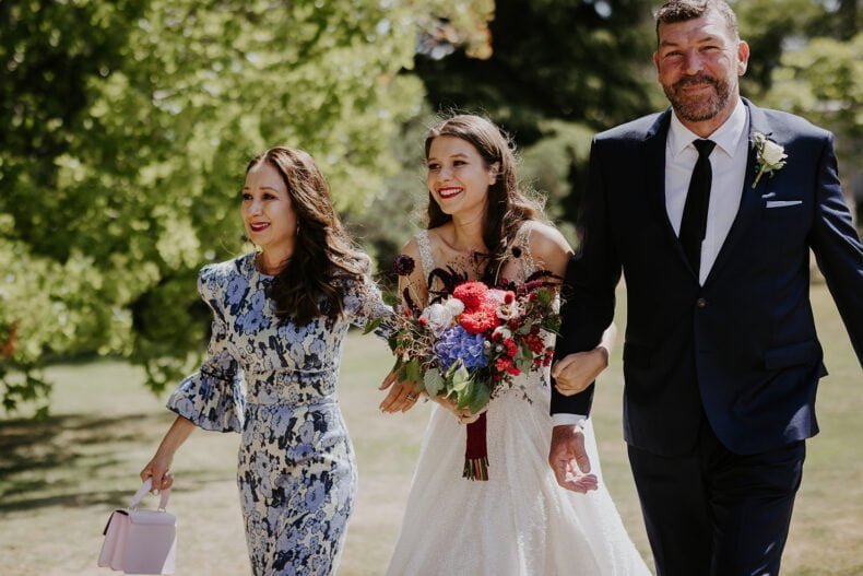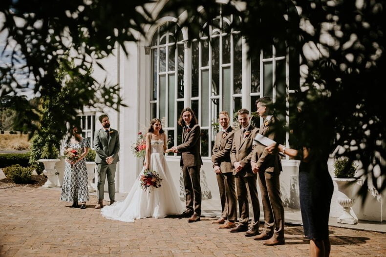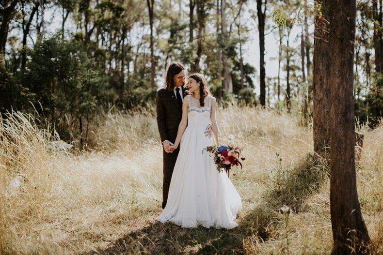After getting engaged in the romantic Italian city of Venice, Steph and Marty set about planning their dream day while still living overseas. And despite never having seen the Food and Wine Conservatory located in the Tassie town of Sassafrass, they knew it was the one. “We actually didn’t see any venues in person,” admits Steph. “But the Conservatory was exactly what we were looking for – the plants, the arched windows, the baby grand piano.” The pair then called up some of the best in the biz to make their shindig totally epic – cue Bonnie Jenkins on photos and Forever Soles for those perfect dance-all-night-long shoes.