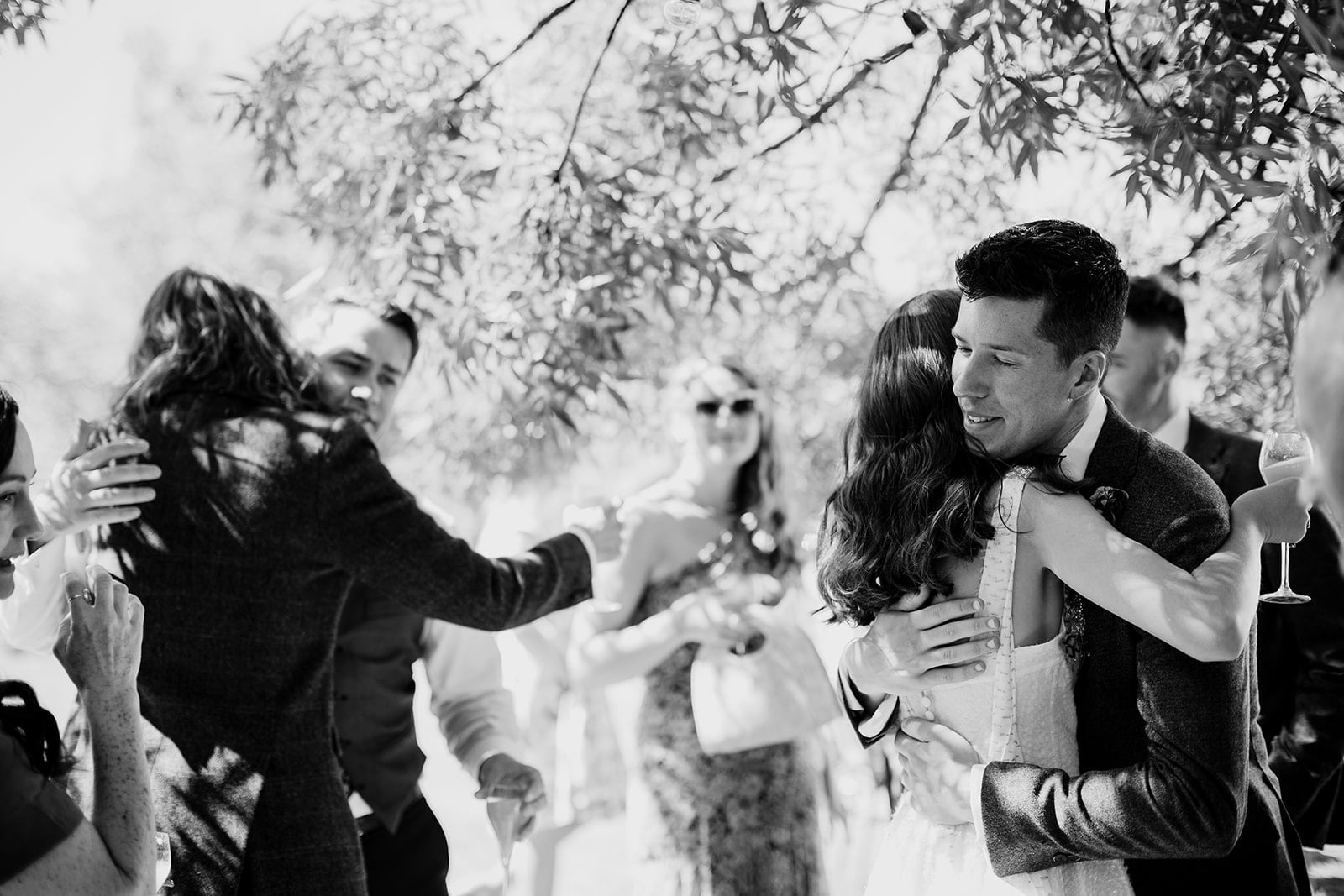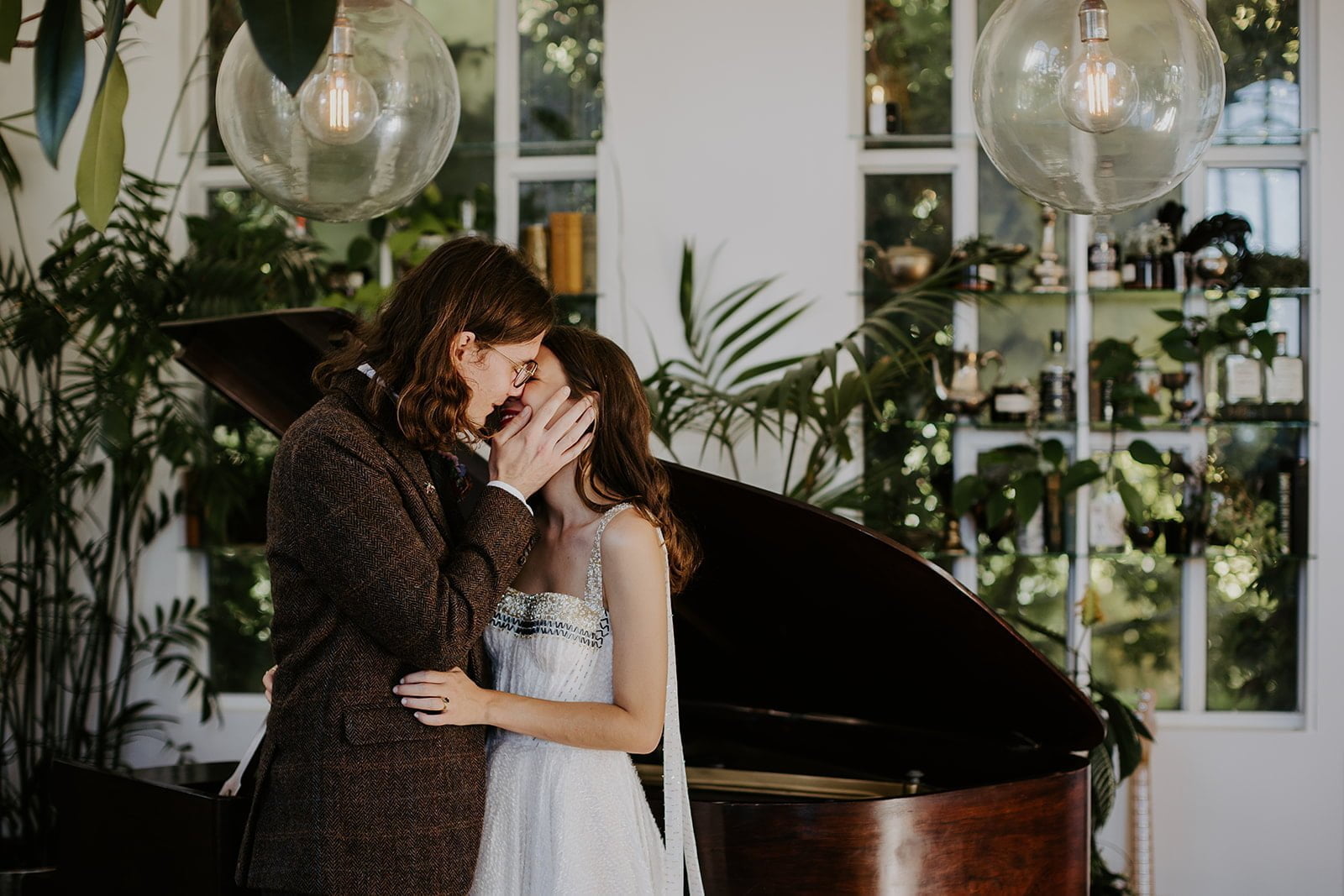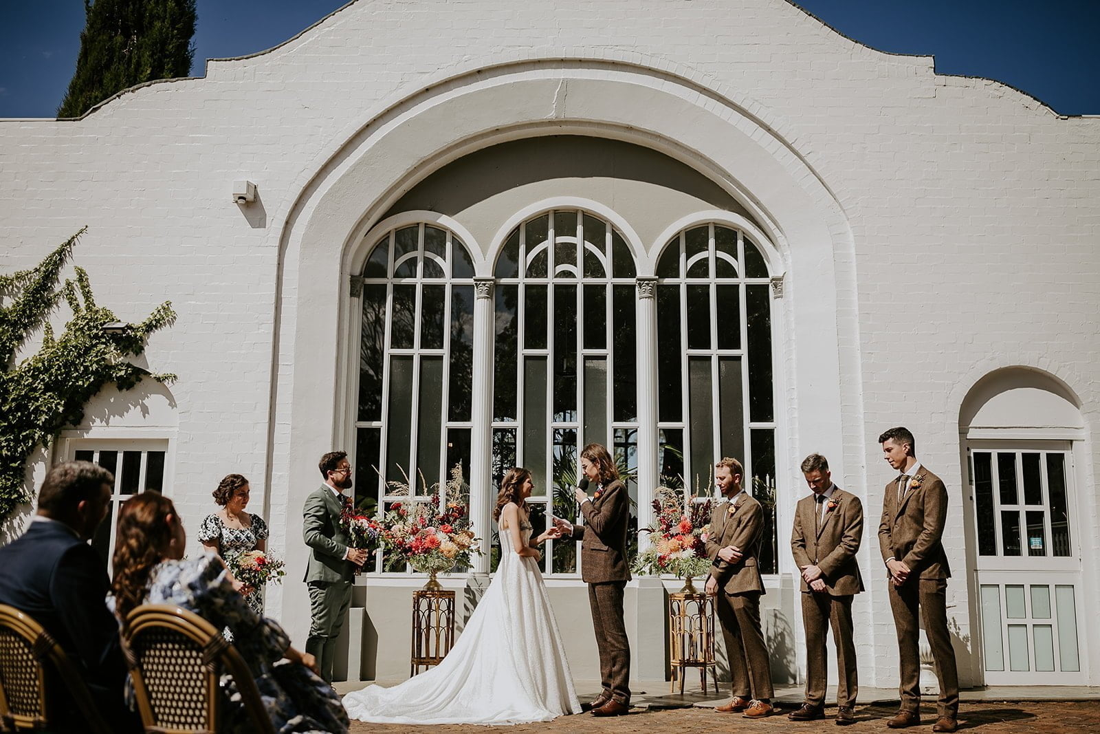 After getting engaged in the romantic Italian city of Venice, Steph and Marty set about planning their dream day while still living overseas. And despite never having seen the Food and Wine Conservatory located in the Tassie town of Sassafrass, they knew it was the one. “We actually didn’t see any venues in person,” admits Steph. “But the Conservatory was exactly what we were looking for – the plants, the arched windows, the baby grand piano.” The pair then called up some of the best in the biz to make their shindig totally epic – cue Bonnie Jenkins on photos and Forever Soles for those perfect dance-all-night-long shoes.