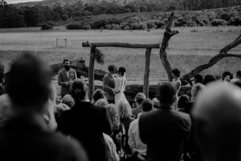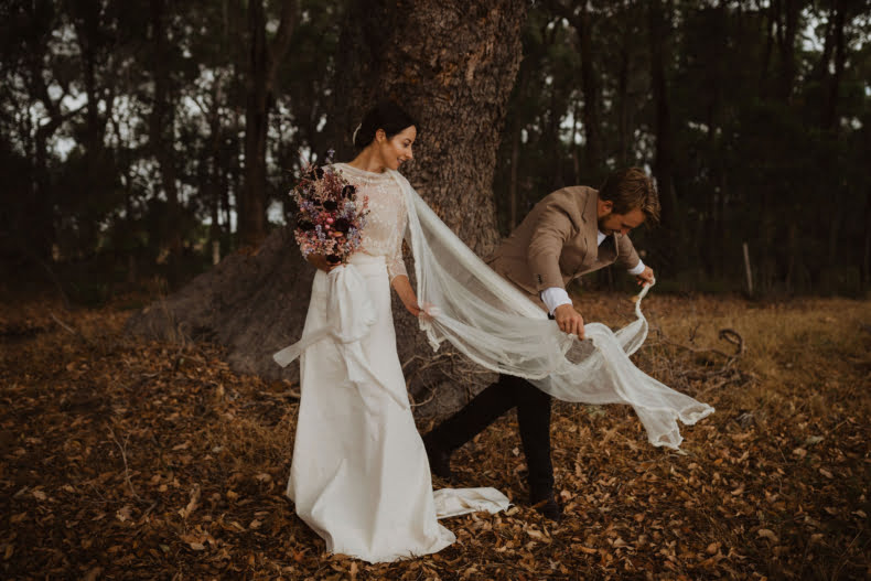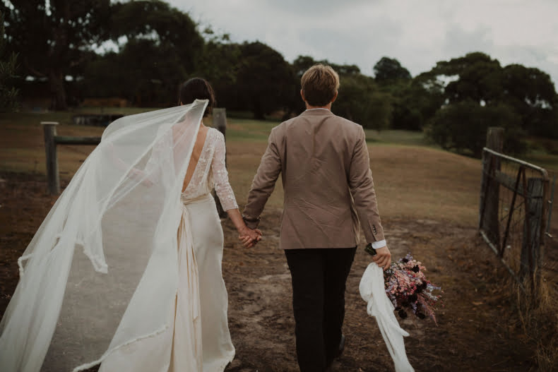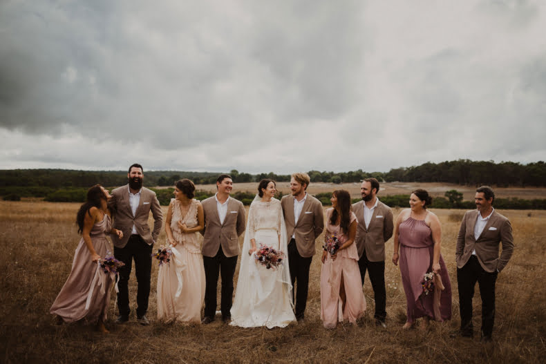Ceremony & Reception The Tiller Farm Catering Tiller Dining Hire Items Hire in Style Signage Pearly Paper Design via Etsy Bouquet Ribbons Frou Frou Chic Entertainment DJ Aslan Celebrant Joan Strikwerda Rings Mazzucchelli’s (bride), Thomas Meihofer (groom) Getting Ready Accommodation Bottlebrush Cottage in Yallingup via Stayz THE BRIDE Bridal Gown & Veil Cortana Shoes Castaner Hair Cinco Hair Boutique Bridesmaids Dresses Flannel THE GROOM Suit Rodd & Gunn Shirt Uniqlo Shoes R.M. Williams Groomsmens Suits Rodd & Gunn THE KIDS Flower Girl Dress Appleberry Lane