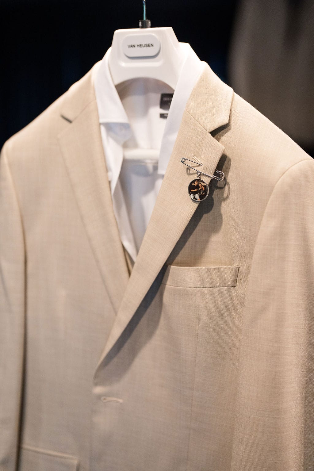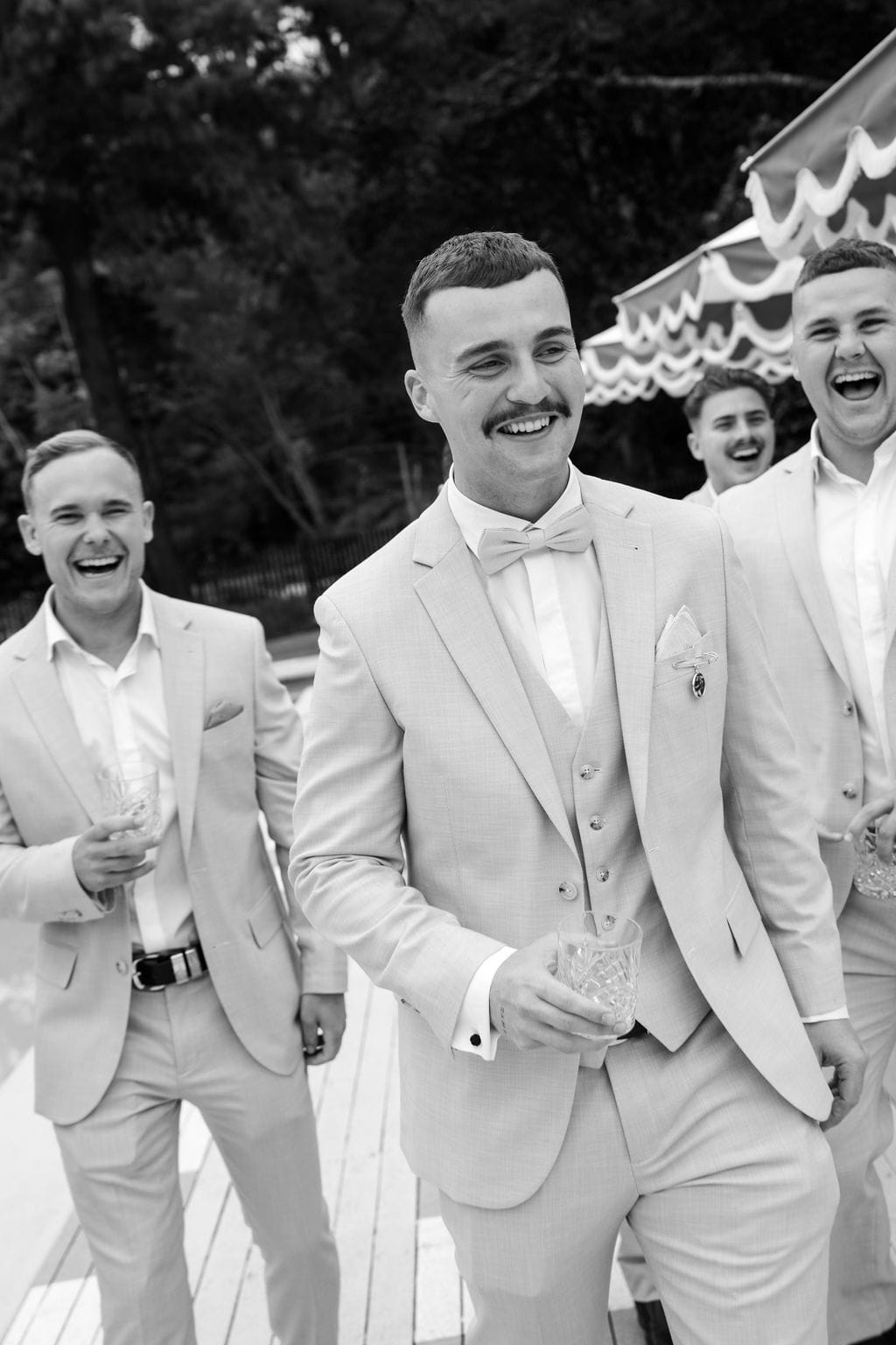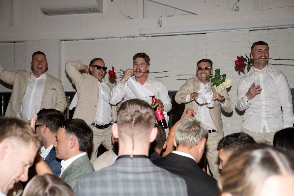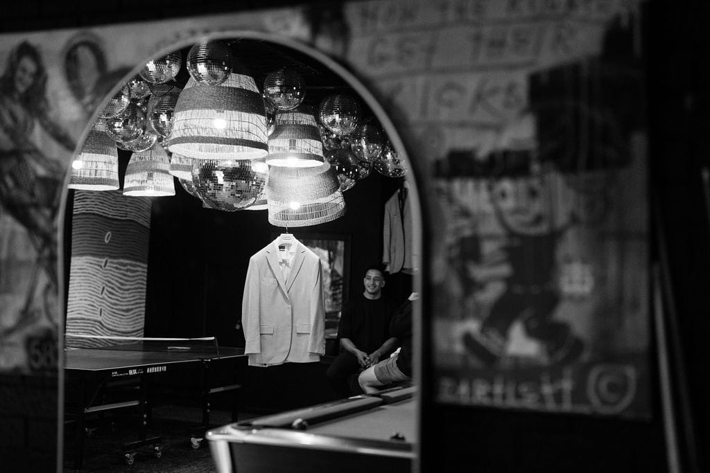 “Aaron had previously done some work with [stylist] Jamie Azzopardi and had reached out to him in confidence that he could assist him and his groomsman. The boys organised a fitting day where they tried on a few different suits in David Jones, of which they all loved the fit and colour of the Van Heusen.