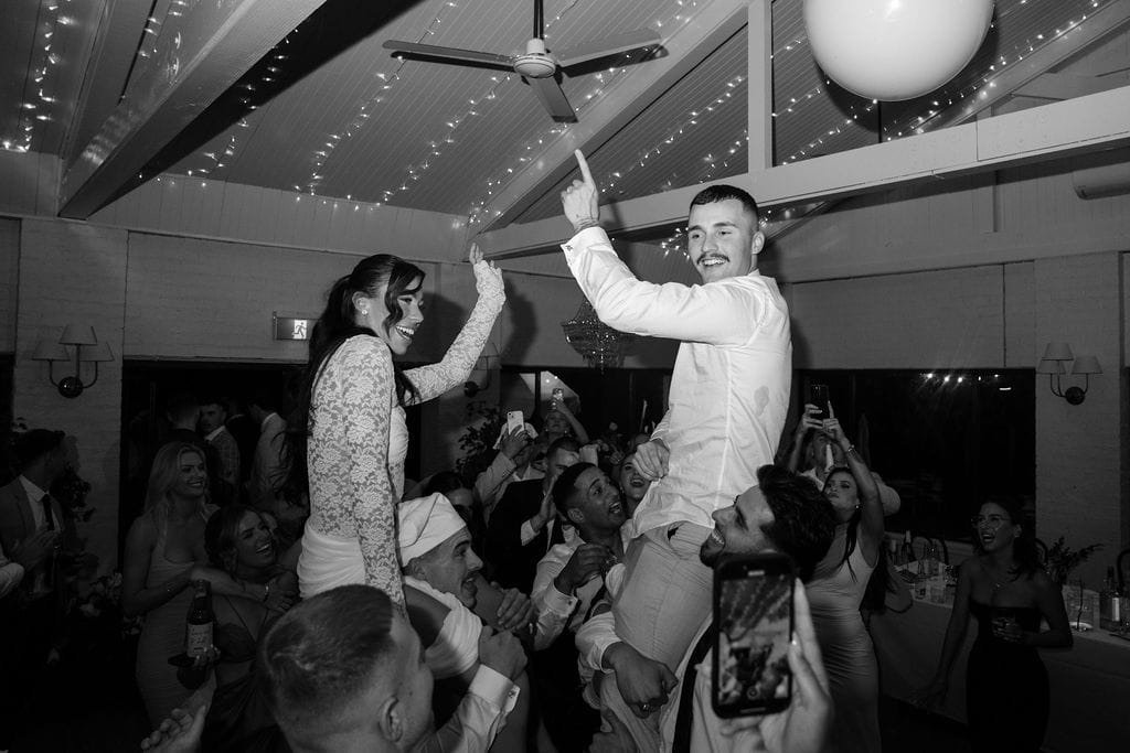 “I loved the whole morning getting ready with my girls and reading a book of letters they all prepared for me. Walking down the aisle with my father and grandfather was also really special for me. Pop is 87. My sister had the most beautiful speech, I cried for most of it, and of course, Aaron’s best man, Nelson, shared a very funny quote in his speech that’s hard to forget: ‘Heres some advice from Aaron’s coaches throughout the years, keep throwing him around in different positions to hide his fitness… if that doesn’t work, pull him off’! (Aaron) “Spending the day getting ready with the boys was special. But when Reave, our son, came down the aisle with a sign saying ‘let’s give mummy our last name,’ followed by Tahner, I cried more than expected. Along with Nelson’s speech, also.”