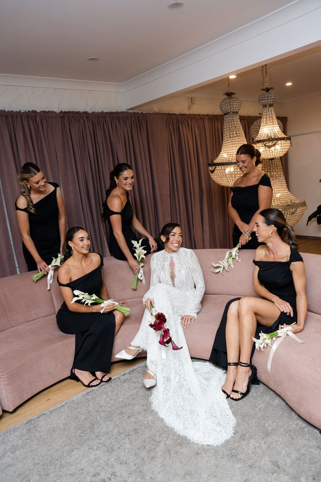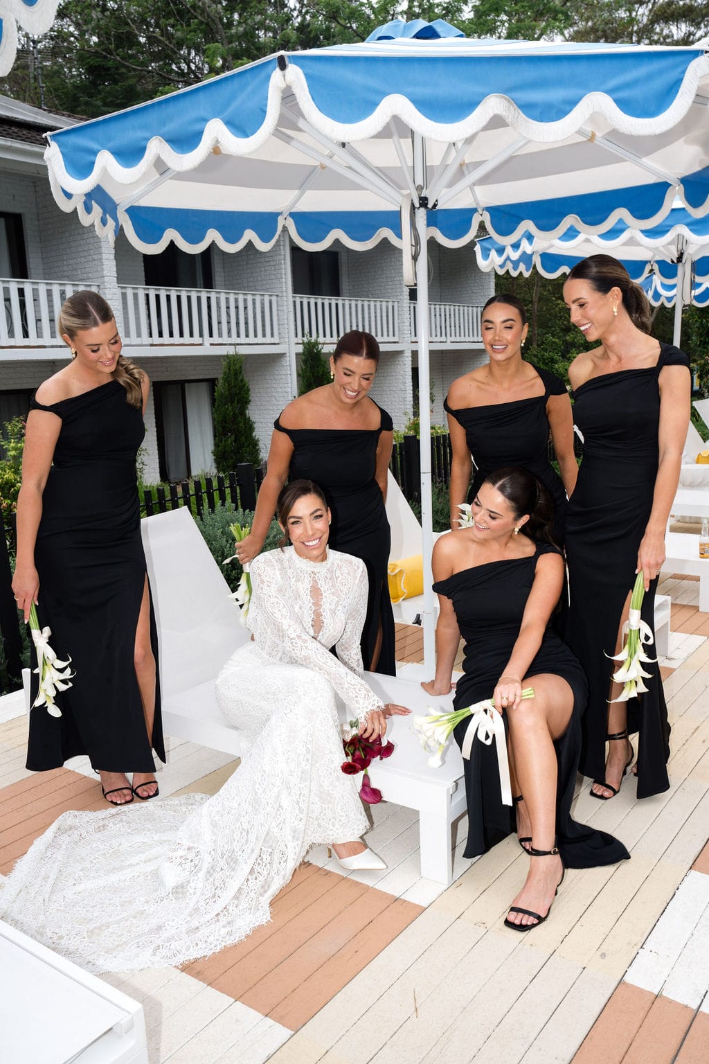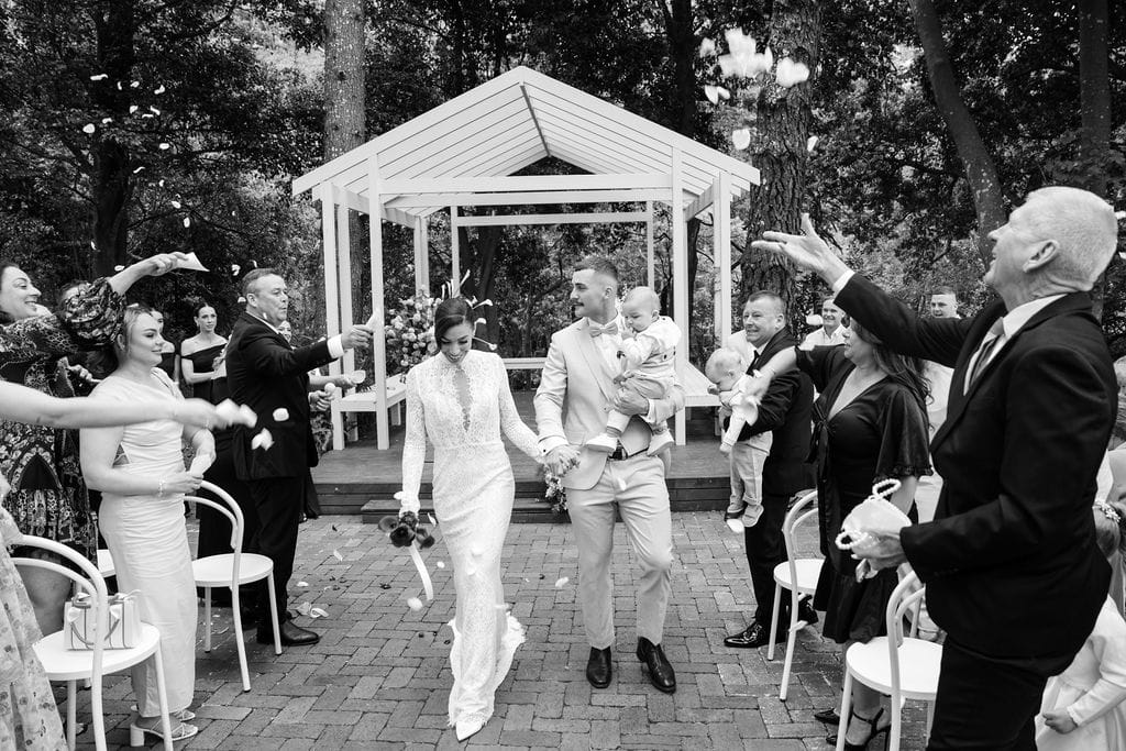 CONTRIBUTING VENDORS Photographer & Cinematographer Anemotion Florist Leo and Bloom Stationery DIY, Greenvelope, Canva Venue The Lodge Jamberoo Catering Lulu’s Restaurant via The Lodge Jamberoo Cake Charleechewsdays Hire Items The Lodge Jamberoo, Borrowed Event Hire Signage Borrowed Event Hire Entertainment Voli K Music, Arthur Meredith Celebrant Leonie Sharp Rings Affinity Diamonds THE BRIDE Bridal Gown Designer Gabrielle Pagano, GP Creatives Robes Le Rose Shoes Nina Accessories Affinity Diamonds Hair Cherie Cowan – Sloans Makeup Zoe Martin Fragrance A.N OTHER Bridesmaid Dresses Sheike Bridesmaid Shoes Novo Bridesmaid Gifts Dior THE GROOM Suit, Jacket, Shirt, Pants, Tie & Groomsmen Suits Van Heusen Styling Jamie Azzopardi Shoes R.M. Williams Grooming Barber Brothers Groomsmen Gifts Gorgio Amarni