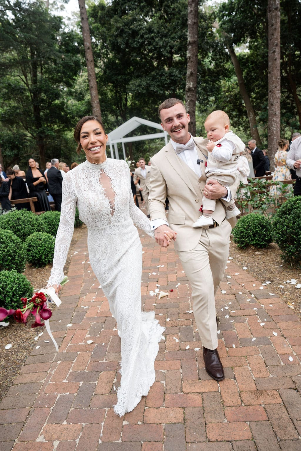 Aaron Schoupp (an NRL star with the Manly Sea Eagles) and Tahner (who works in management for a disability company) kicked off married life in NSW’s South Coast, celebrating with 120 of their faves, including baby Reave (who naturally triggered dad’s happy tears as he came down the aisle).