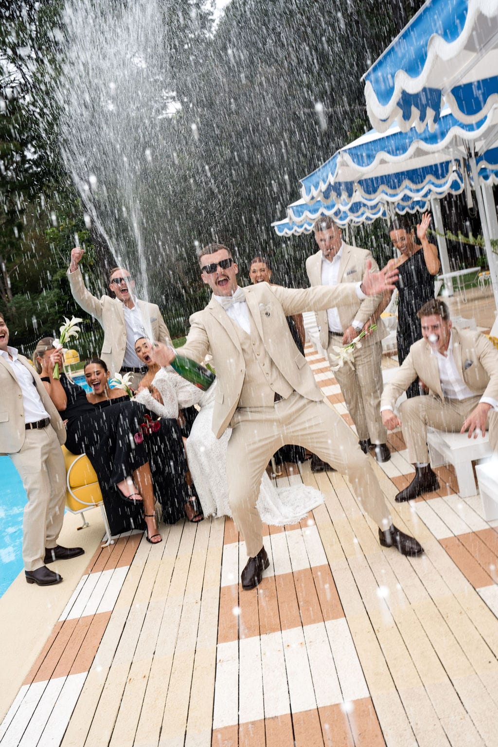 “When the girls woke up for makeup at 5.30am some of the groomsman were still going from the the night before welcome party… Wasn’t funny on the day but we can laugh now.”