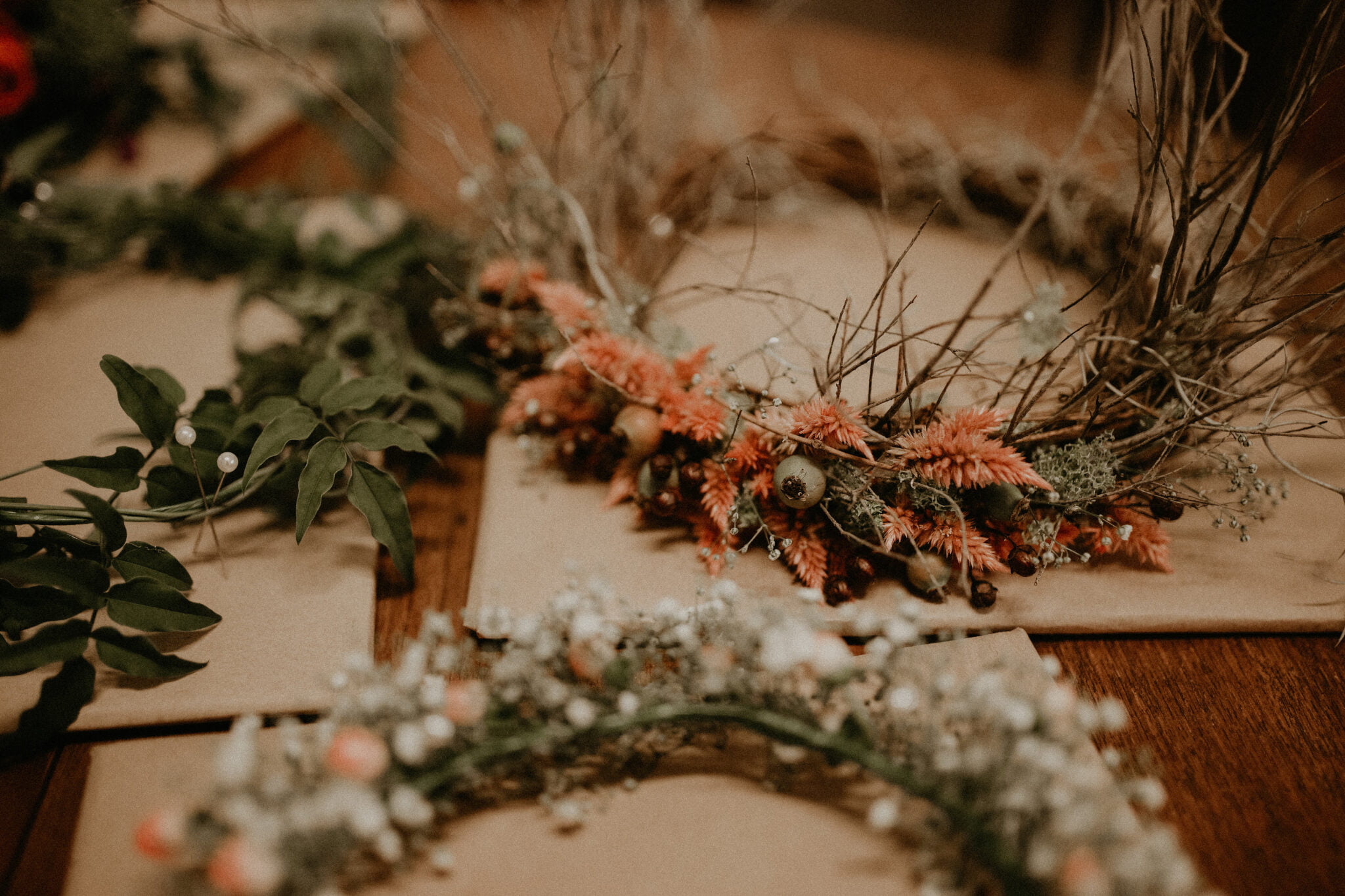 FAVOURITE DETAILS “Our favourite details were definitely the magical flower crown creations that we both wore and the Viking style cloak that I made for Cam. The cake was also a highlight! It was a 3 tiered chocolate vegan cake that my beautiful sister Amber made for us.”