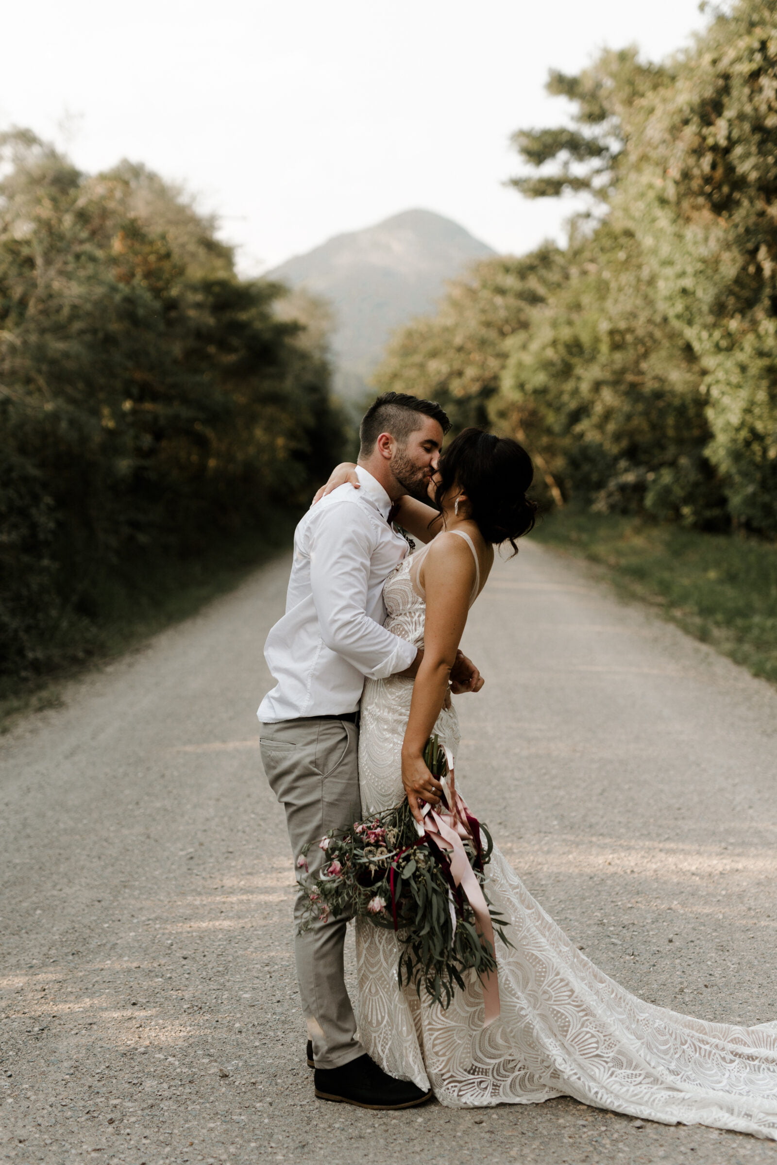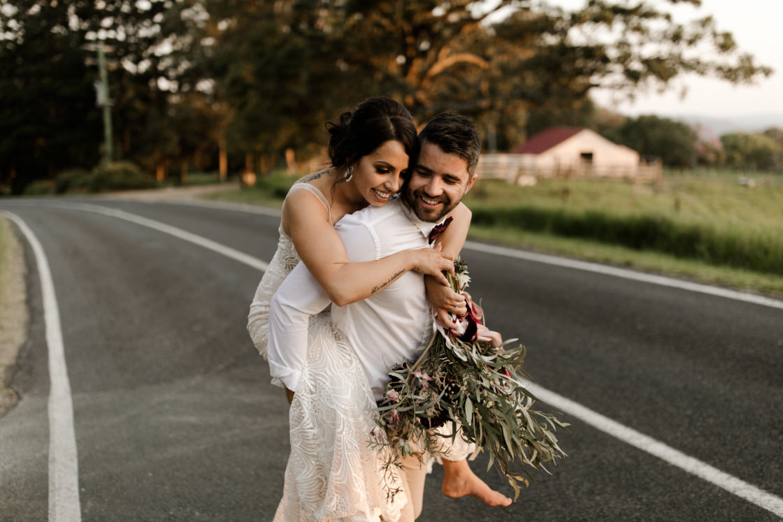 FAVOURITE MOMENT “Earlier in the day while we were getting photos, on a dirt road in Eumundi (that Khara had found that day), a lady was walking her dog past us, and after congratulating us she offered us her property to take photographs, in front of the beautiful Mount Cooroy. It was honestly perfect timing and the property was incredible, with a huge sweeping field, picturesque views of the mountain and a small creek trickling through it. It was the perfect afternoon.”