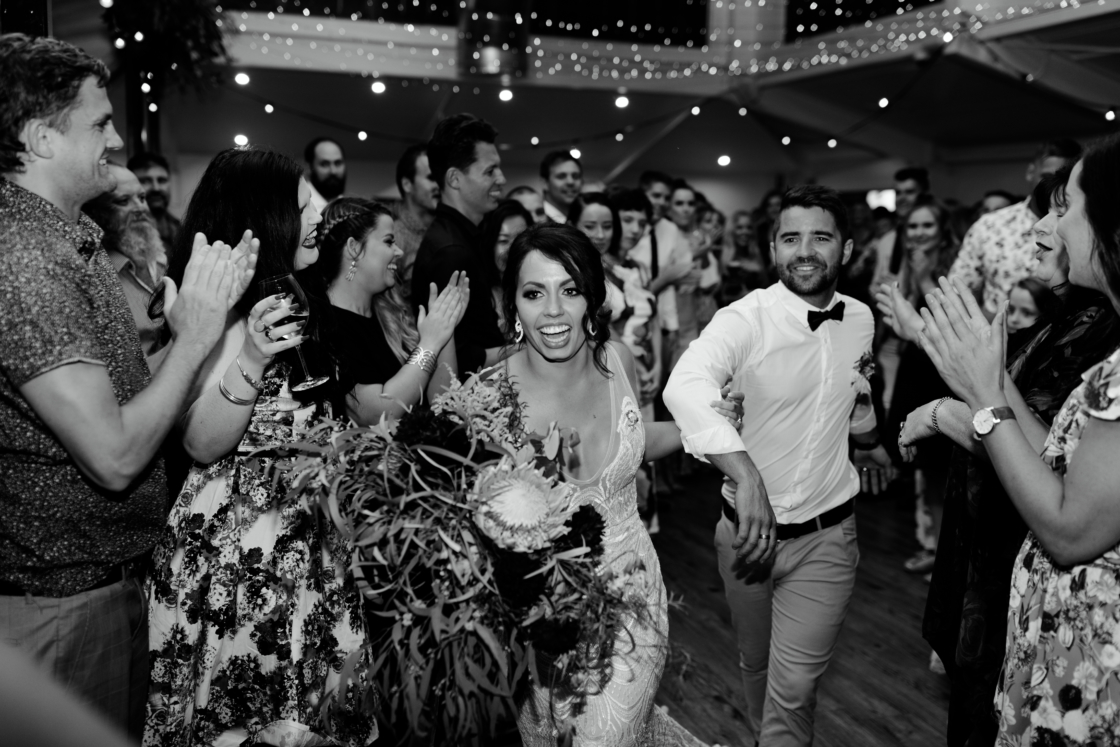 Picture a rooftop restaurant in Santorini, a beautiful sunset and fresh seafood…not too shabby, eh? This was the exact situation Tanisha found herself in when she was proposed to by now-hubby and all-round top bloke, Brendan. Naturally, she said yes which leads us to the gorge wedding day you are currently perusing. Tanisha donned a darling Made With Love gown for her big day whilst her bridesmaids walked the aisle in Shona Joy, a timeless combo. Scroll down to check out some more captures by talented lens-woman House of Lucie (including some Croc shoeys)…