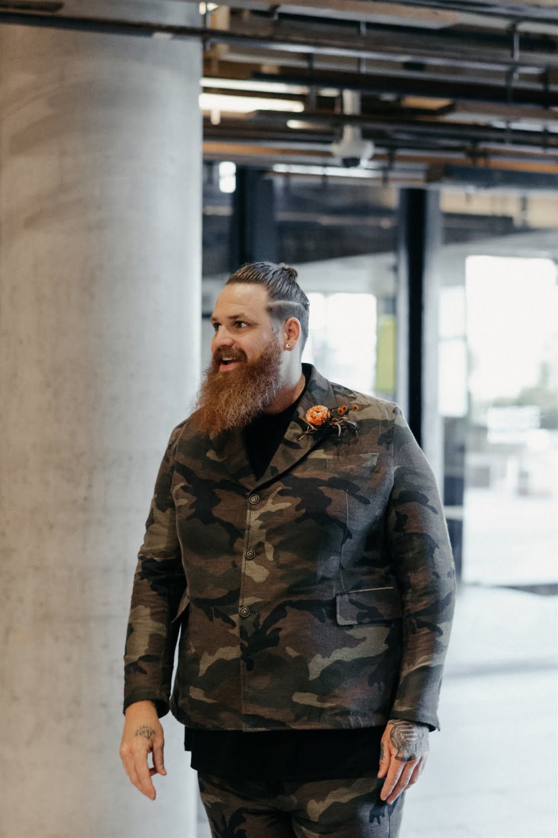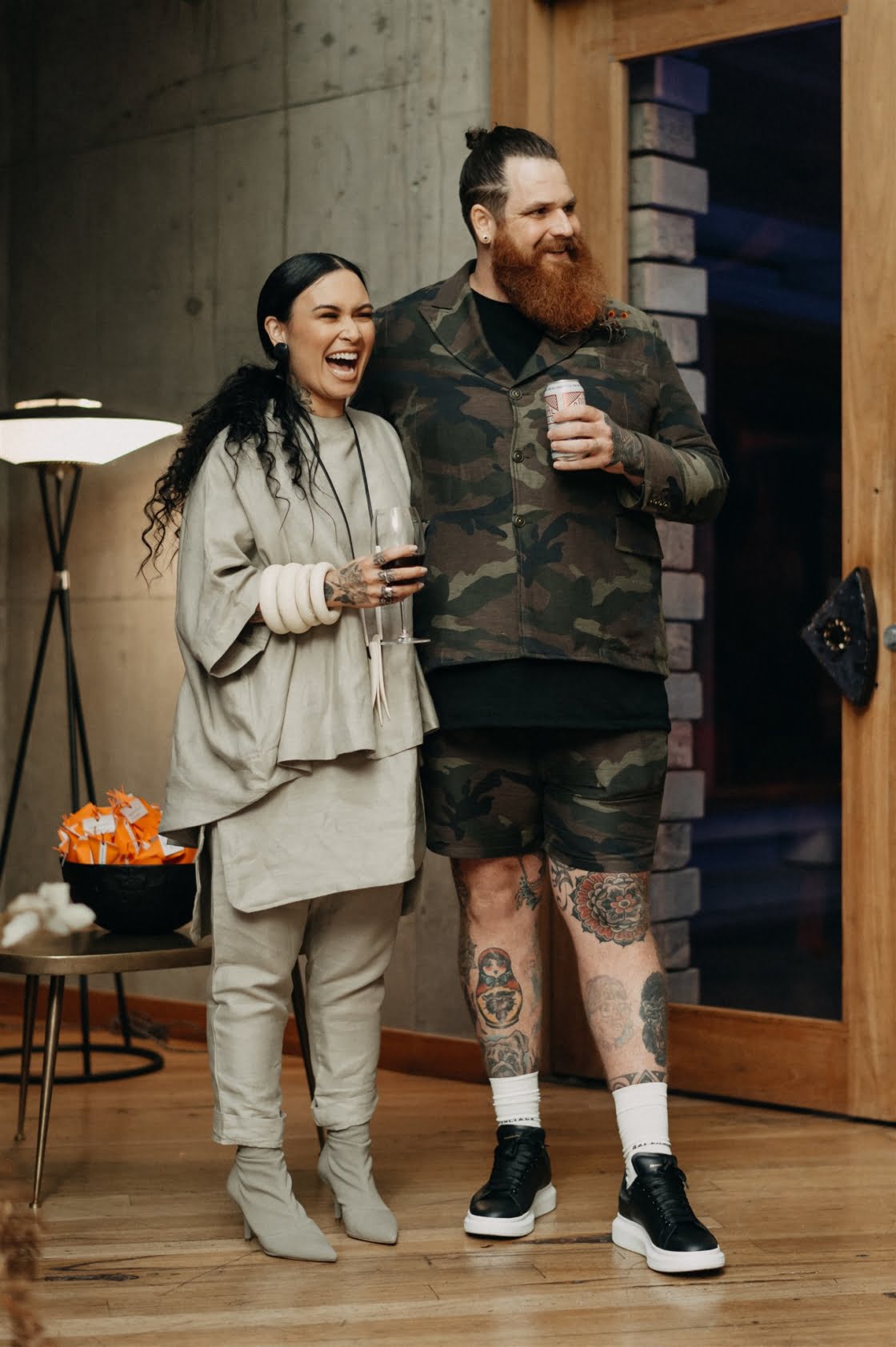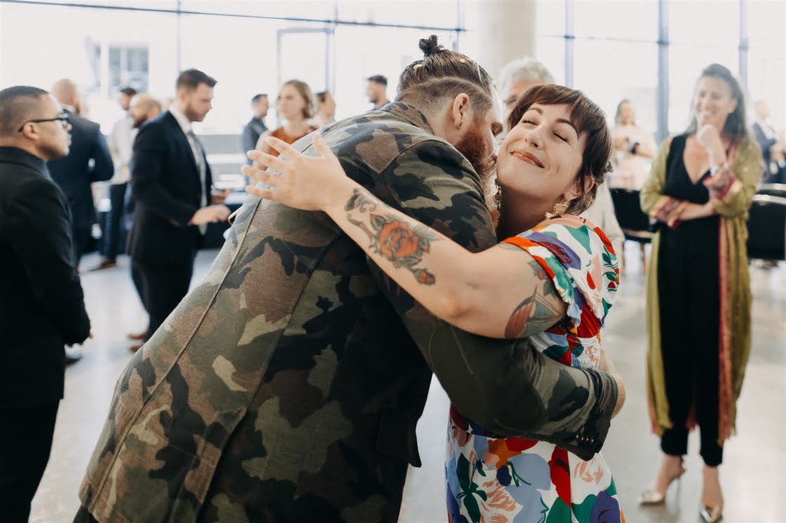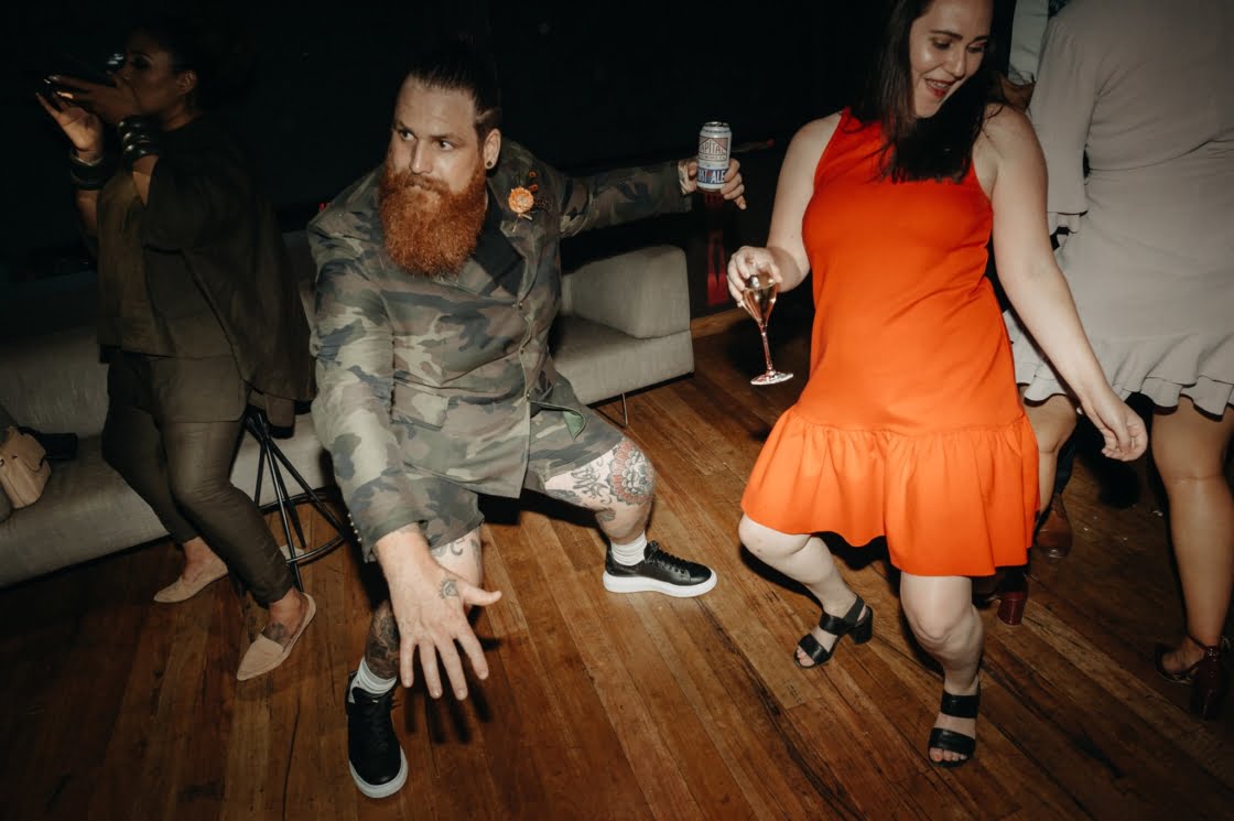 Together for ten years now, “we have miraculously survived without murdering each other, so that has to be a testament of true love and tolerance (lol),” these two cool cats are truly one of a kind and we couldn’t wait to share this wedding. Yes, ok, it may have had something to do with that cray-in-the-best-way wedding dress. And definitely the groom in camo. Also maybe those incredible dried flower arrangements (by one of our fave florists Laurel & Lace). Then there was the ceremony by one of our go-to celebrants, Shannon O’Heir, and pics by the talented lens lady Lauren Campbell. I mean if that’s not a recipe for a damn good wedding, we don’t know what is! Scroll down for more…